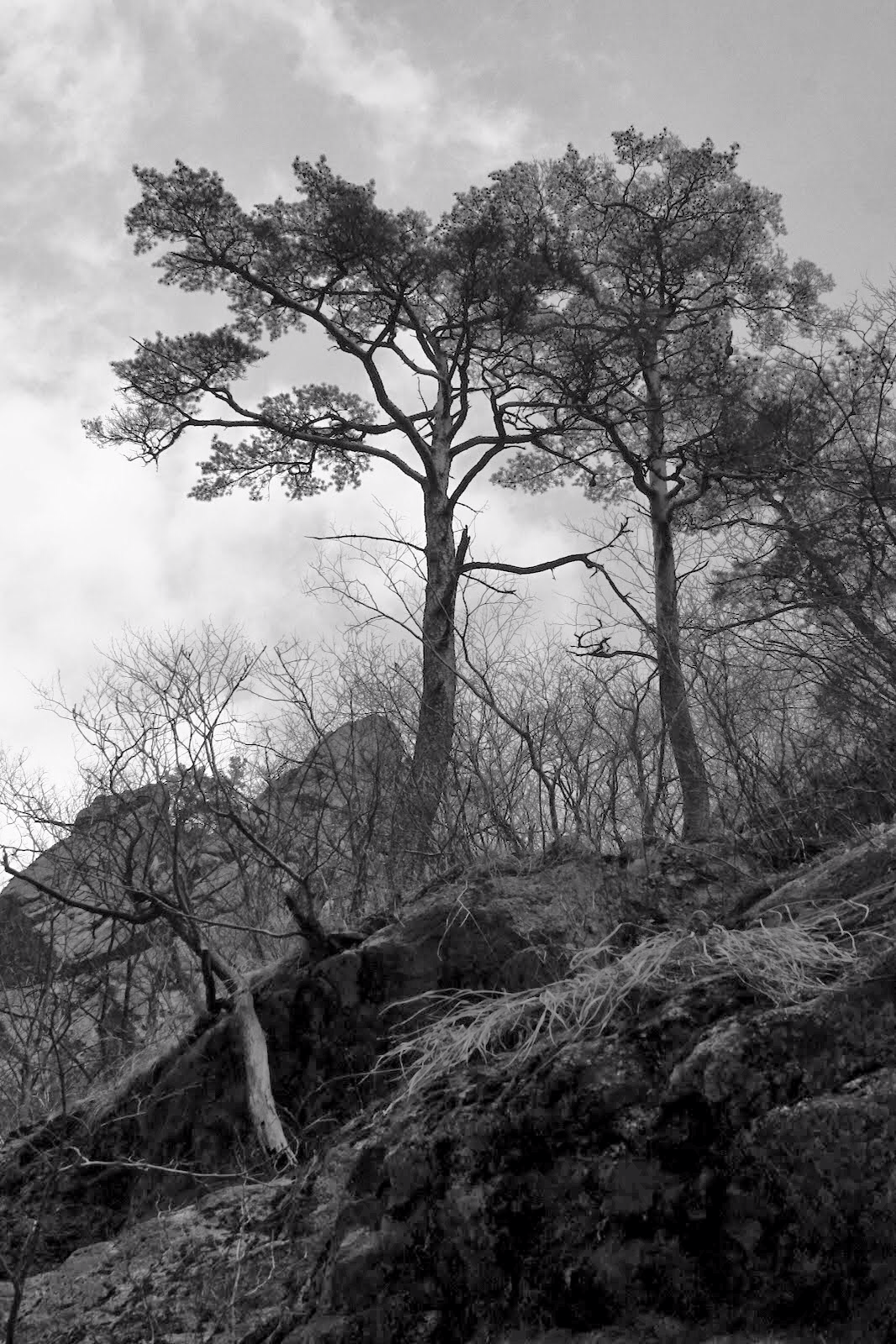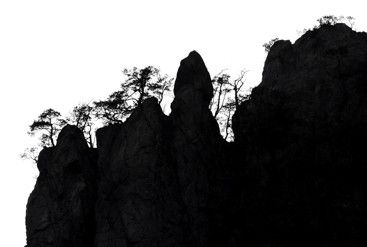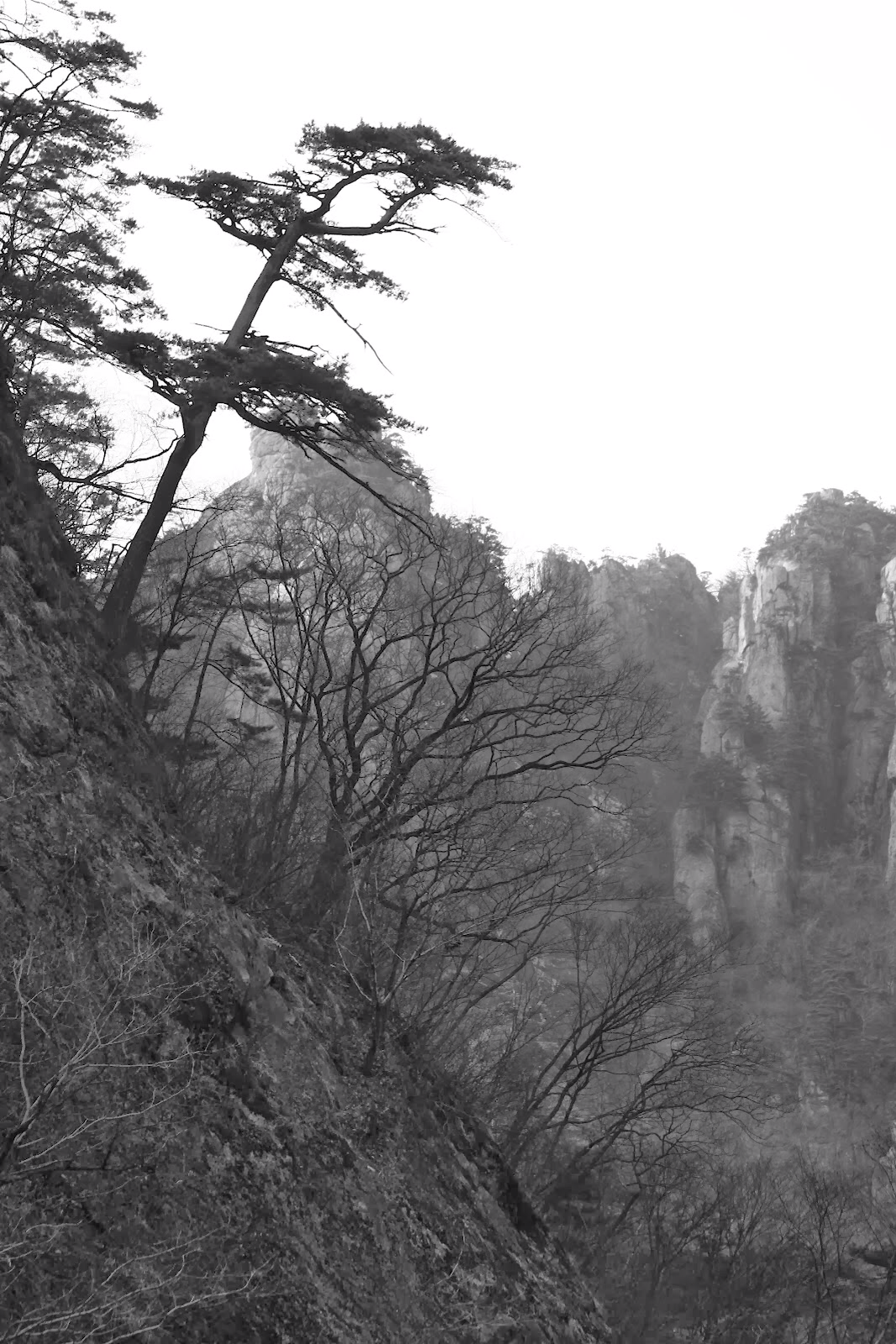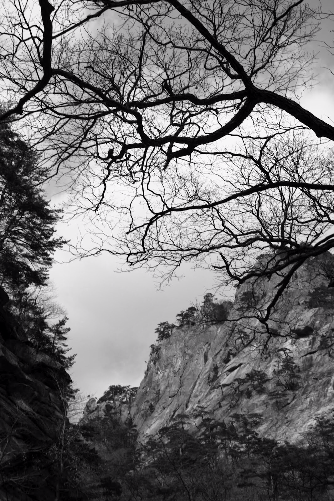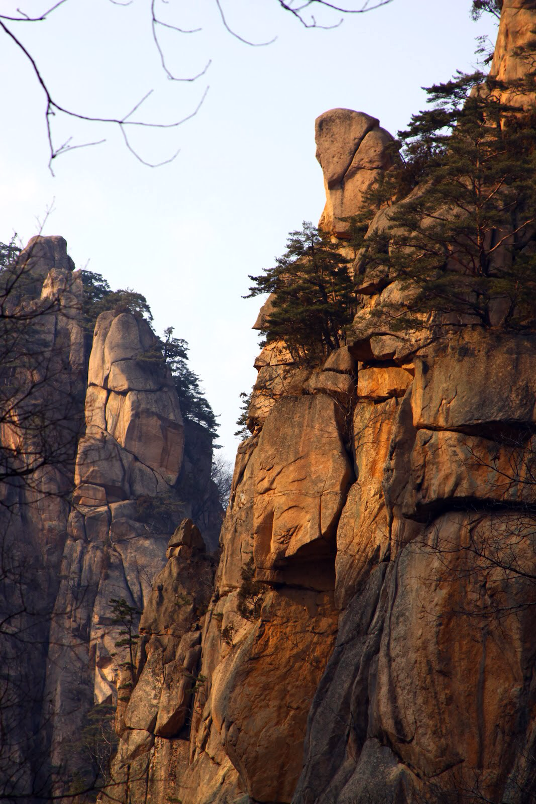 산세와 지질적 구성이 어찌 이리 드라마틱 할까. 암벽 사이사이, 심지어 그 정상에 까지 자리 잡은 소나무들은 정말 대단해. 기막힌 조크처럼 터무니없는 생명력을 보여줌은 물론 그 의연한 늘 푸르름은 정말 비현실적이다. 칭송받아 마땅하다. 백 년을 넘어 천년을 넘어.