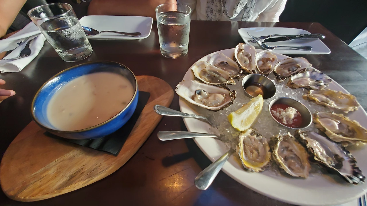 Cram Chowder and Plate of a dozen Oysters.