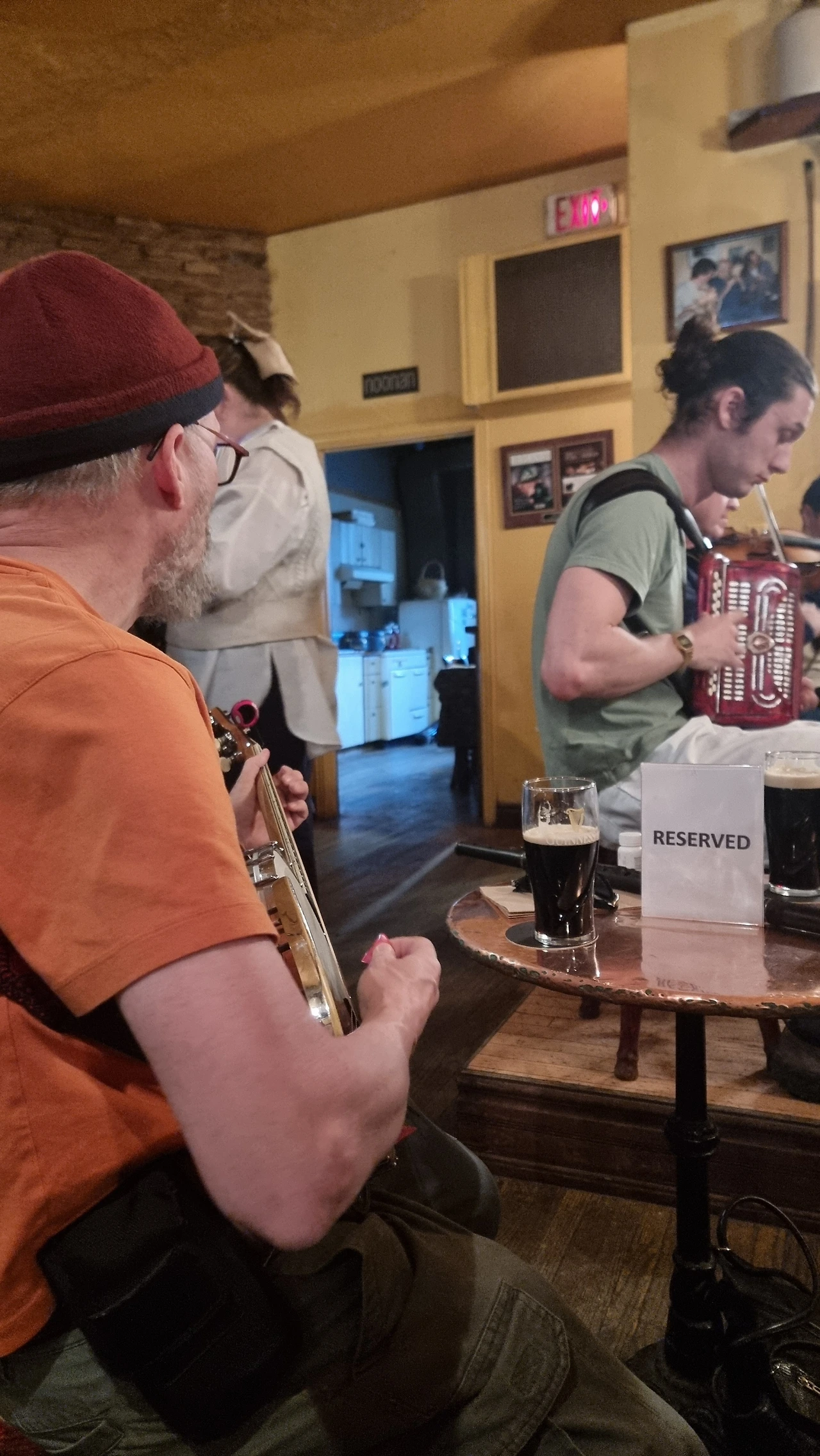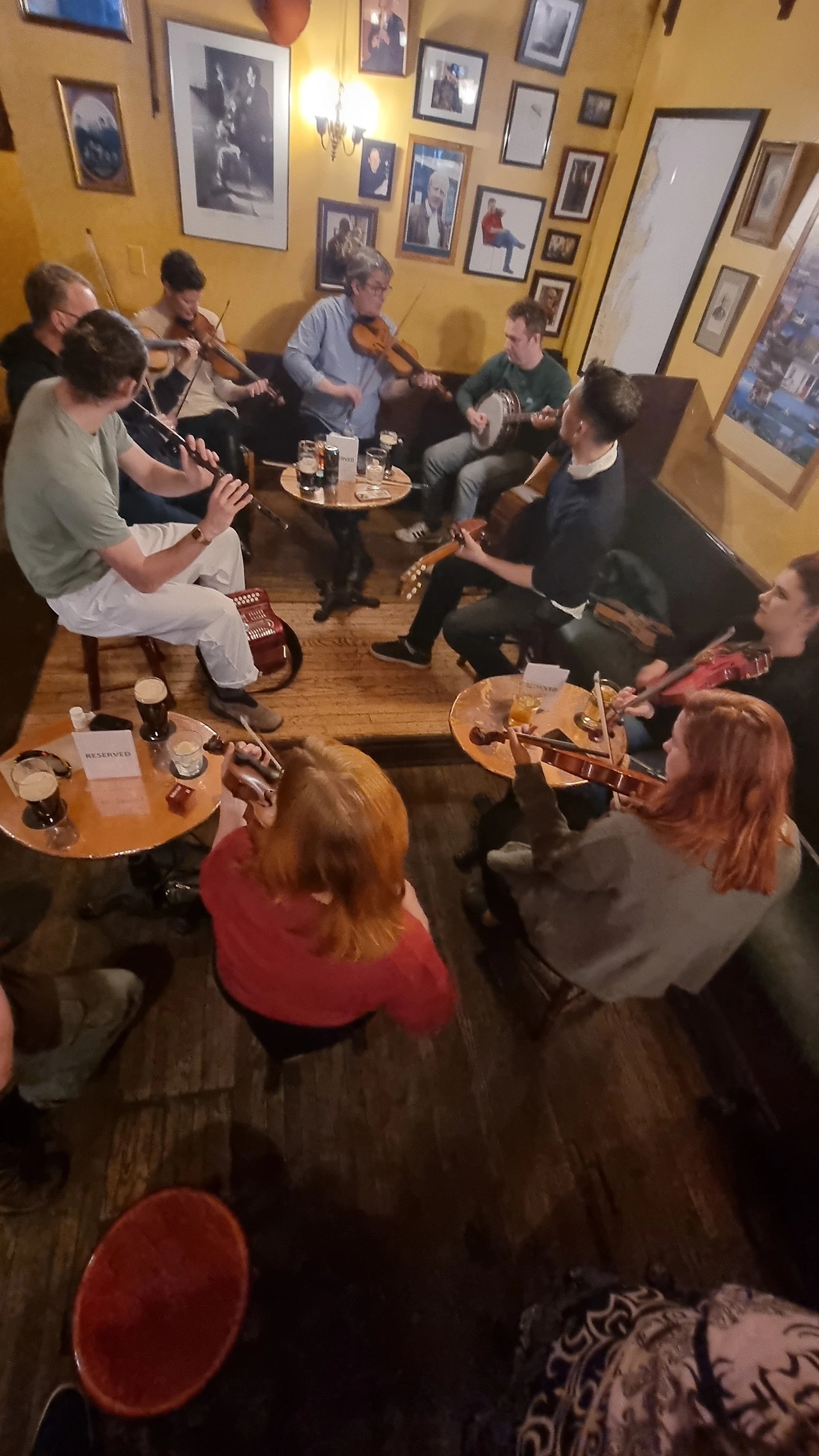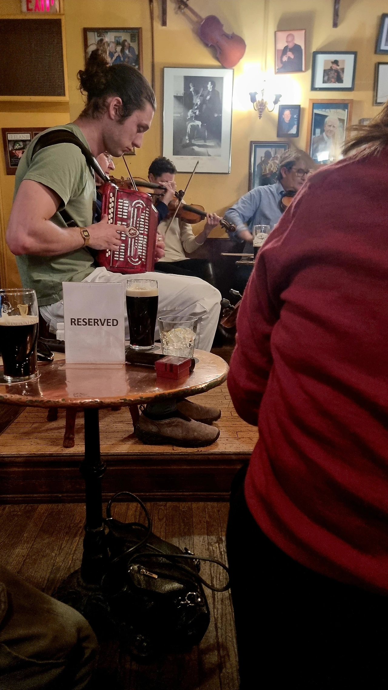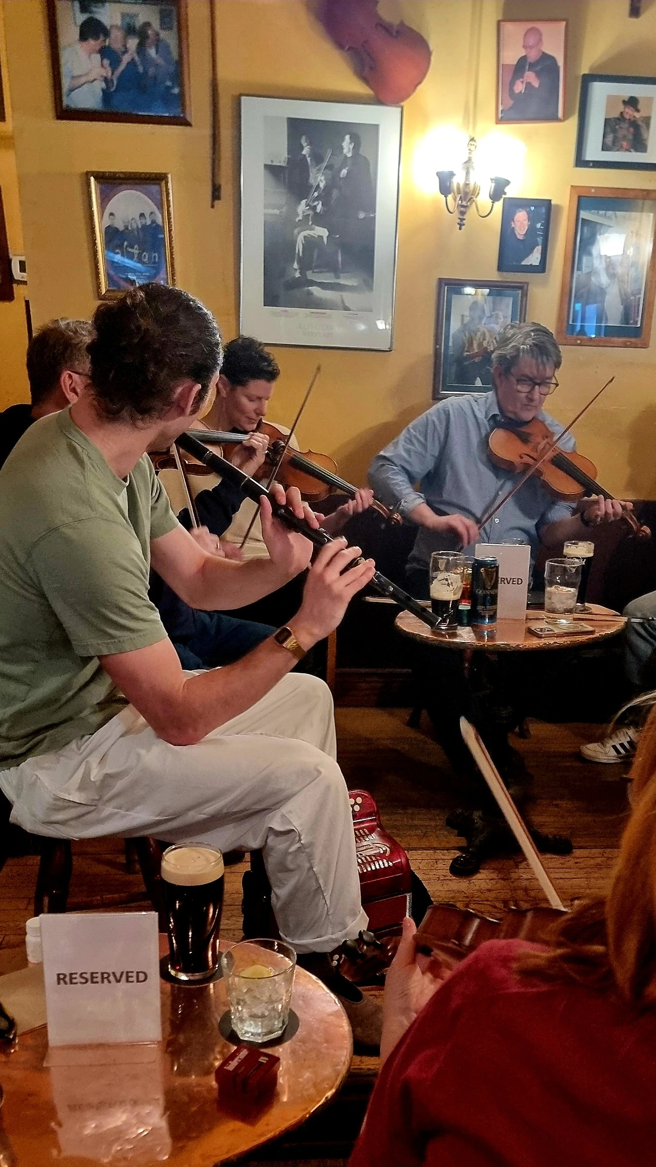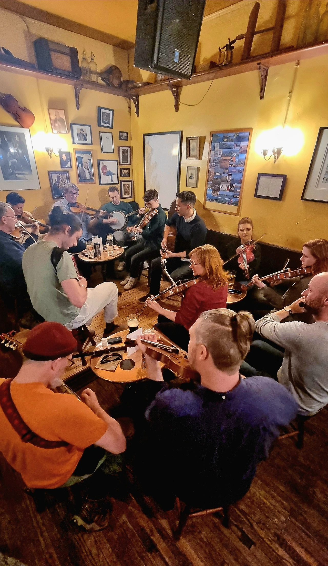 그 엄청나게 신선하고 맛있는 기네스 한잔이 비워지기도 전에 뮤지션들이 모여들기 시작했다.