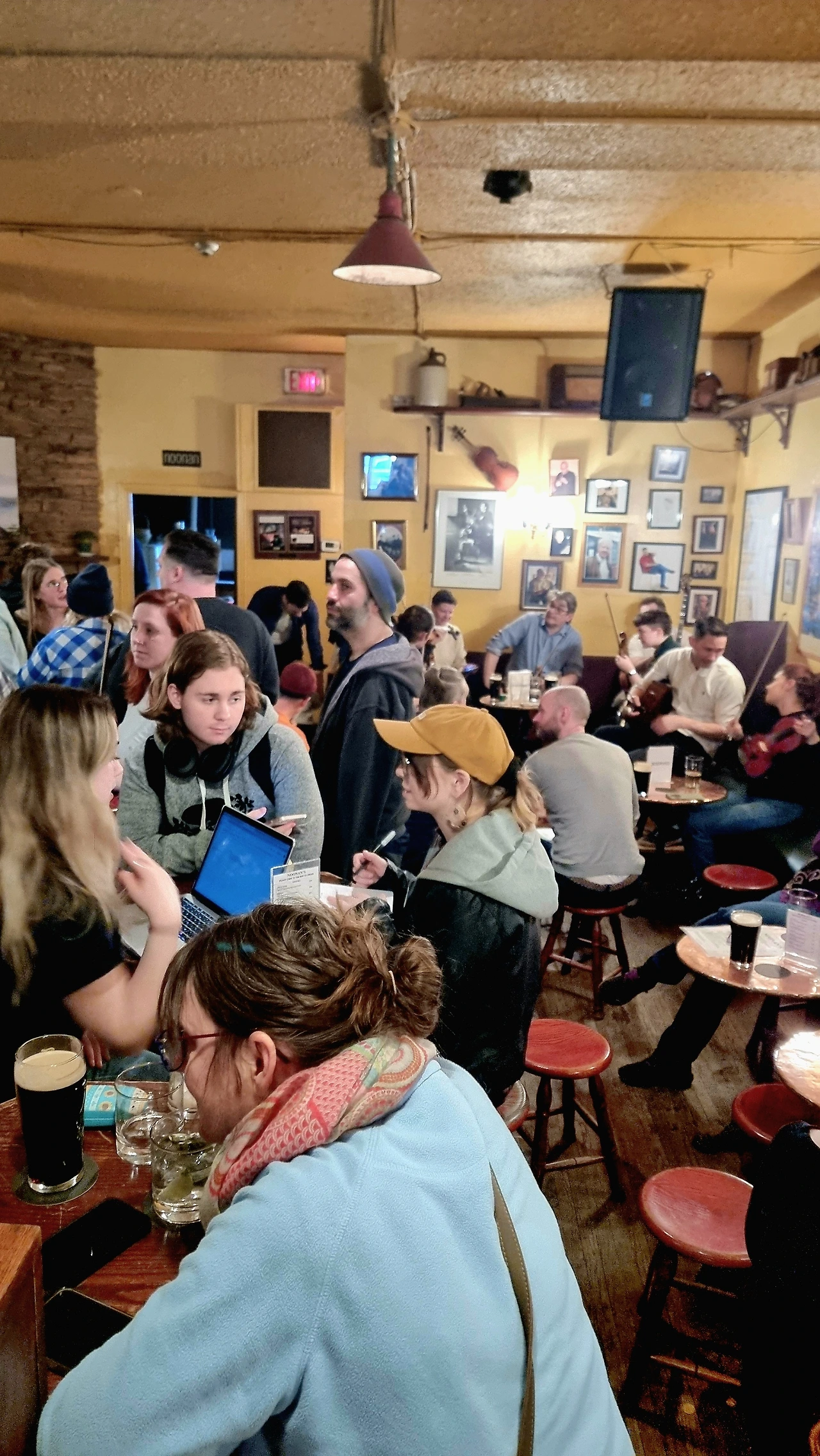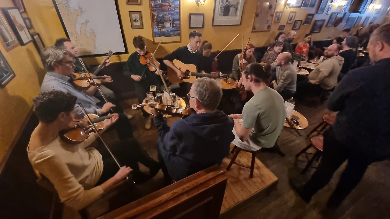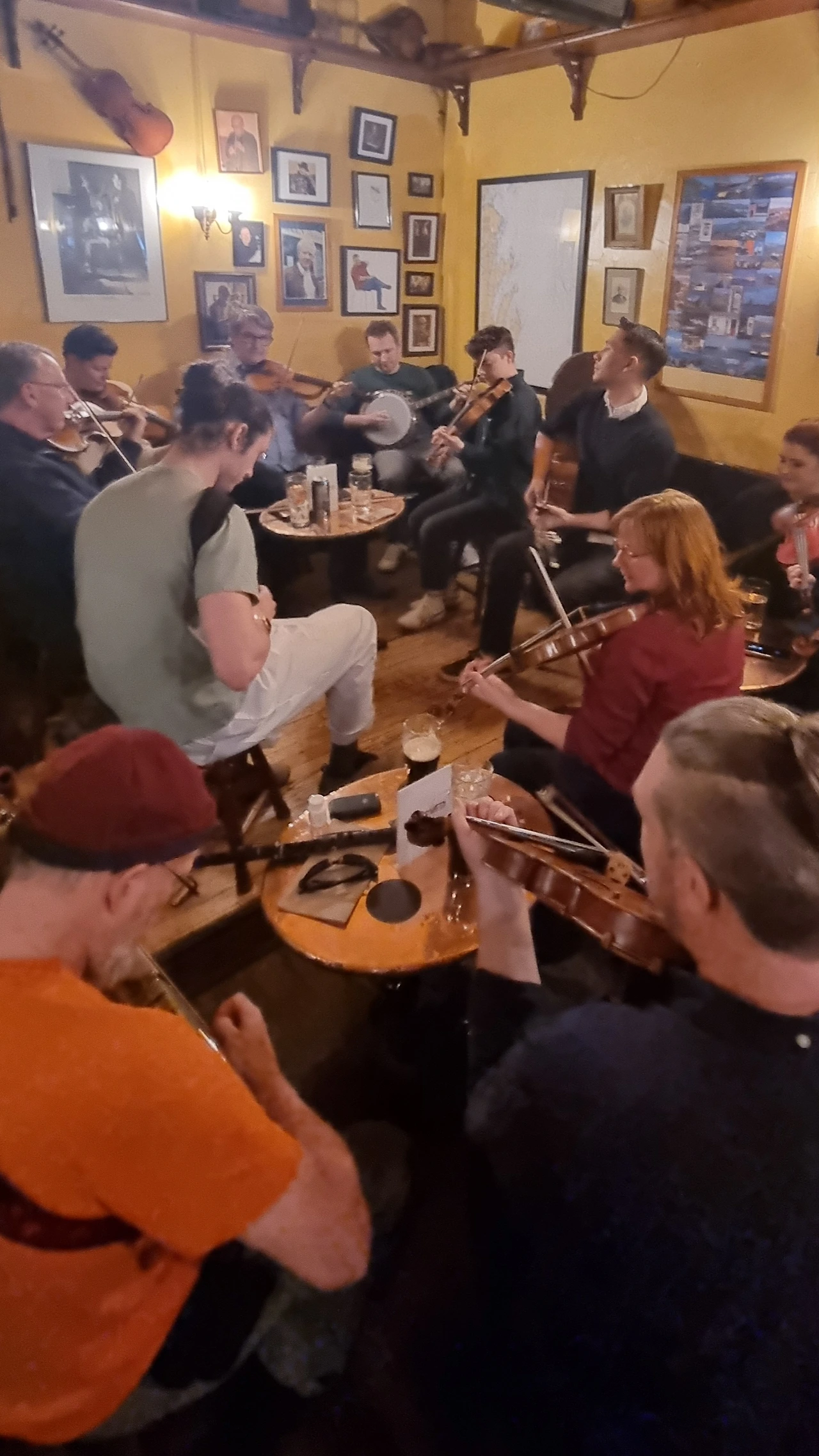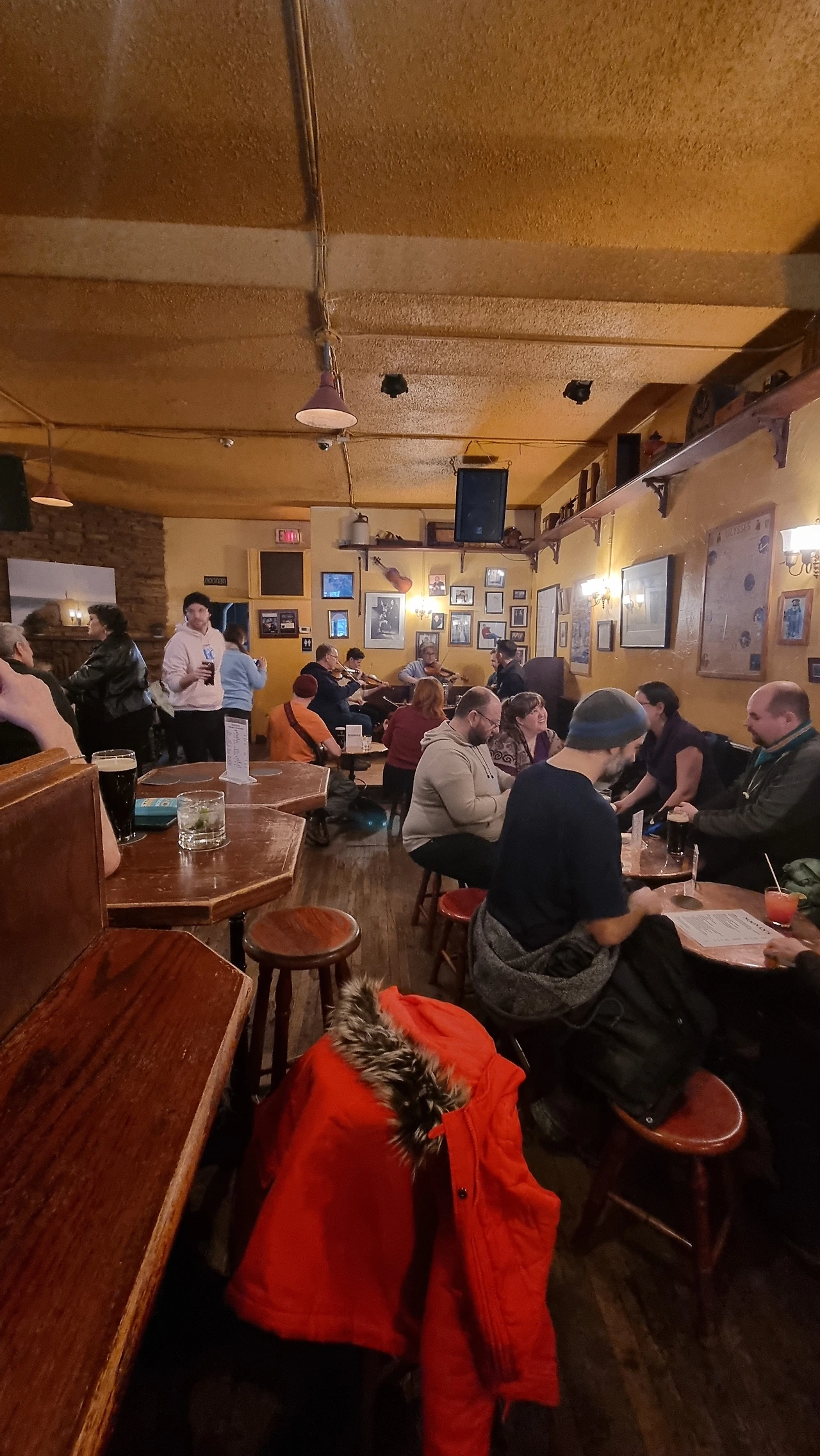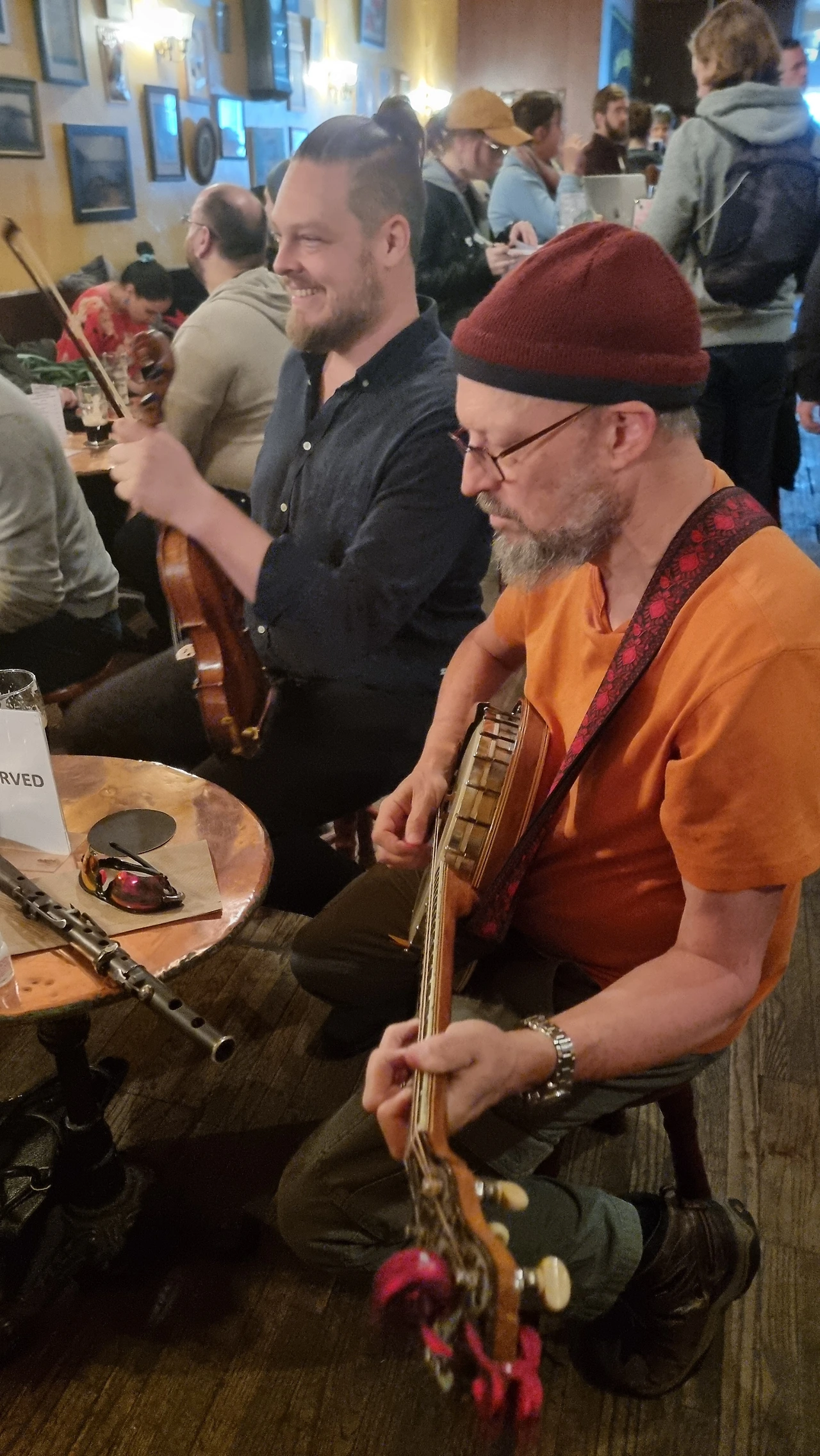 그 엄청나게 신선하고 맛있는 기네스 한잔이 비워지기도 전에 뮤지션들이 모여들기 시작했다.