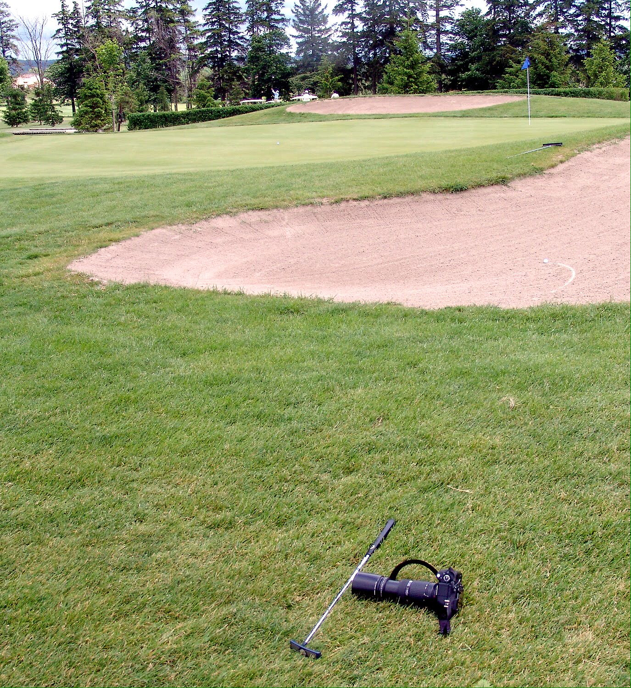 한때는 이렇게 망원렌즈까지 가지고 다녔었다. 또 다른 카메라와 함께! 필드에서는 공을 제대로 굴려야 하는데 공은 팽개치고 저렇게 카메라만 마구 굴리다 보니 나중엔 렌즈가 망가졌다. 올림푸스 E3, 표준 렌즈와 200mm 망원렌즈, 다수의 배터리 그리고 소니 828을 가지고 다녔었는데 한국 여행을 가서 좀 찍다보니 망원이 고장이 났었다. 다음으로 캐논을 가지게 되었는데, 캐논이 한 덩치 하다보니 골프 게임을 하면서 찍기가 좀 성가시긴 하다.