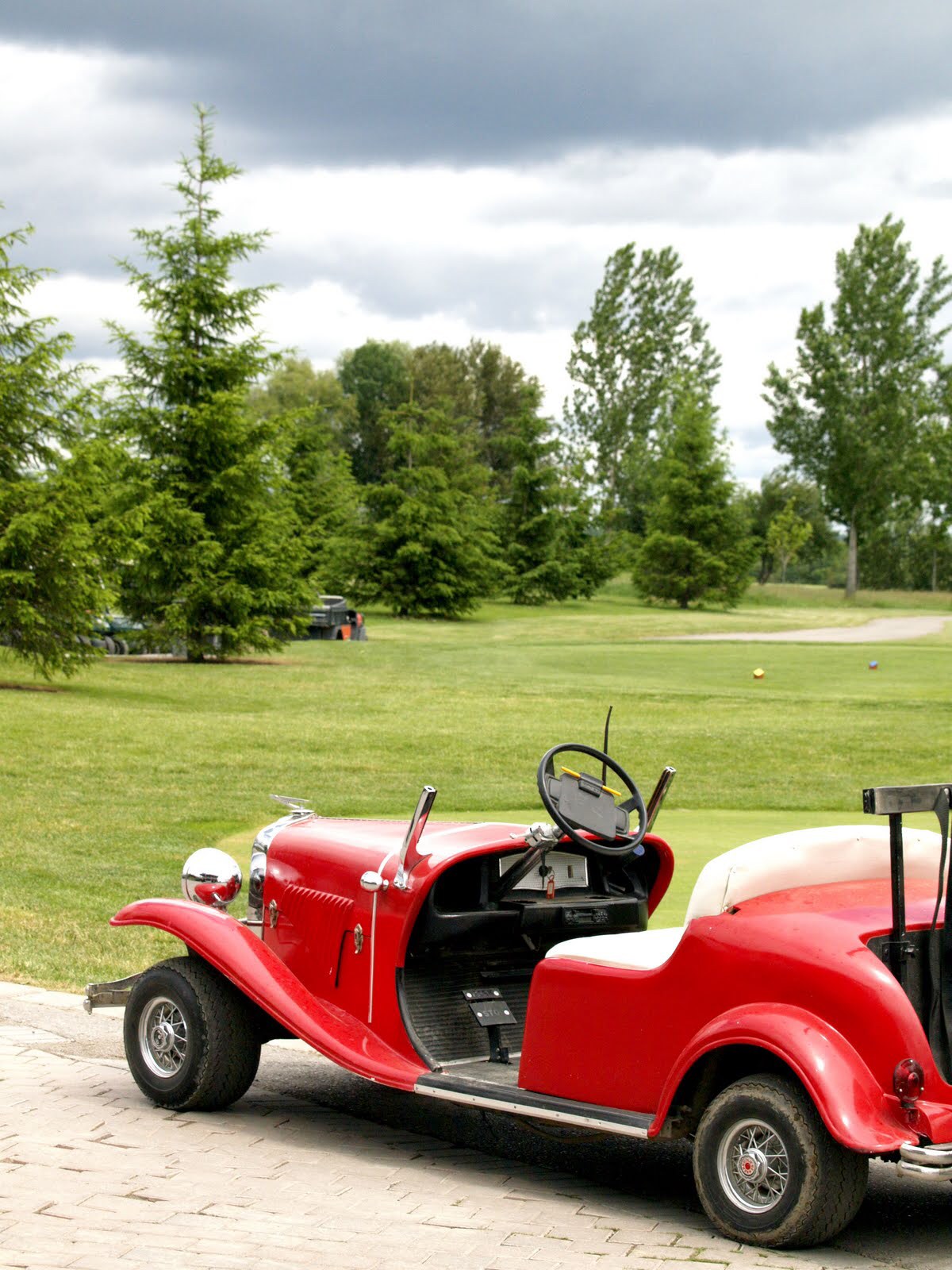 카트의 변신은 무죄. 클래식 스포츠 카 모양으로 만든 전동 카트. 제대로 만들어 어설프지 않고 이뻤다.