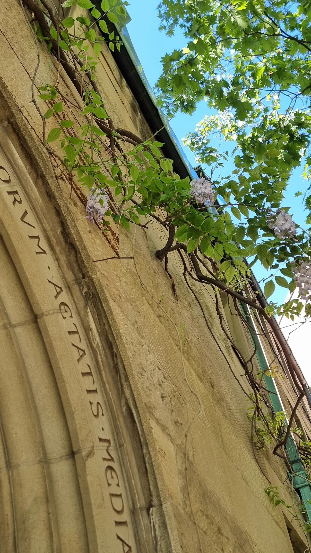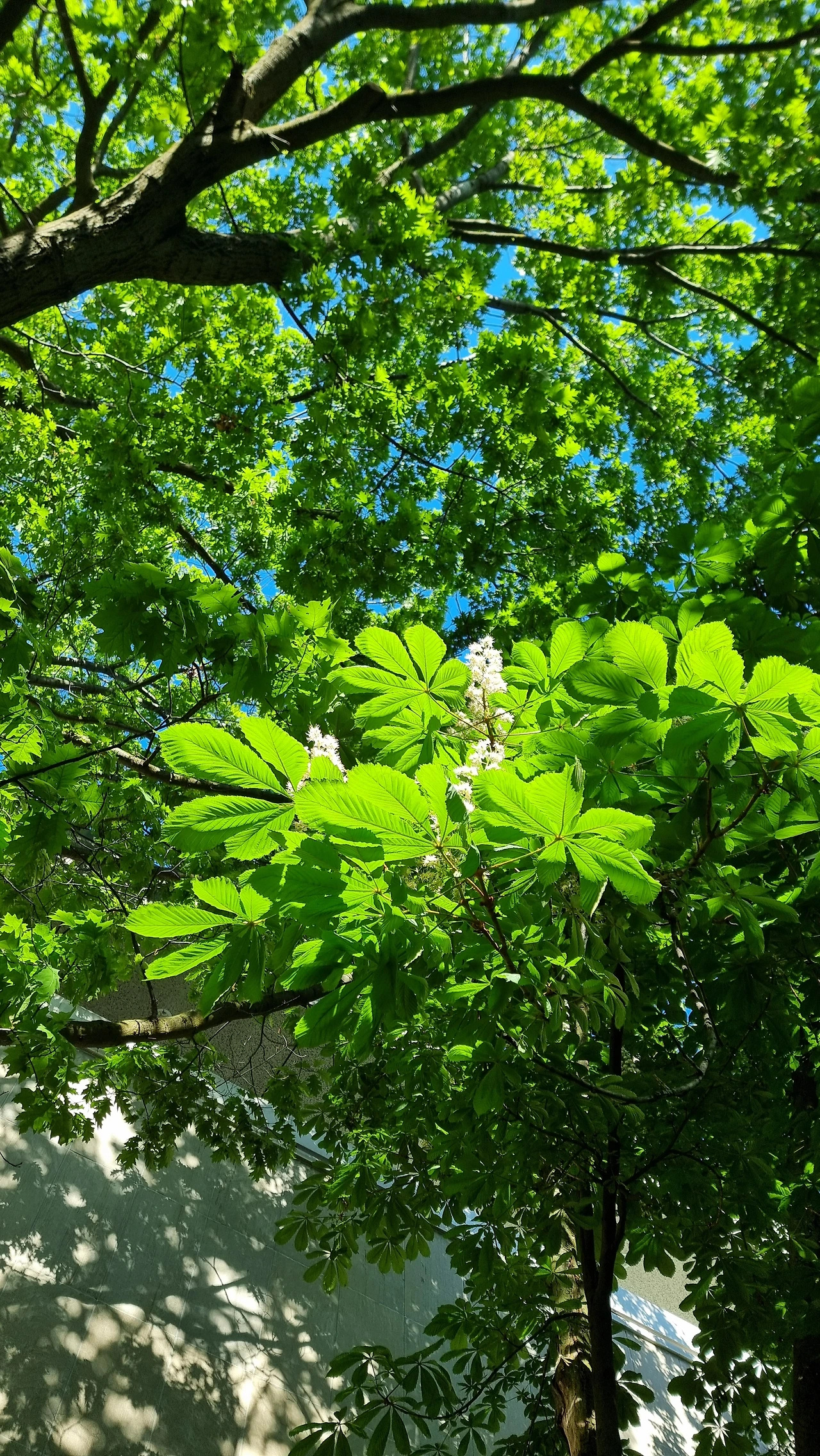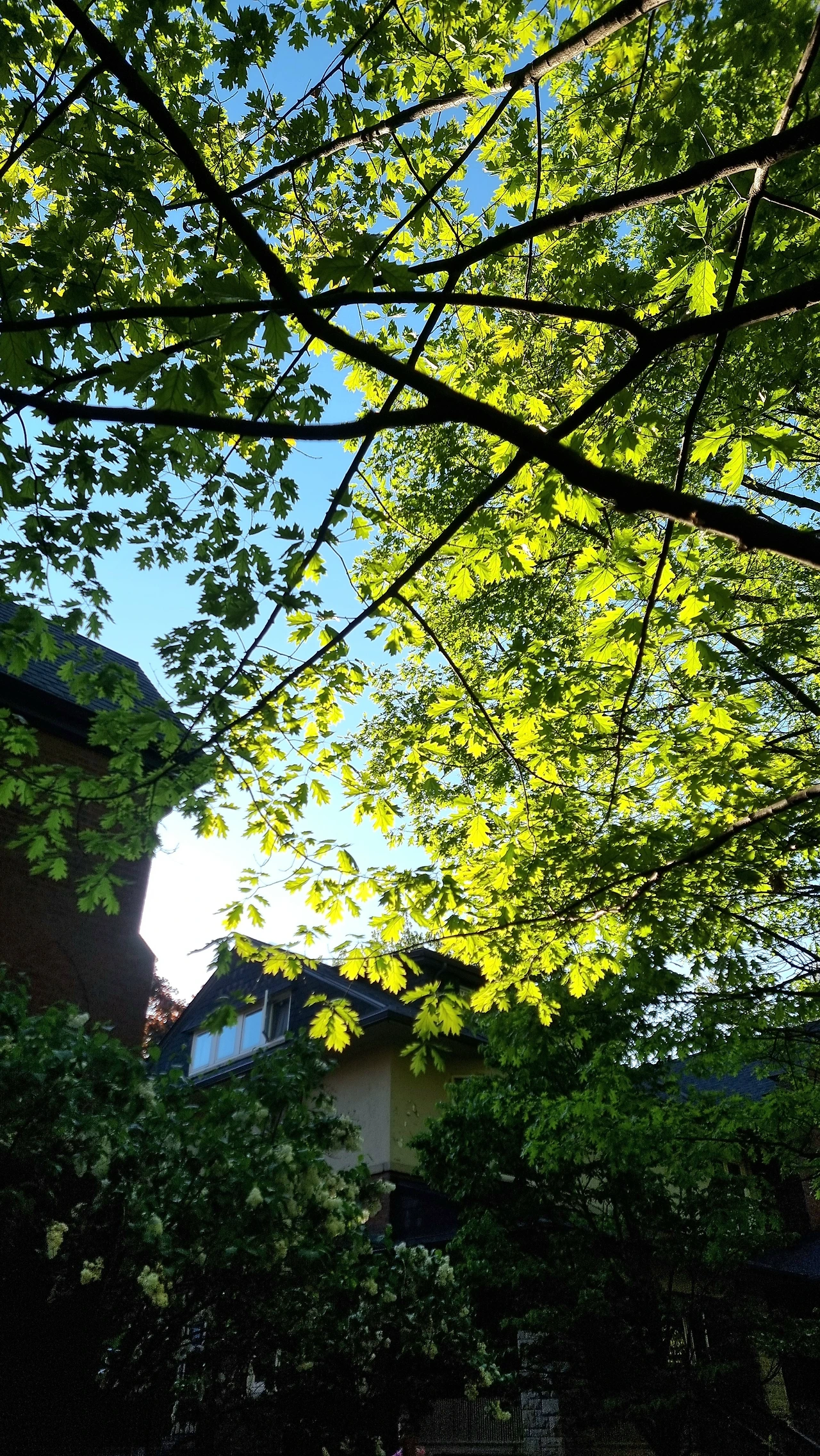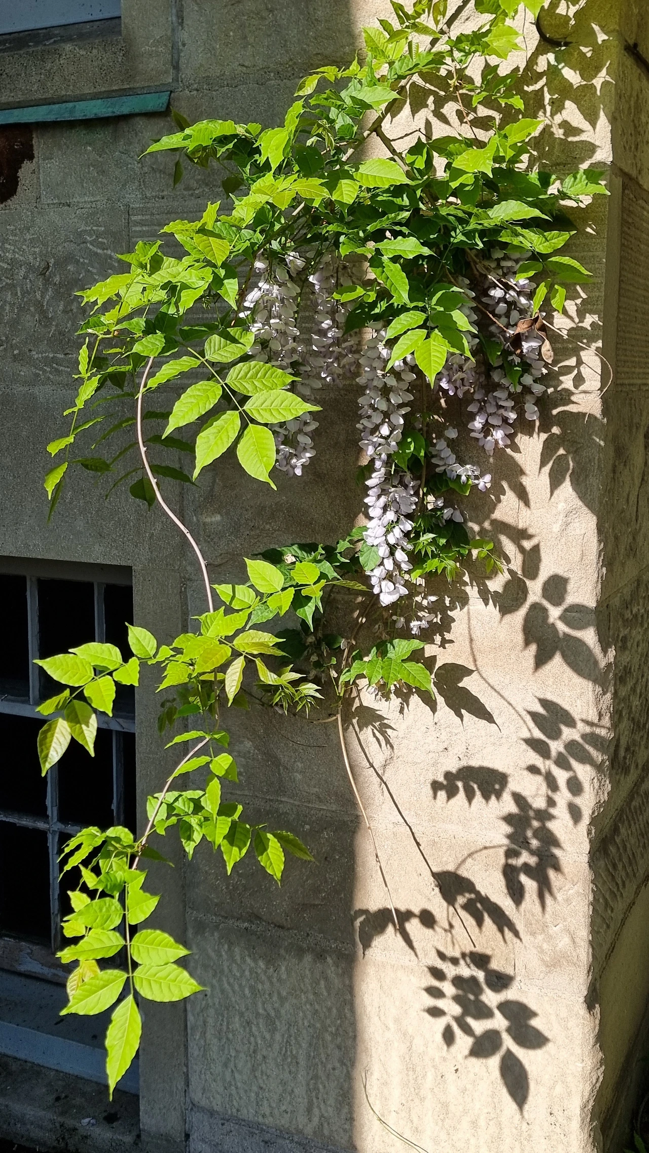 Looking at the facade inscribed with a delicate pattern of shadow of tree trunks makes me happy also.