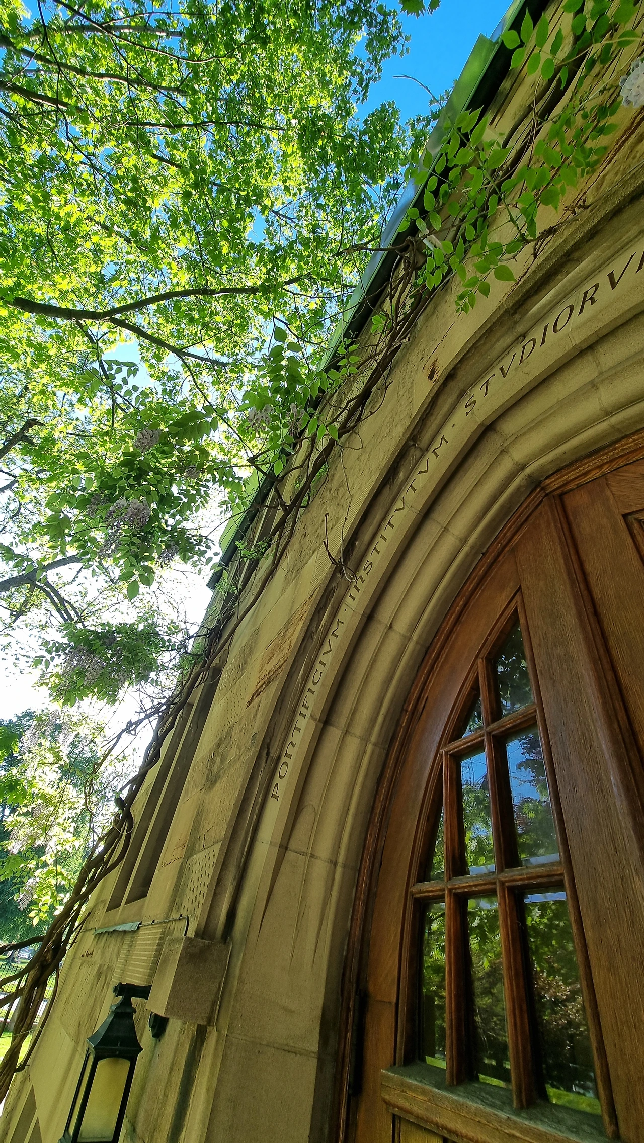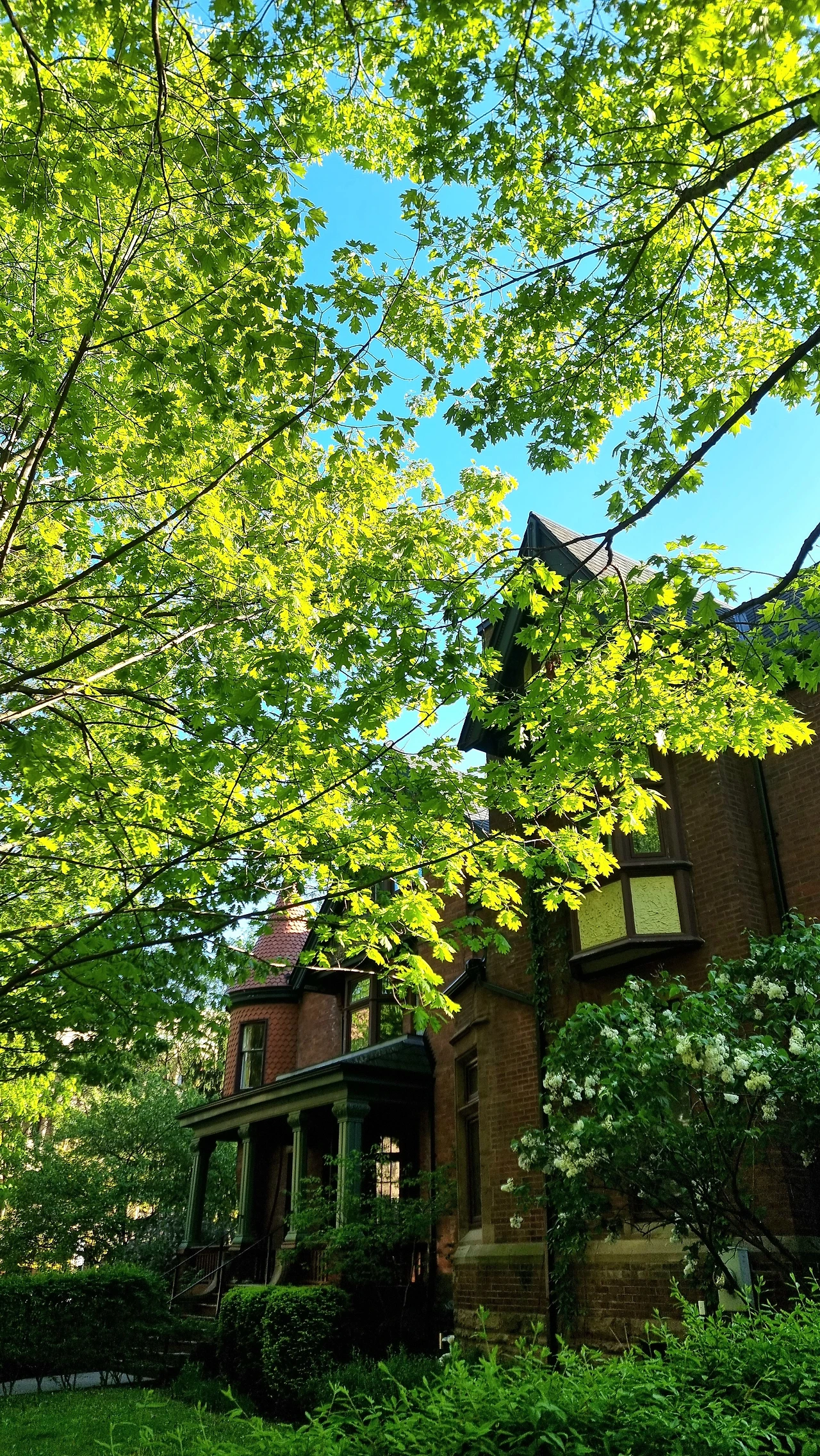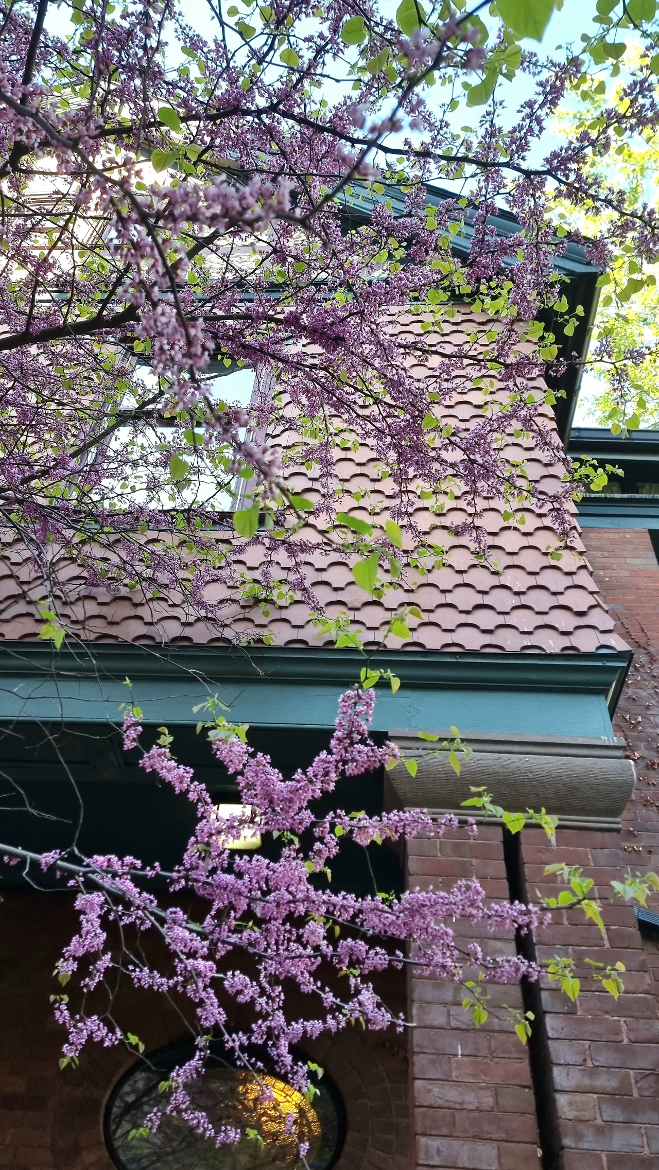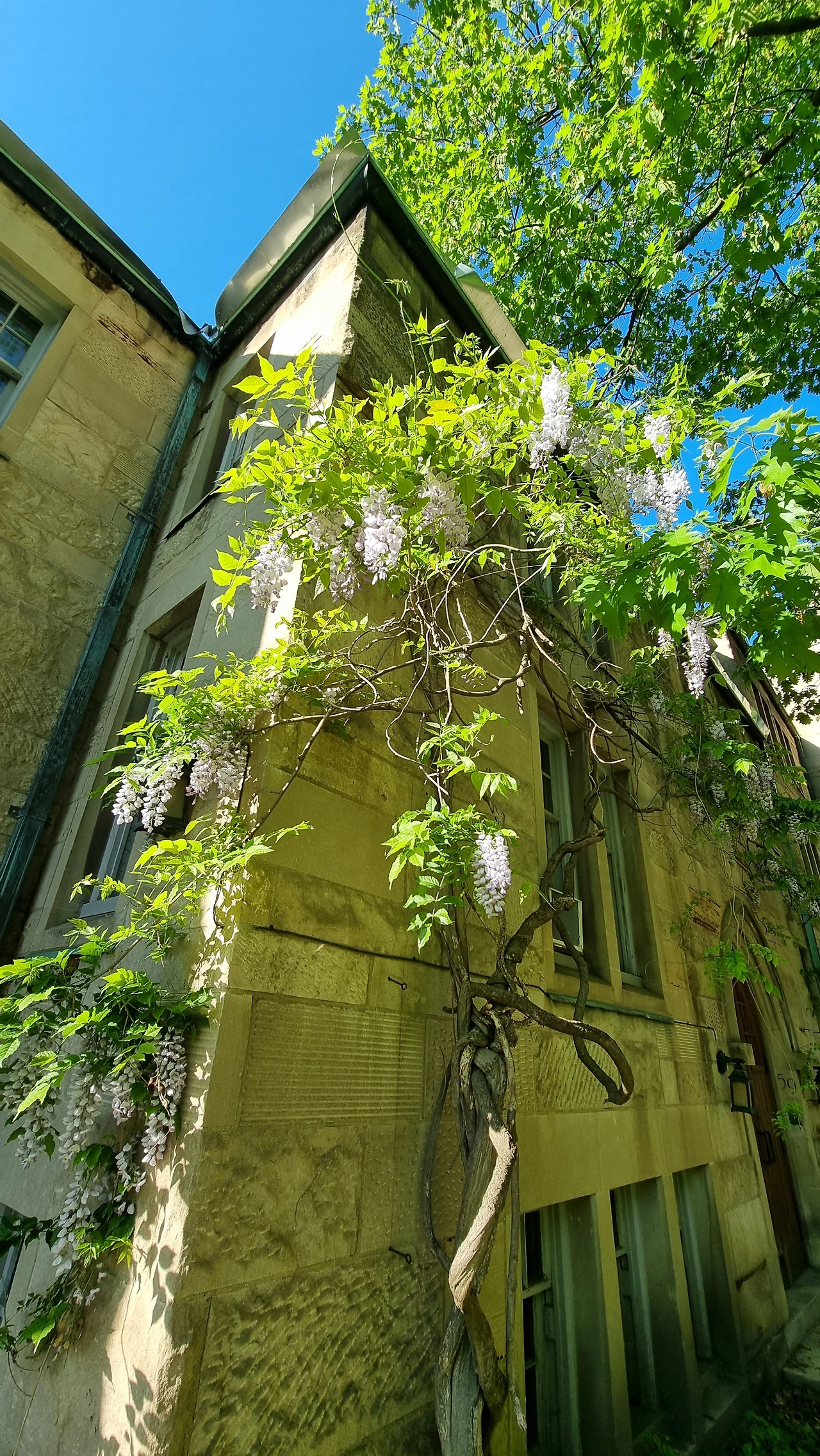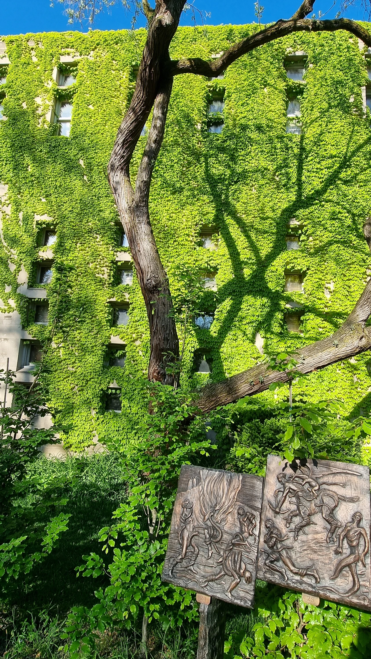 Looking at the facade inscribed with a delicate pattern of shadow of tree trunks makes me happy also.