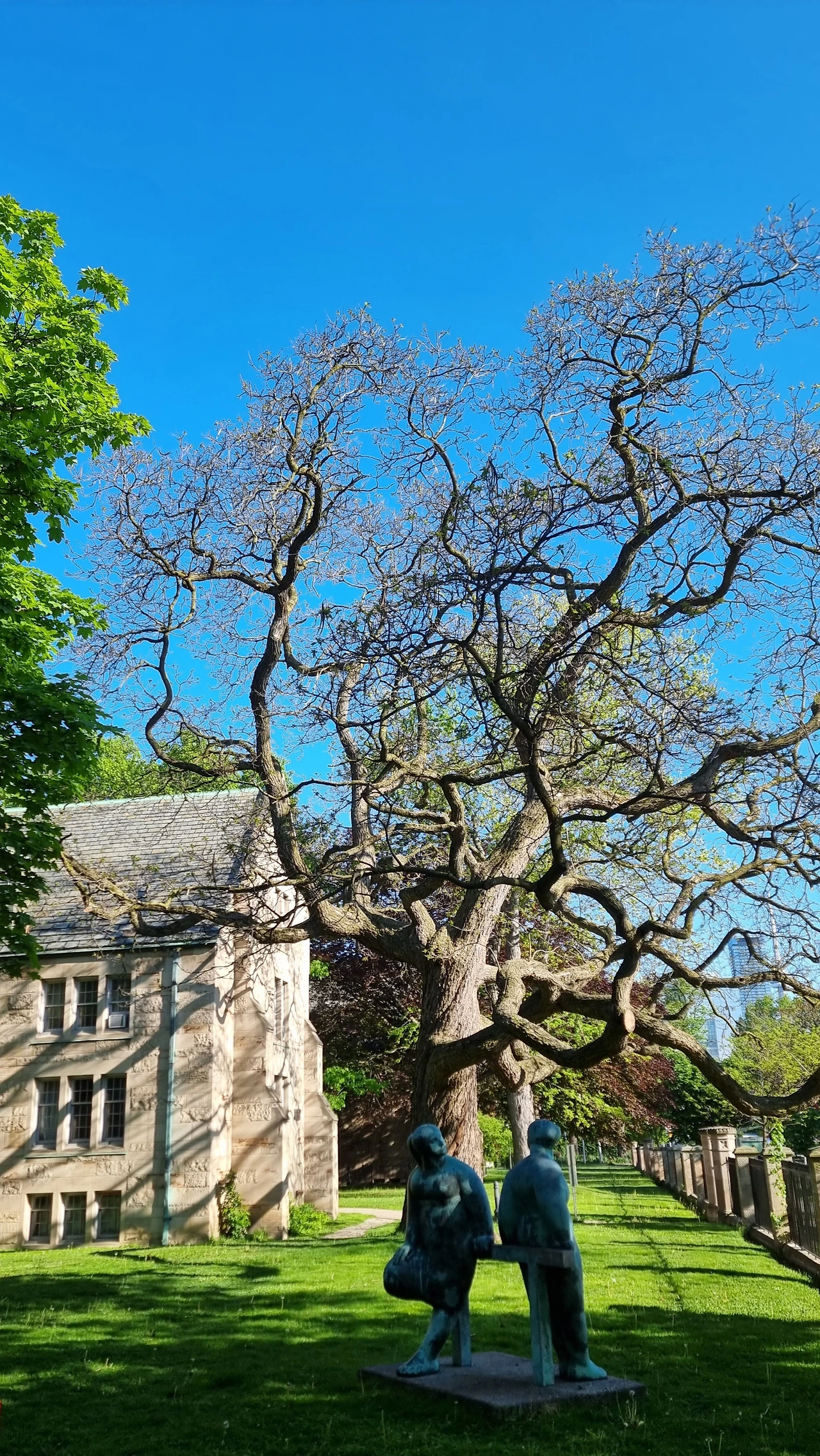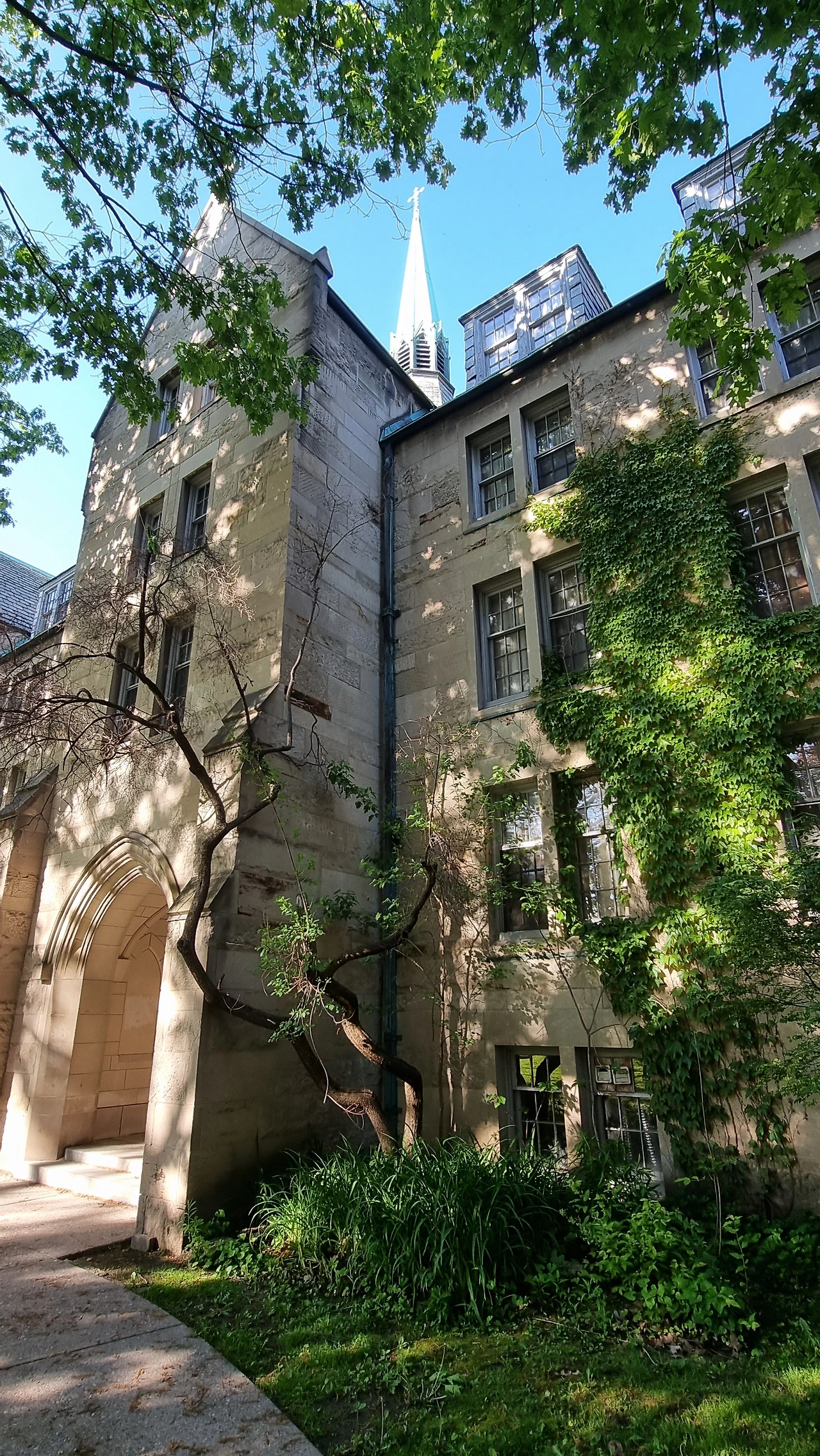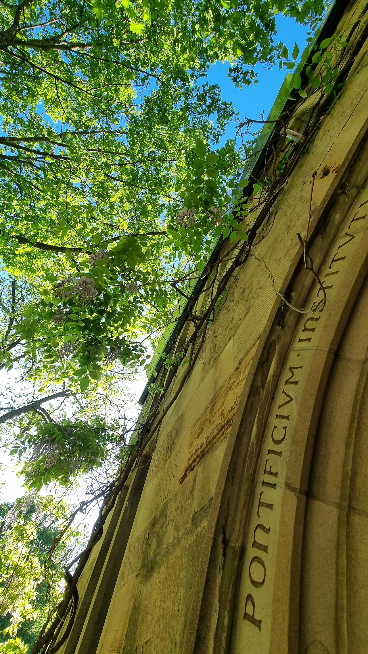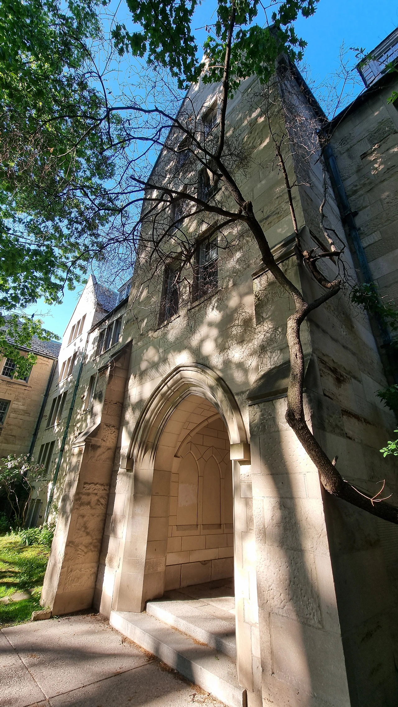 Looking at the facade inscribed with a delicate pattern of shadow of tree trunks makes me happy also.