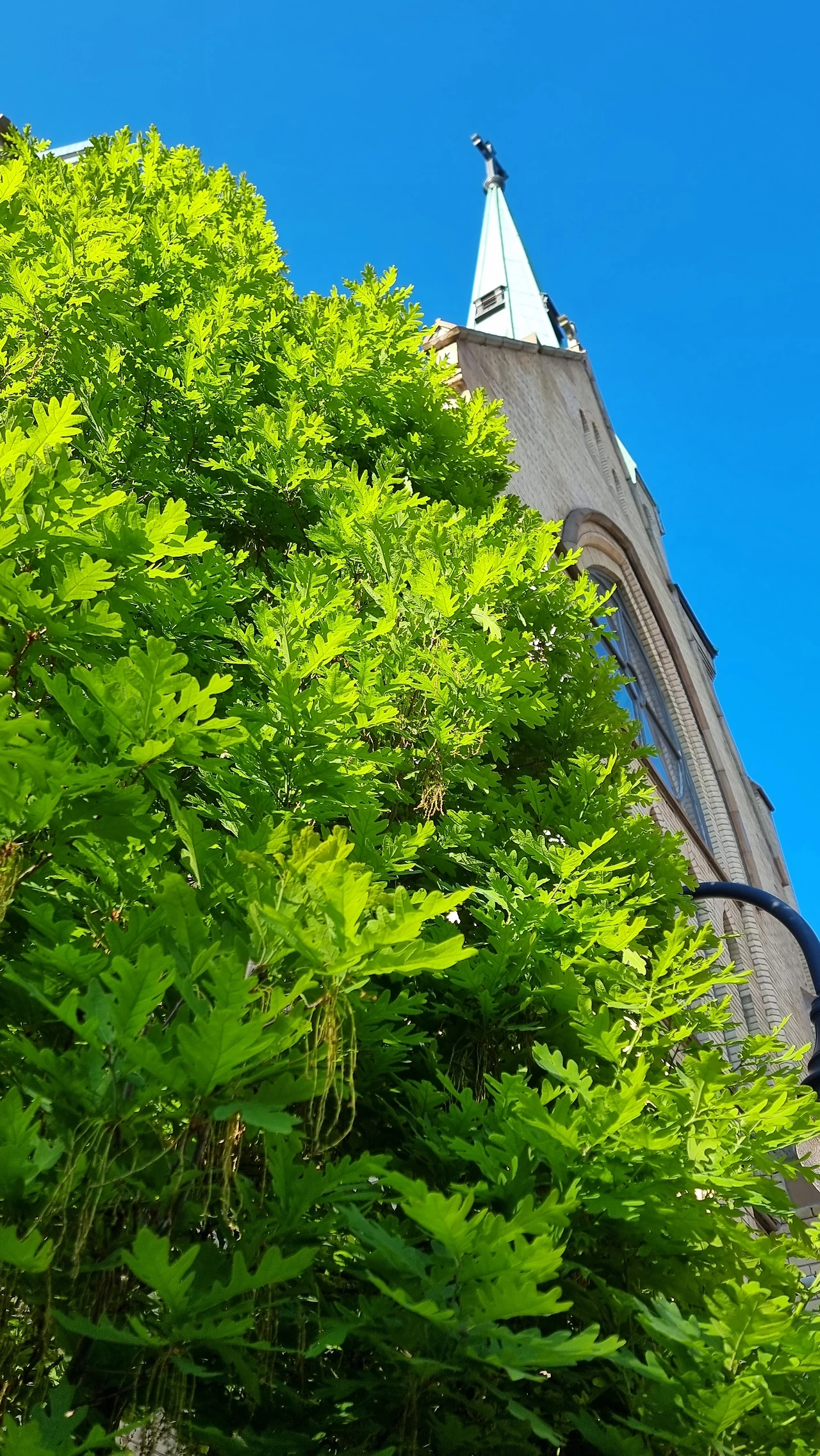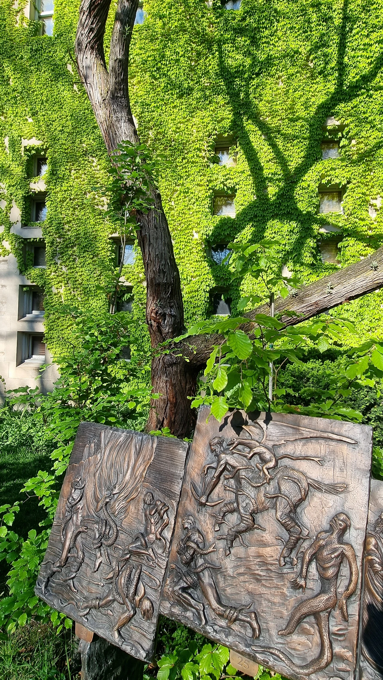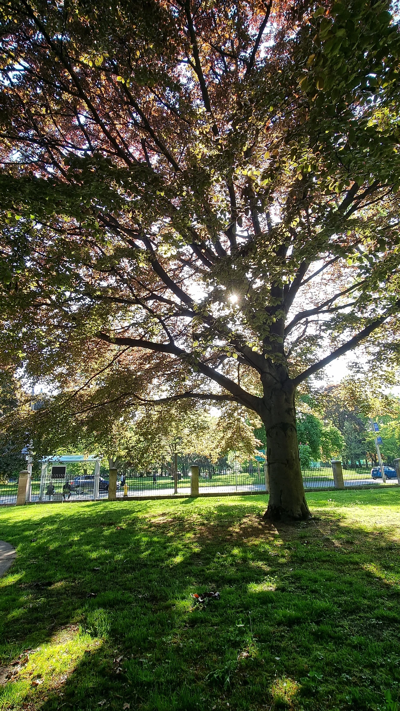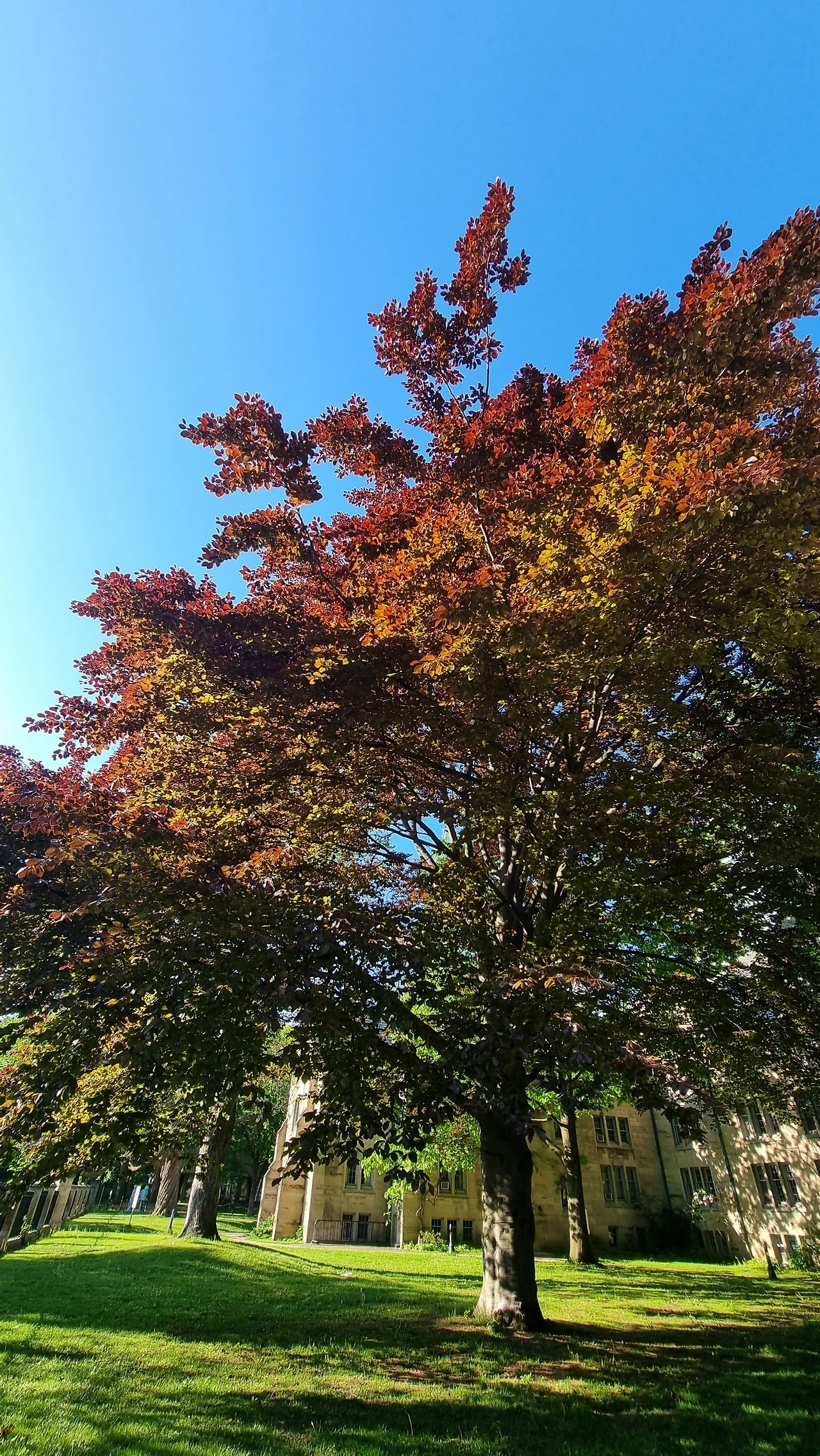 Looking at the facade inscribed with a delicate pattern of shadow of tree trunks makes me happy also.