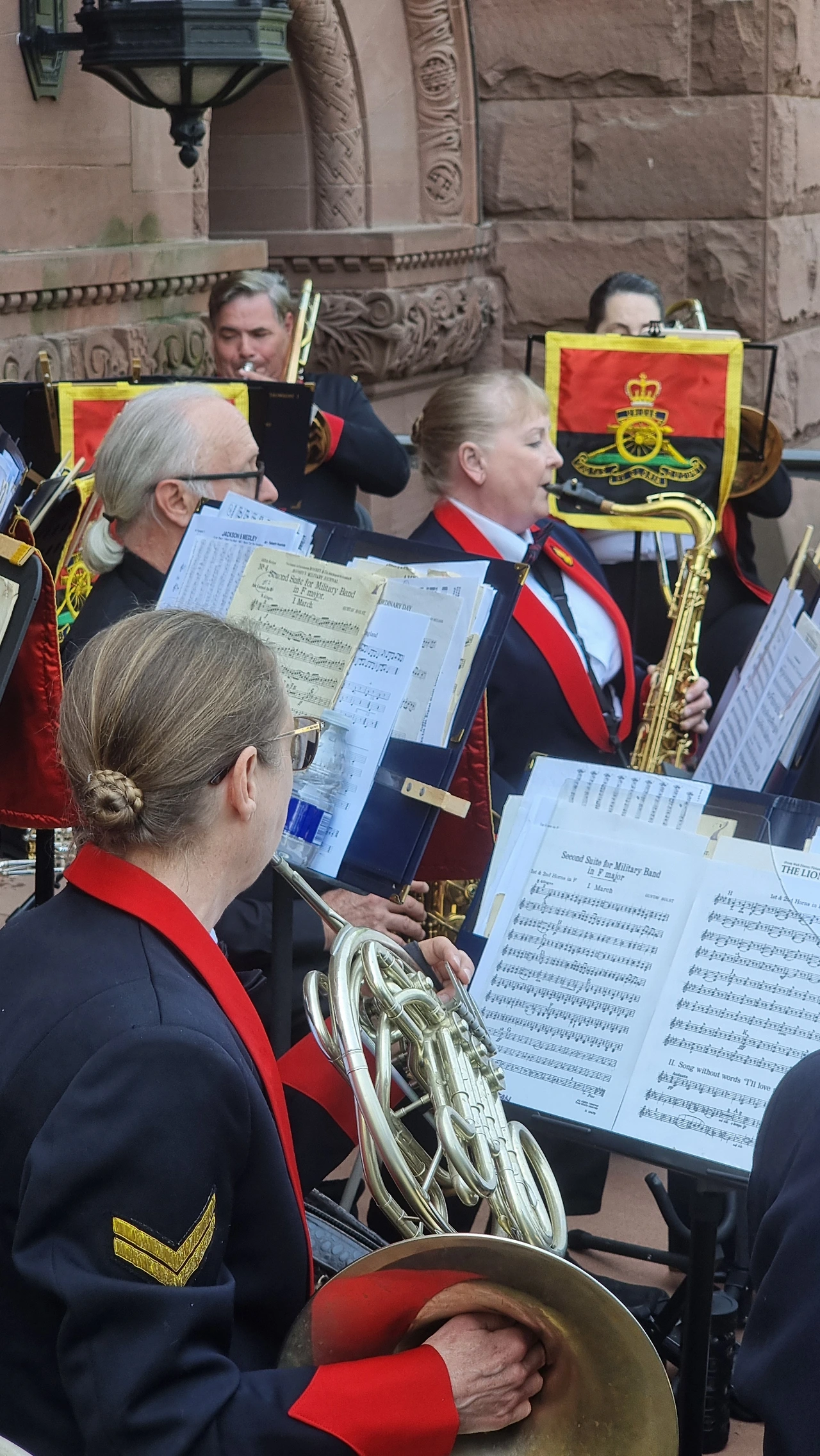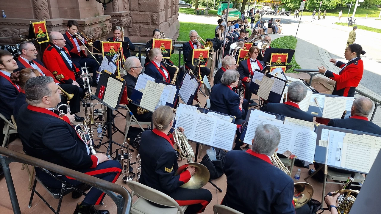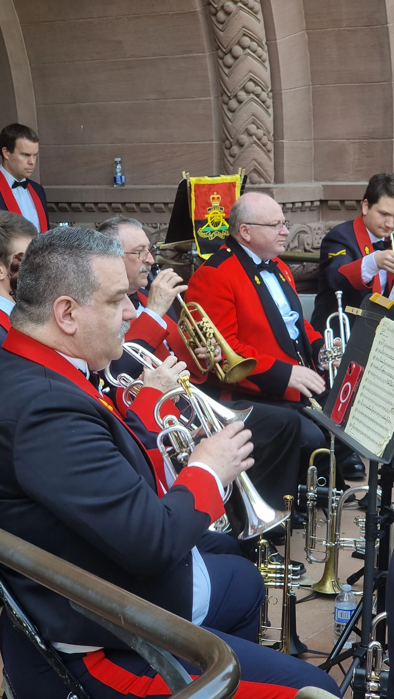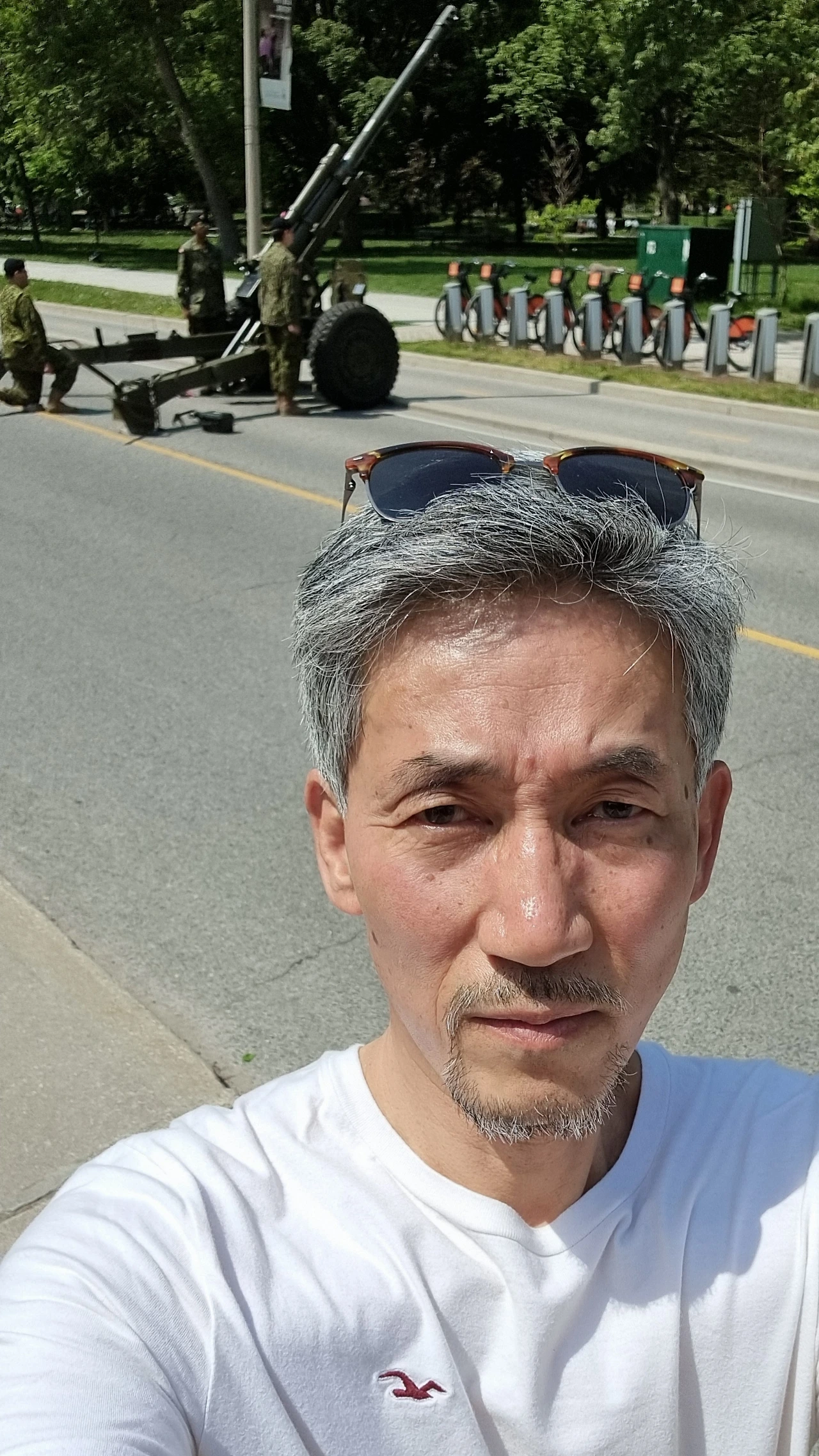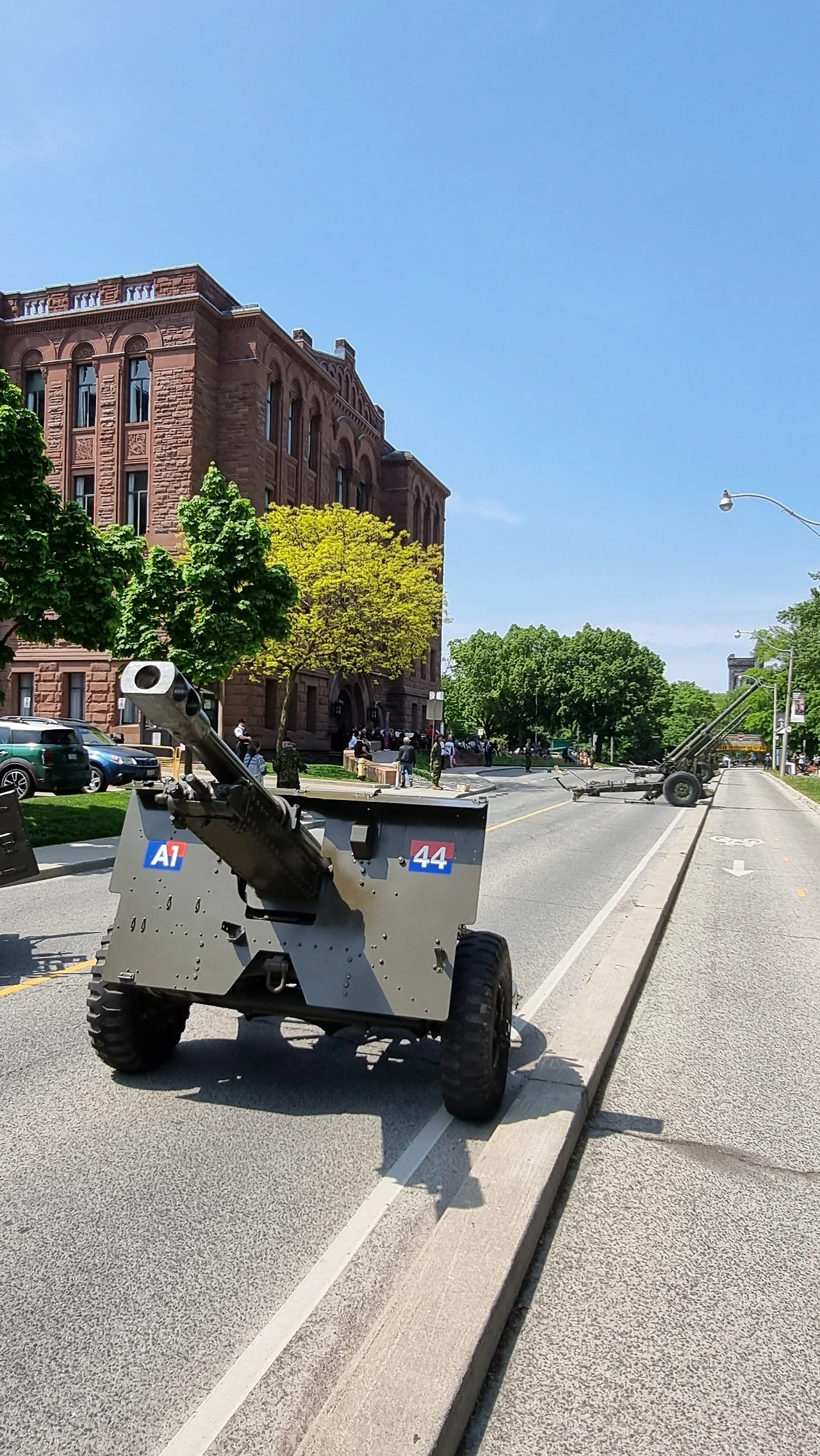 토론토 다운타운 중심에 위치한 퀸즈 파크, 사실상 빅토리아 여왕을 기념하는 파크,를 산책하는데 어디선가 튜바 소리가 들리는 듯했는데 내 귀가 맞았다. 자세히 보니 brass 중심의 한 무리의 밴드가 온타리오 주의회당의 한 건물 앞에서 연주 준비를 하고 있었다. 캐나다 군의 왕립 제7 포병 연대의 군악대였다. 헐.. 이런 횡재가..