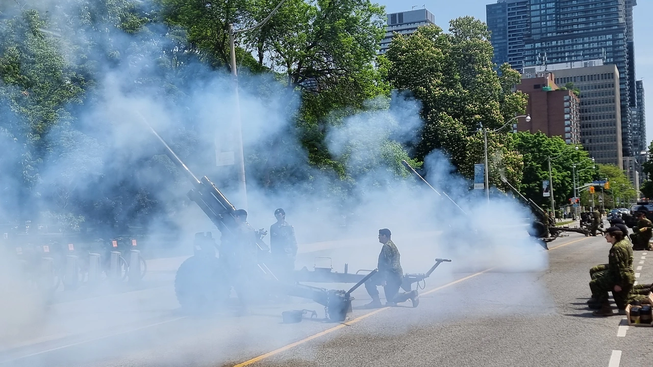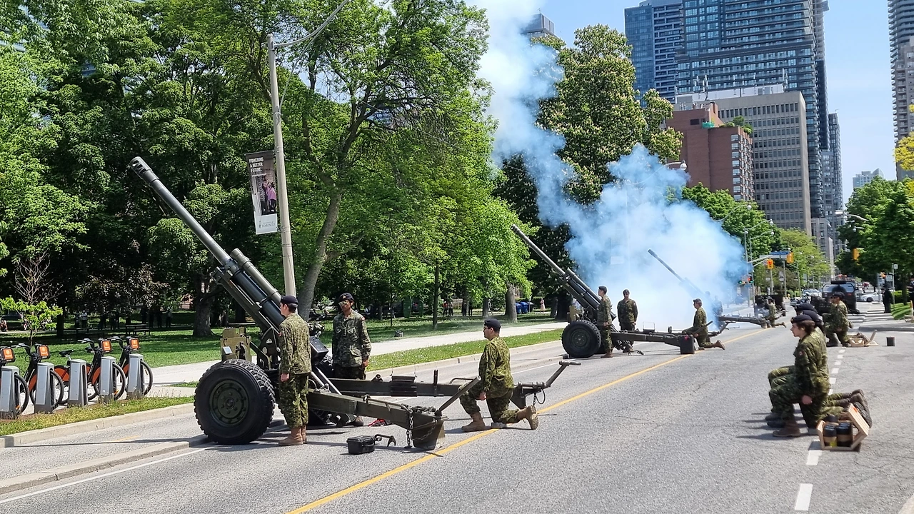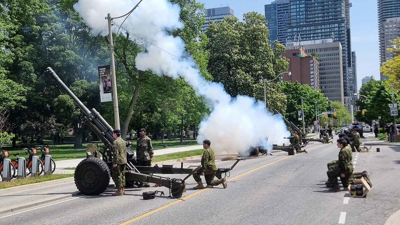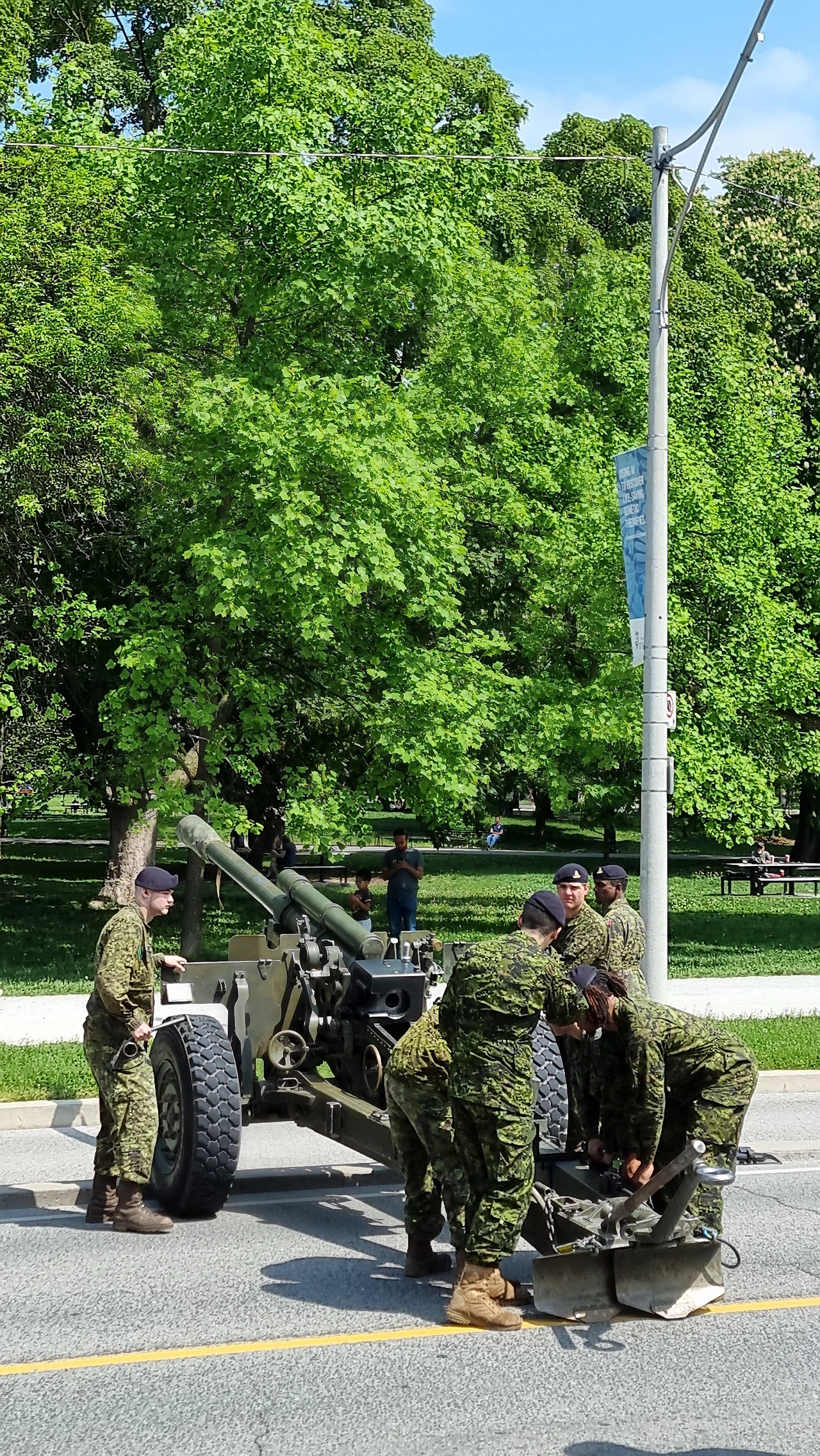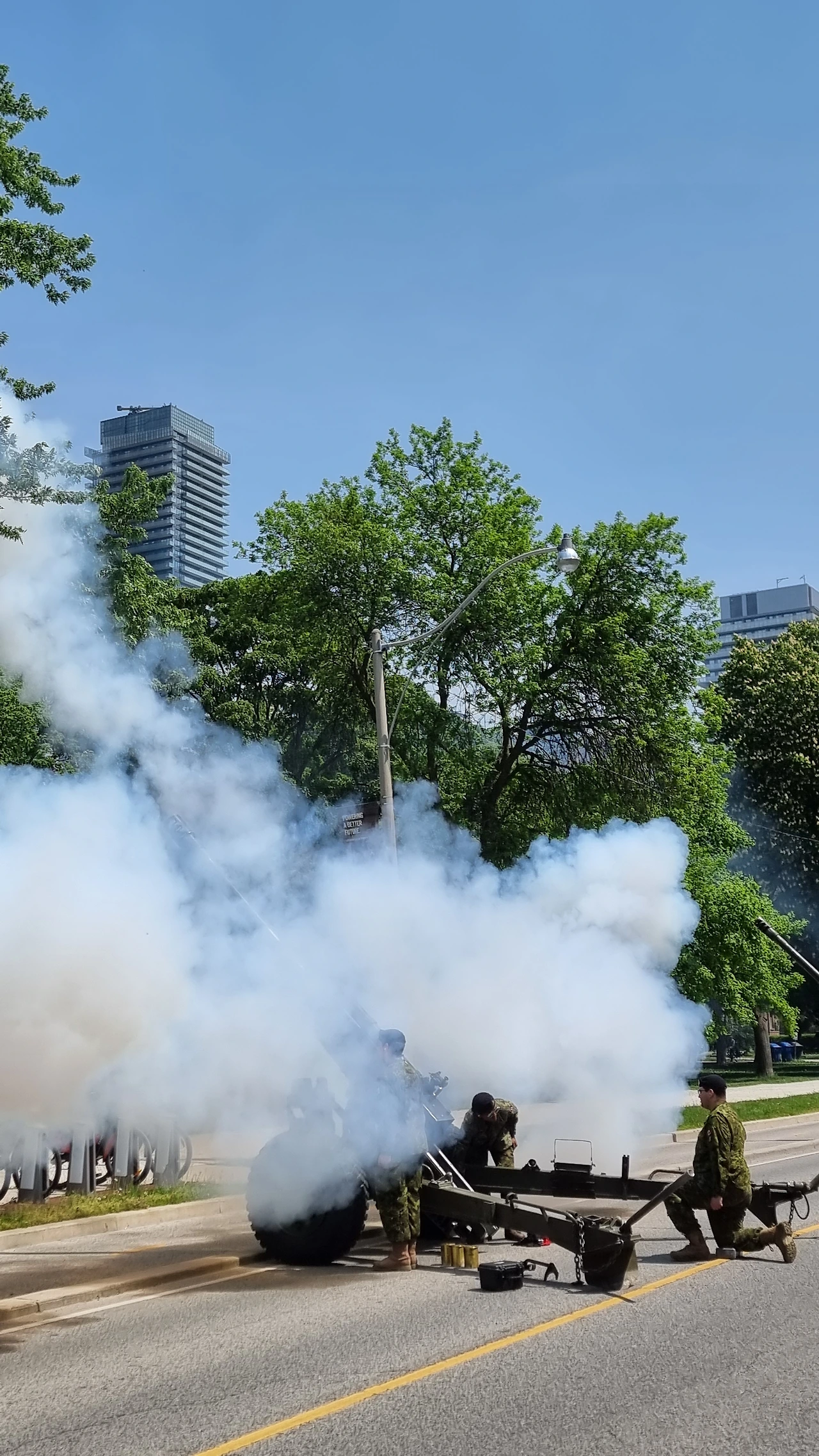 탄두없이 장약만 터트리는 예포 행사이지만 그 소리가 엄청났고 온몸를 흔드는 공기 진동 역시 대단했다. 예전에 오타와의 연방의사당 앞에서도 예포 발사 행사를 지켜본적이 있었지만 코앞에서 벌어지는 대포의 위력은 정말 대단했다.
