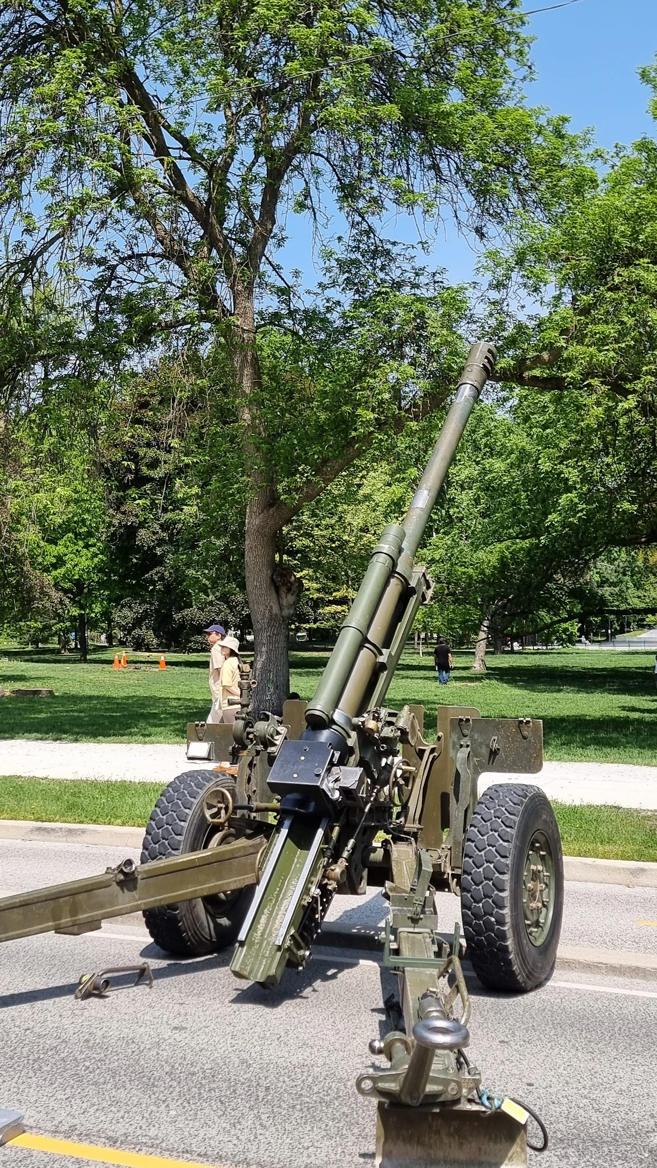 내 예상이 적중했고 11시부터 연주가 시작되었다. 몇 번의 박수가 지났는가 싶더니 갑자기 군용 트럭의 우람한 엔진 소리가 나면서 포병들이 멋진 105 mm 곡사포들과 함께 내 앞에 전개되기 시작했다. 우와....!!