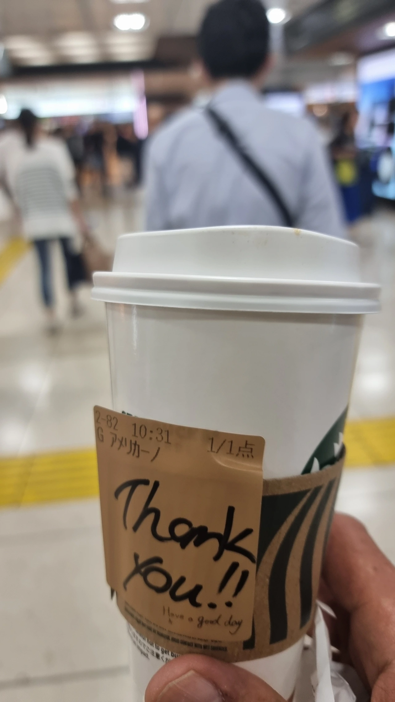 열차 티켓 구매를 위해 스타벅스에서 잔돈을 바꿨는데, 영어를 사용하는 외국인인 내가 신기하고 재미있었던 모양이었다. 알바 인듯한 두 젊은 여성들은 내 말을 못 알아들어 당황해하면서도 연신 웃어가며 즐겁게 내 오더를 받았다. 나중에 컵을 보니, 대문짝 만하게 땡큐, 보일 듯 말듯하게 Have a nice day 가 쓰여 있었다. 대학생인듯한 두 여성들의 아름답고 맑은, 그리고 짓궂고 천진한 웃음이 일본에 대한 좋은 기억으로 쌓인다.