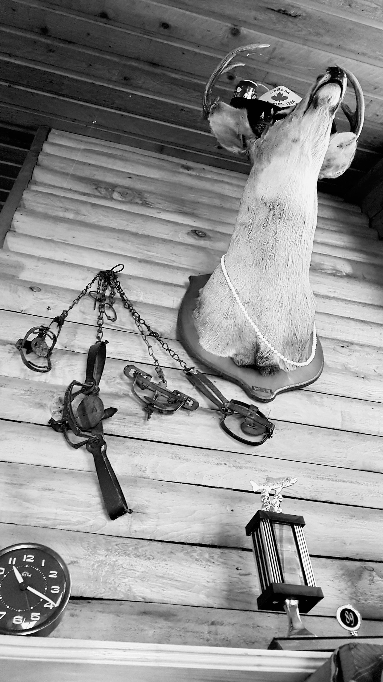 북극의 블리자드가 자주 불어 내리는 이곳엔 눈이 엄청나게 쌓이는데 위 사진이 그때 필요한 전통 snow shoes 다. 머빈은 눈 쌓인 들판을 저 설상화를 신고 사냥을 나서 수컷 사슴을 사냥한 게 분명하다. 오른쪽의 박제된 수사슴이 증거.