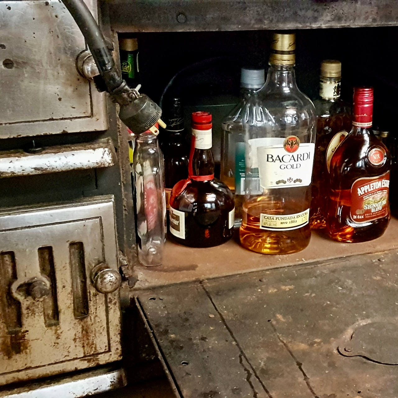 이곳에 오는 손님들은 가족과 친구들 뿐이었고 그들이 가져와 마시고 남은 각종 술들은 위스키 rack으로 쓰임새가 바뀐 왕년의 장작불 oven 속에 가득했다. 난 40oz Absolute 한병과 보르도 와인 두병을 가져와 식사 시 마셨다.