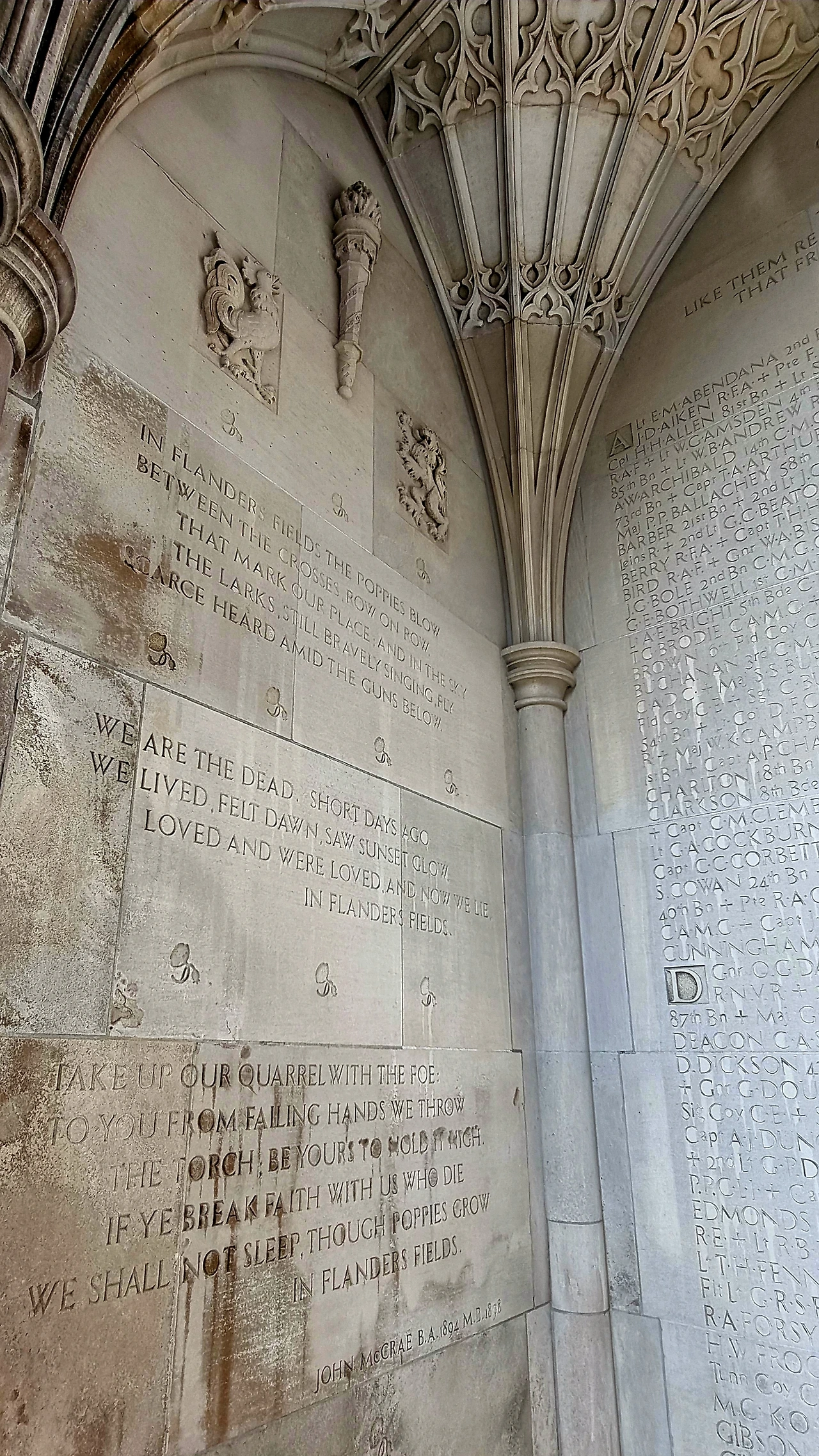 구름이 살짝 펼쳐진 일요일 아침 산책. 1차세계대전 중 캐나다군 6,000명이 전사한 플란더스 전투에서 사망한 토론토대 동문들의 명부는 Soldiers' Tower 한켠의 전용 공간에 조성되어 있었다.
