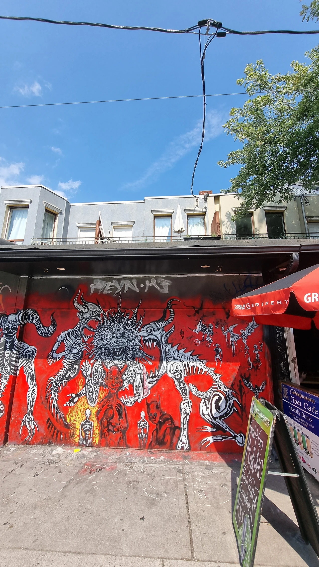 I liked these devilly graffiti or logos drawn with chalks on the asphalt. It is one of the infinitely different ways of artistic expression or representation, or voice of the indie culture, underground culture or sub-culture, or whatever in Toronto.
