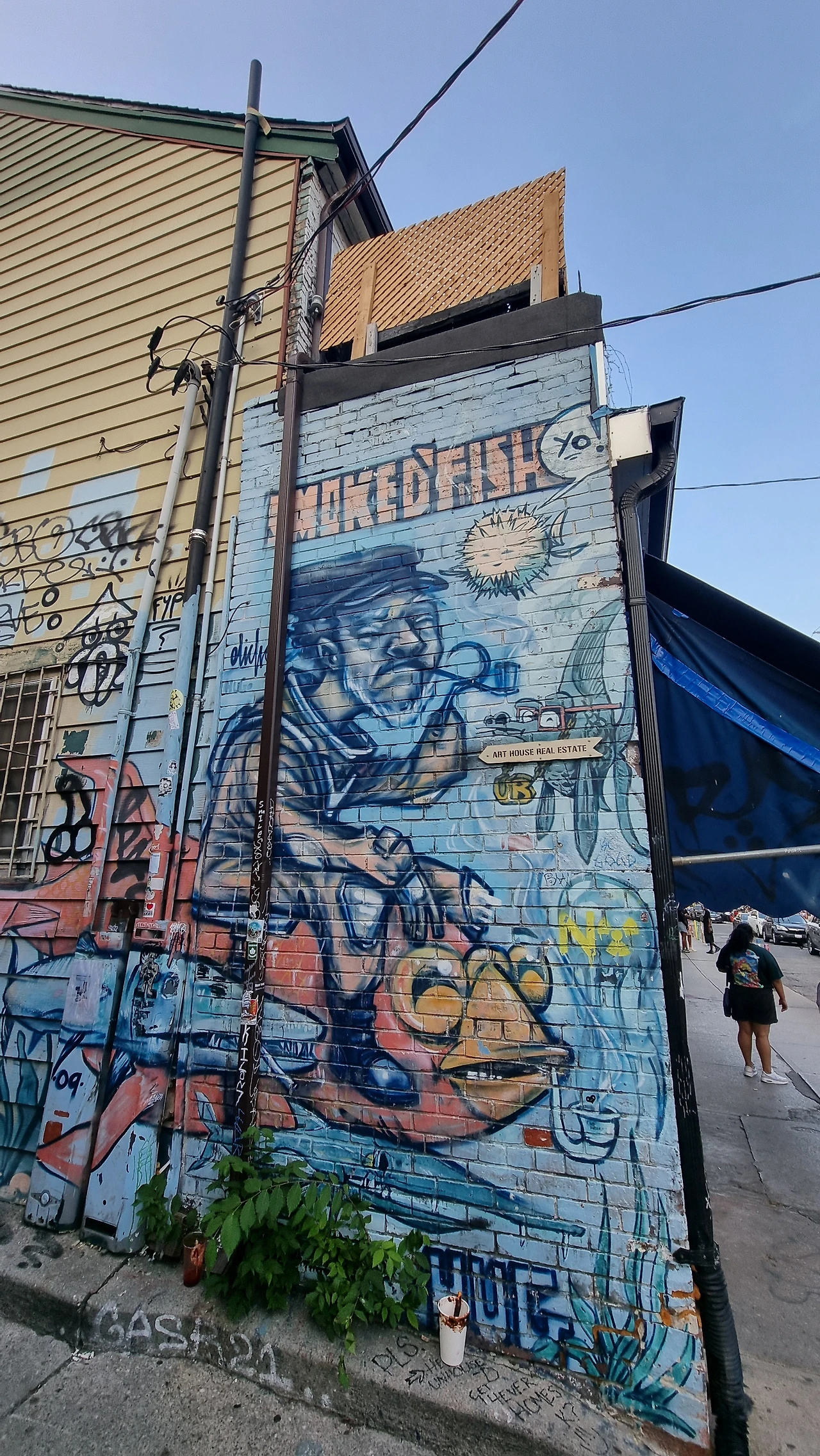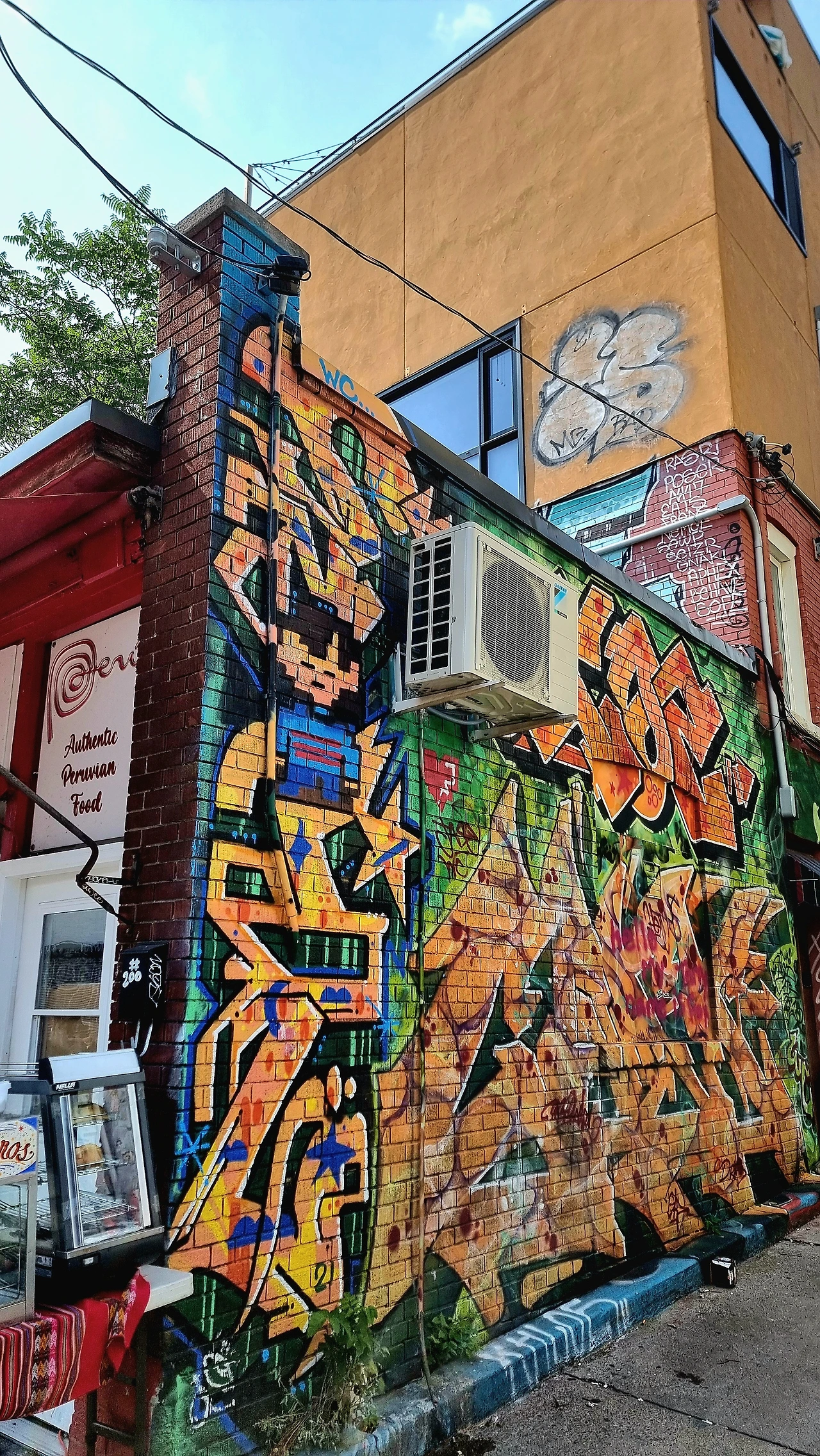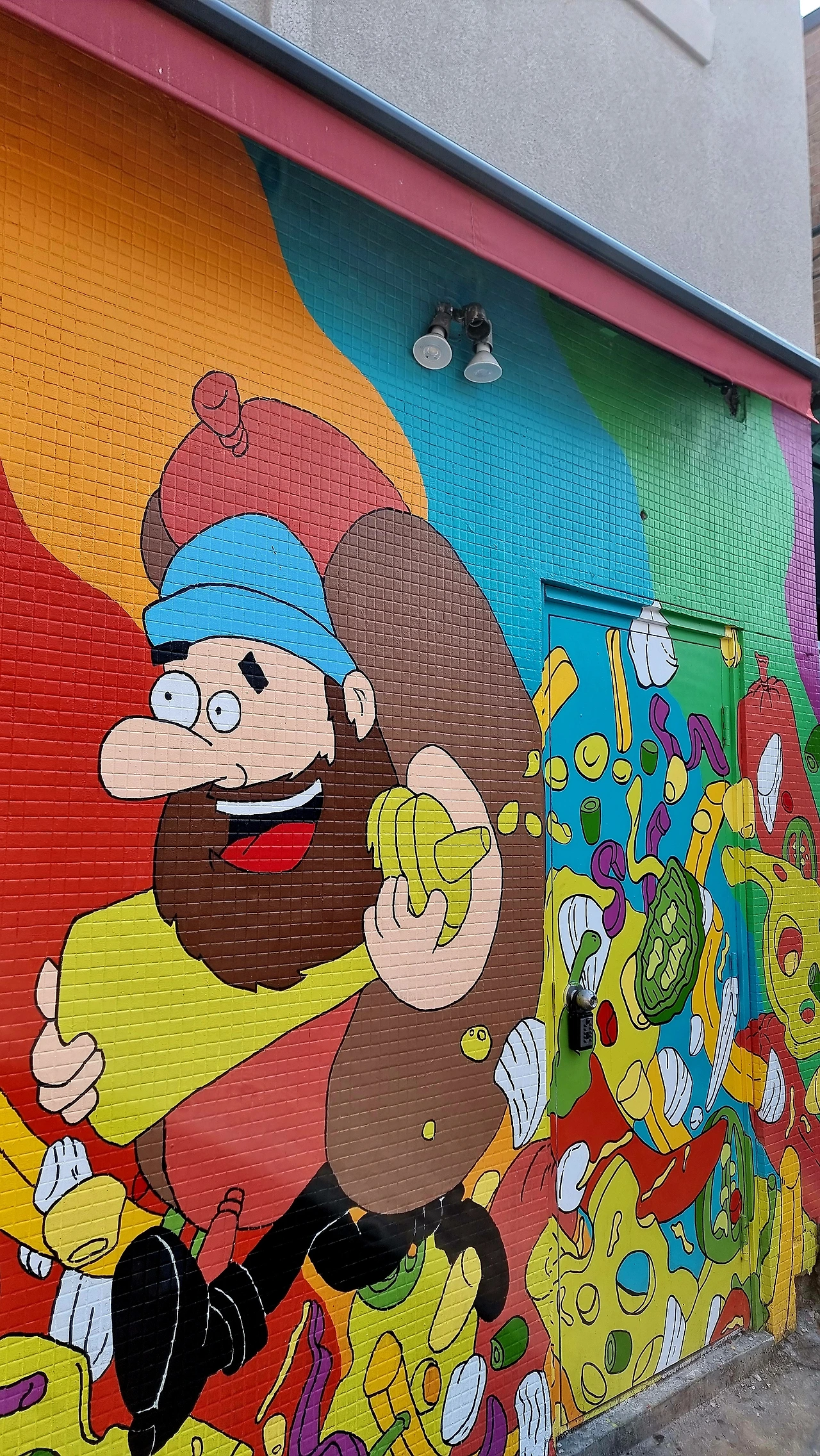 Strangely, or perhaps miraculously, all these diverse pieces of art found in every corner—on walls, houses, traffic signs, and even the sides of garbage containers—harmonize beautifully with one another. This place is not a melting pot, where mixed colors mechanically produces a dull grey. Instead, the market presents a vibrant spectrum of the colors, showcasing the vivid characteristics of each individual color. It’s truly amazing.
