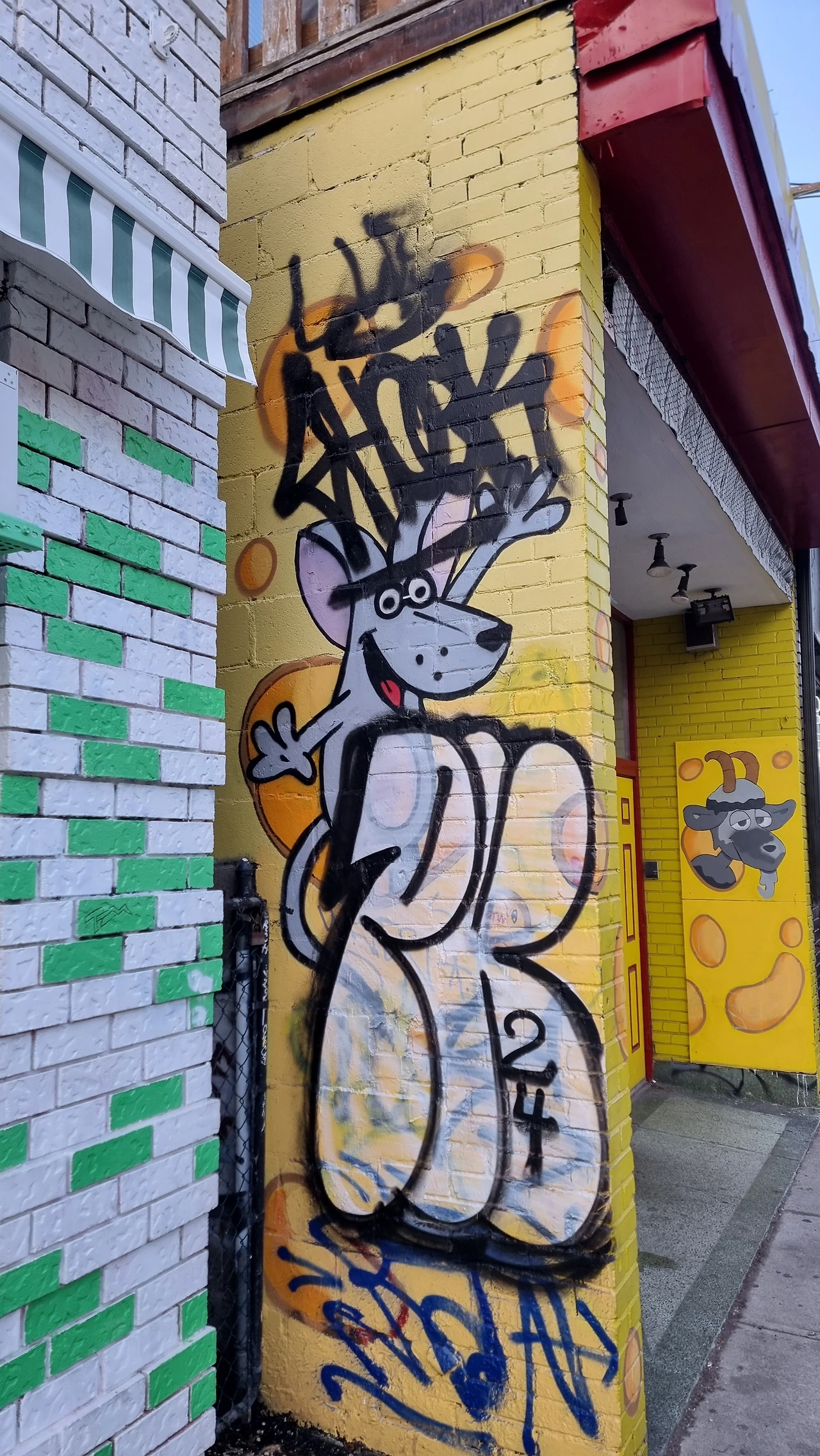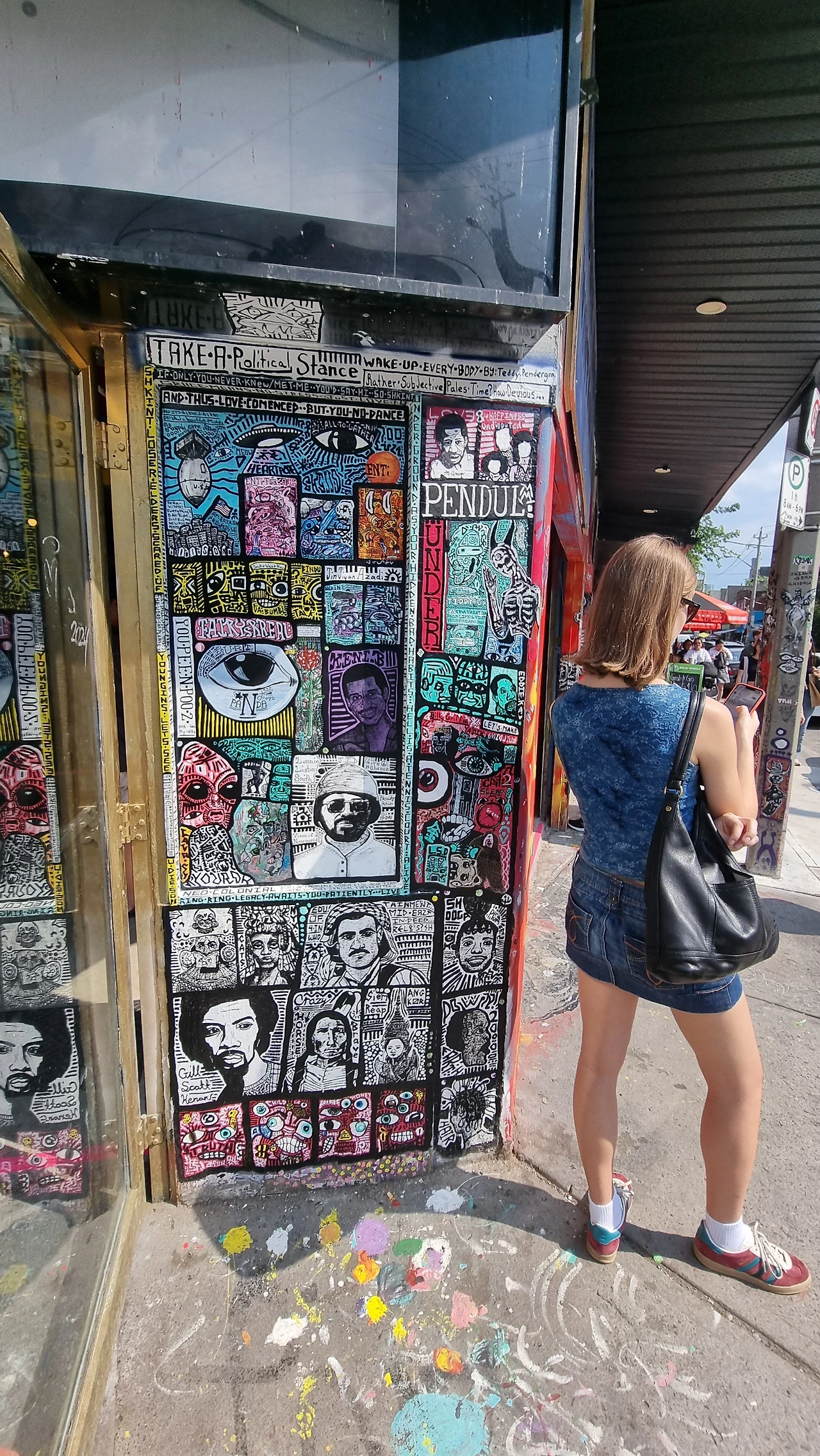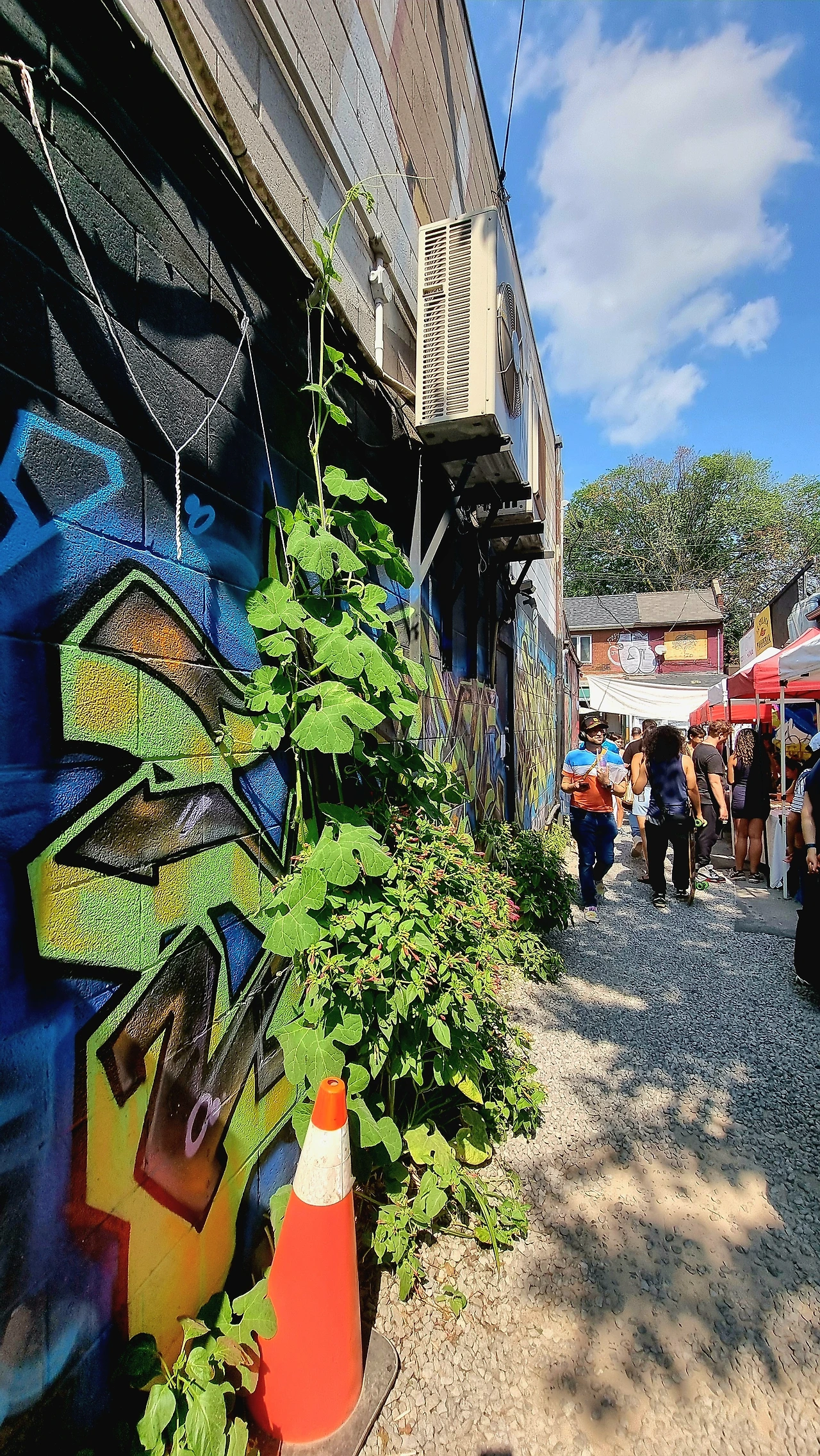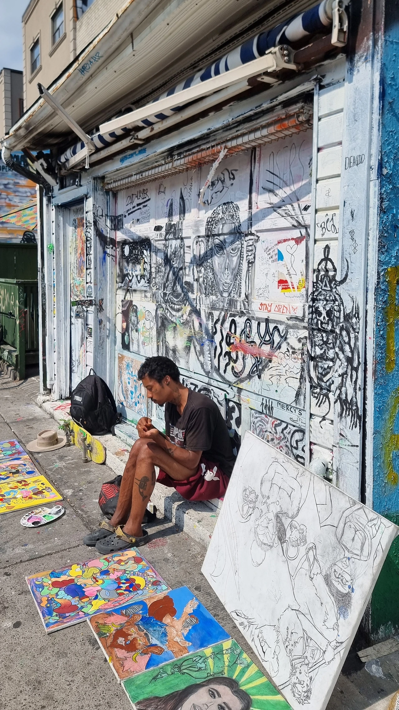 Strangely, or perhaps miraculously, all these diverse pieces of art found in every corner—on walls, houses, traffic signs, and even the sides of garbage containers—harmonize beautifully with one another. This place is not a melting pot, where mixed colors mechanically produces a dull grey. Instead, the market presents a vibrant spectrum of the colors, showcasing the vivid characteristics of each individual color. It’s truly amazing.