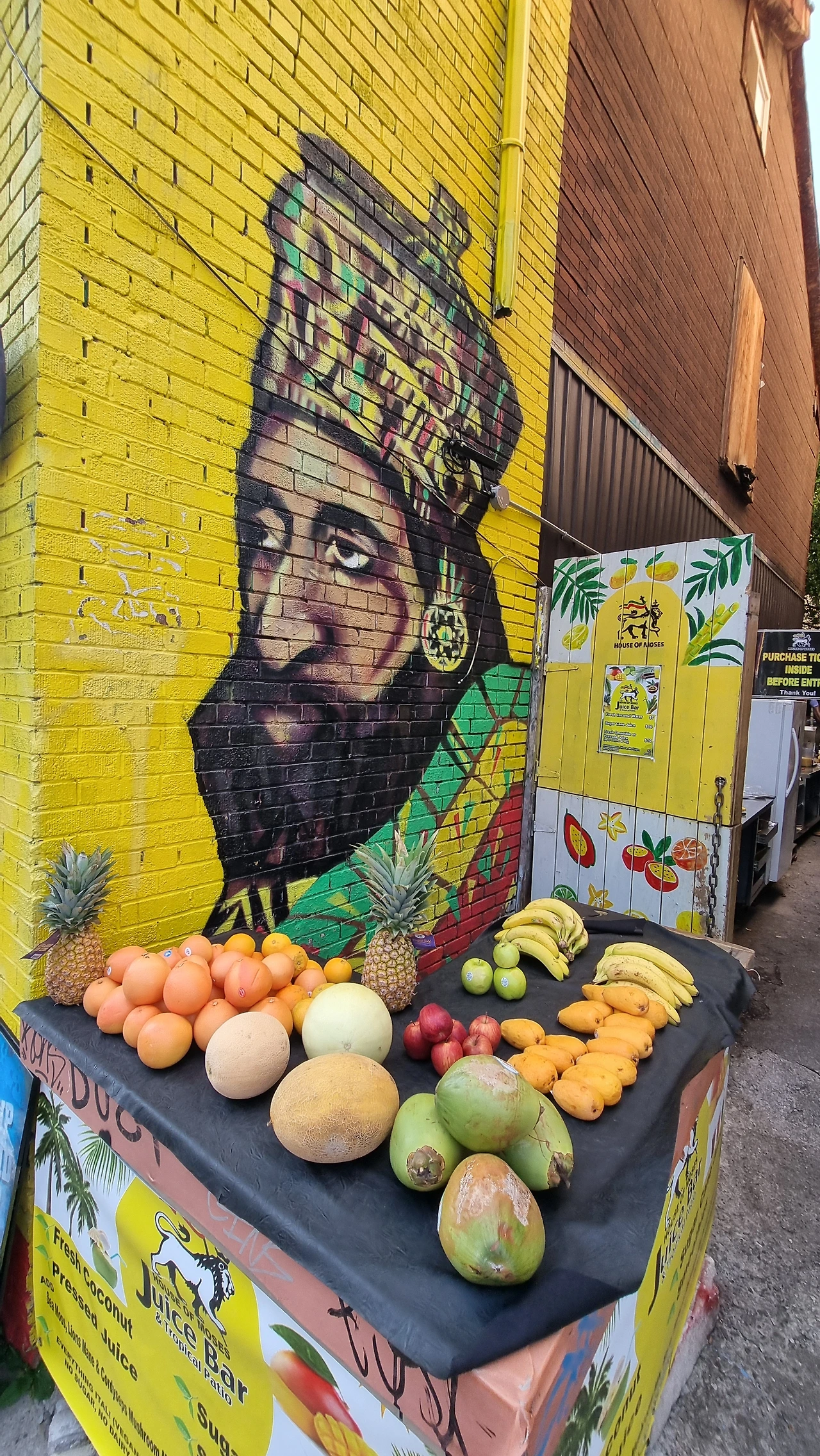 A tropical juice bar. The bar owner was smoking a cigar near the portable kitchen sink in the back, a cubano one I guess. He had some charisma as his portrait tells on the wall even though he was selling fresh but humble juice in the street. :p