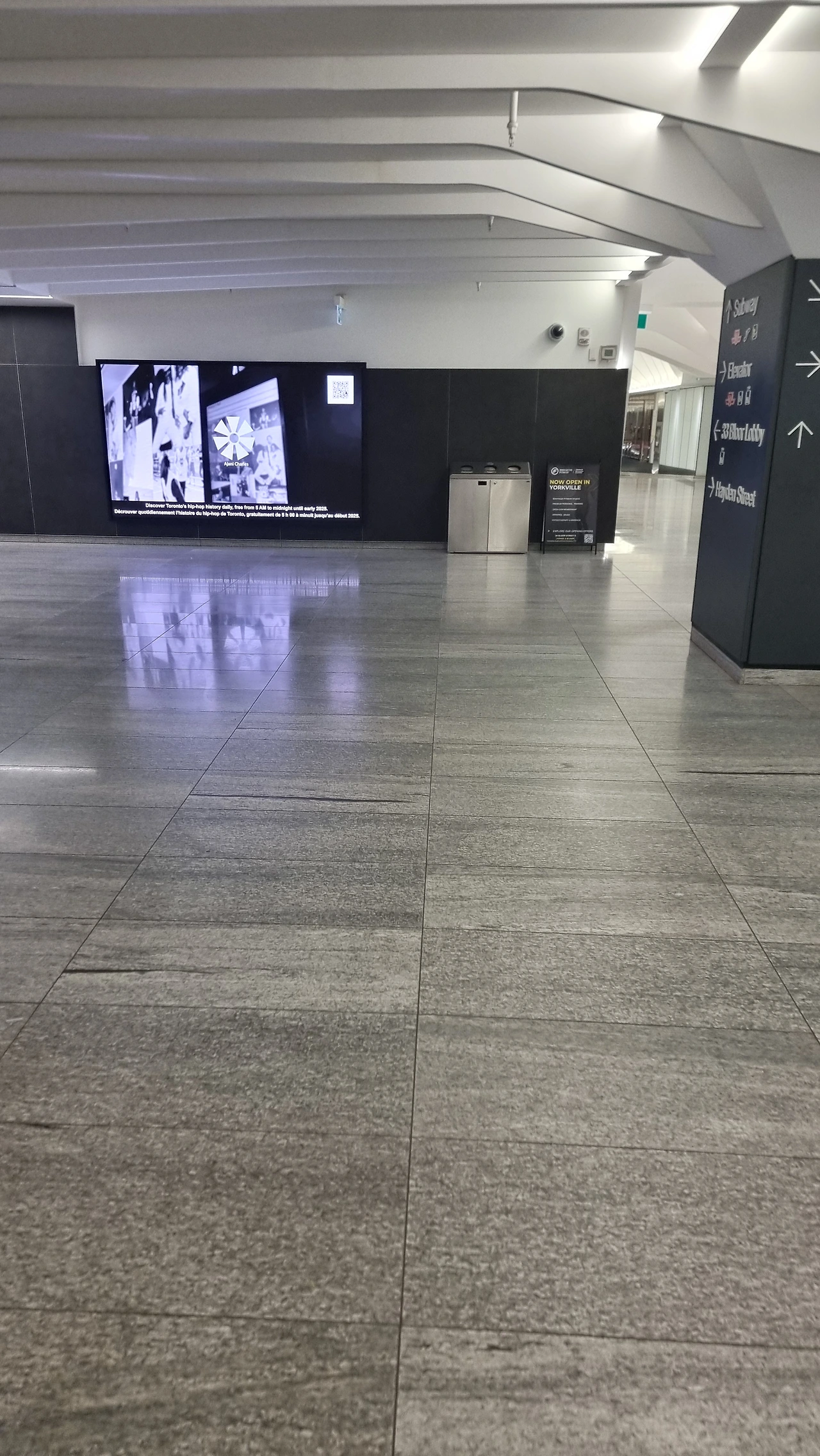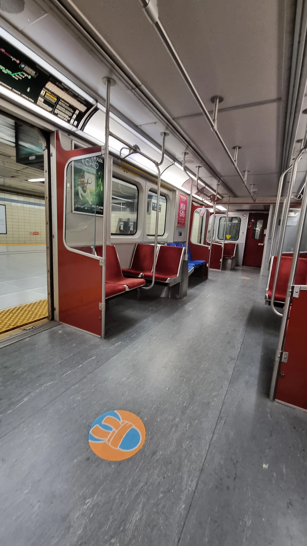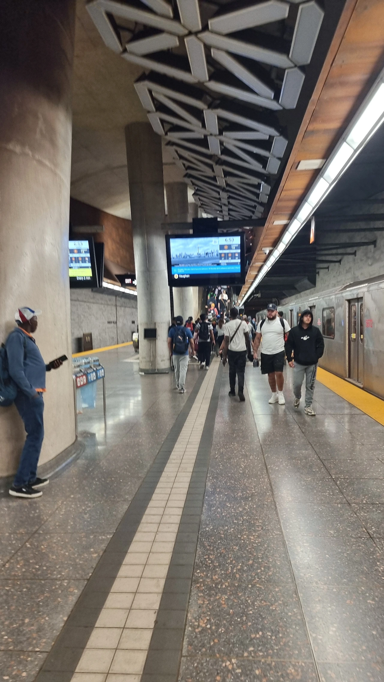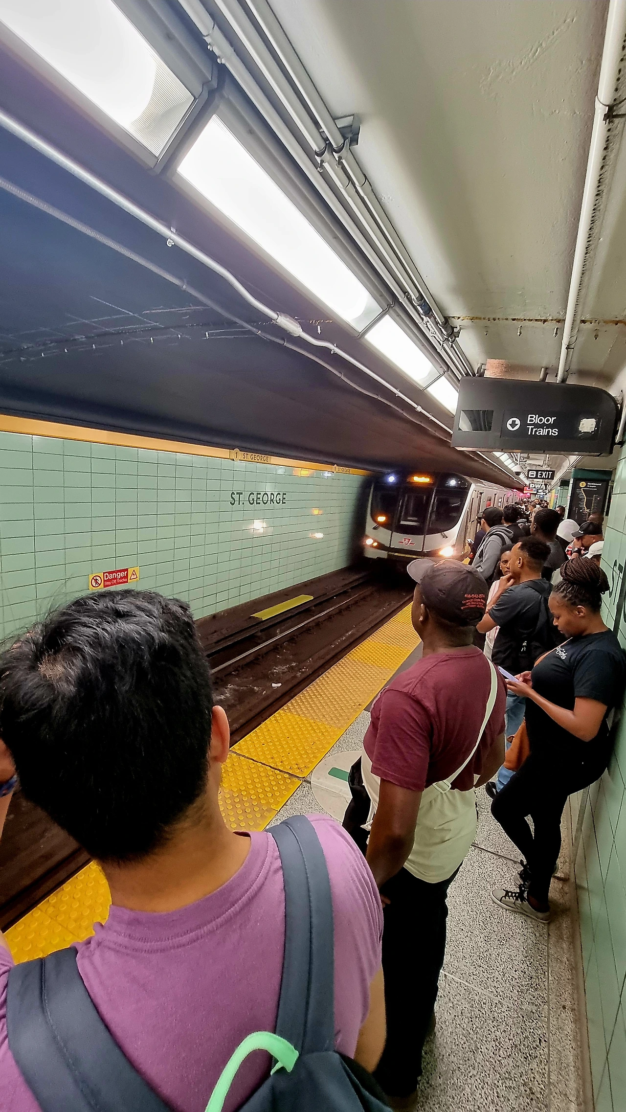 1호선 남북선의 첫 열차가 운행되기 직전의 플랫폼 풍경이다.Southbound 무인전동열차가 들어올 플랫폼에 트렁크와 함께 서있는 이들은 피어슨 국제공항으로 향하는 여행객들임이 분명하다.