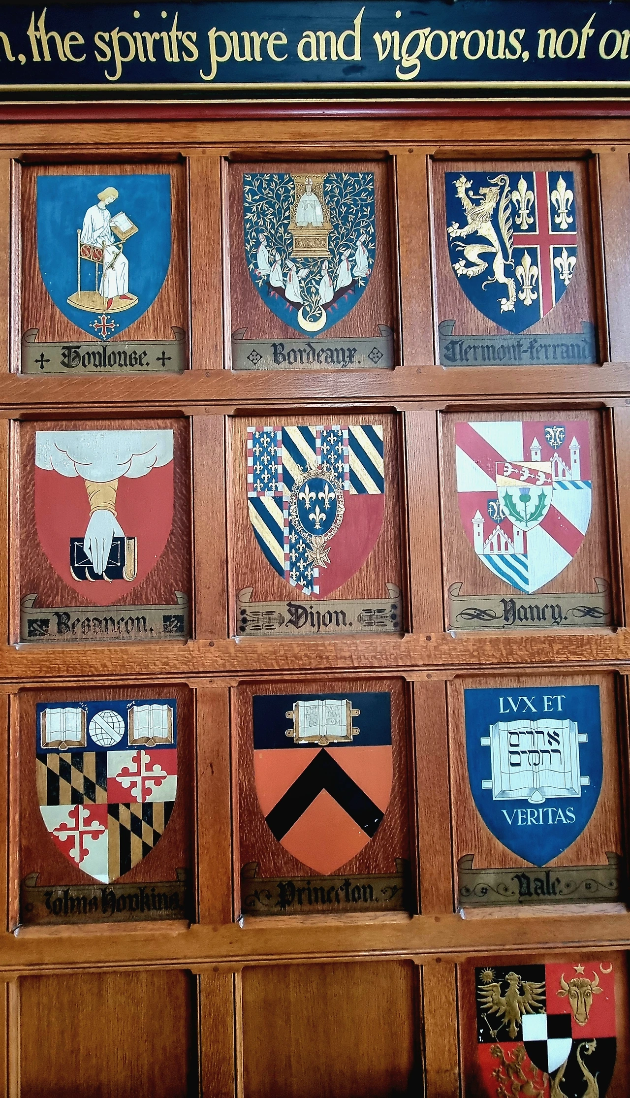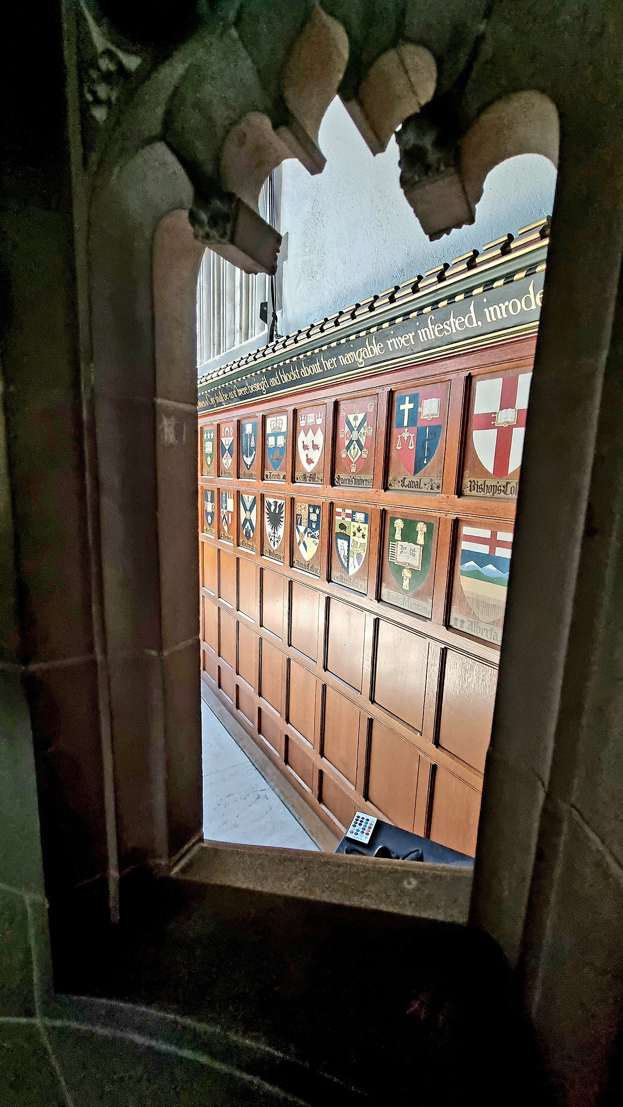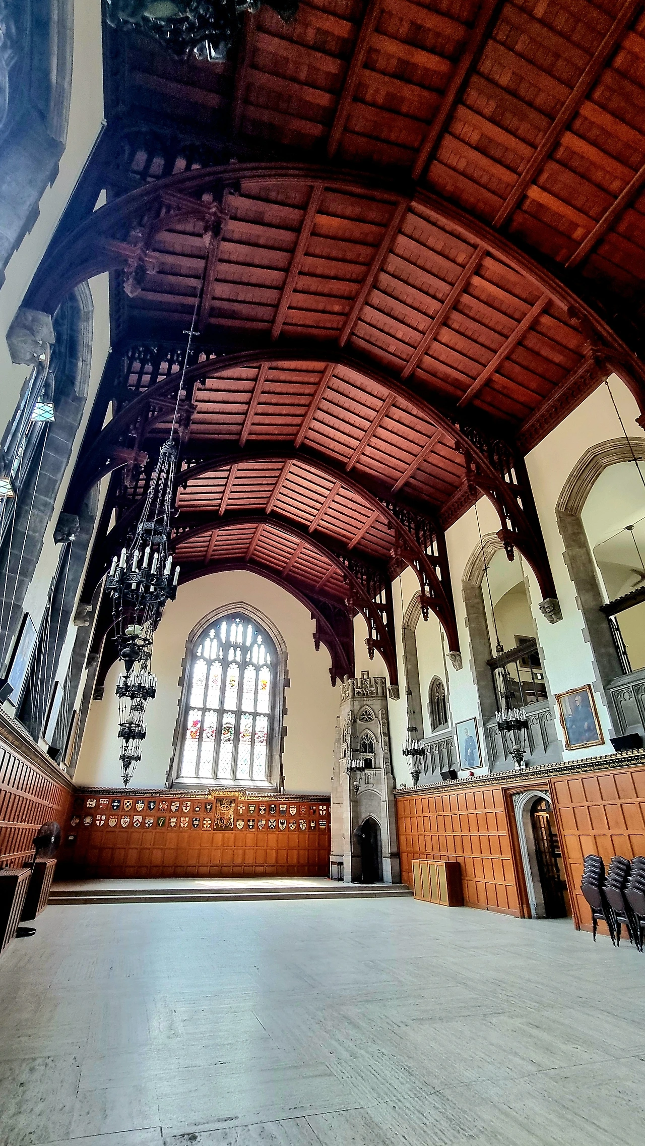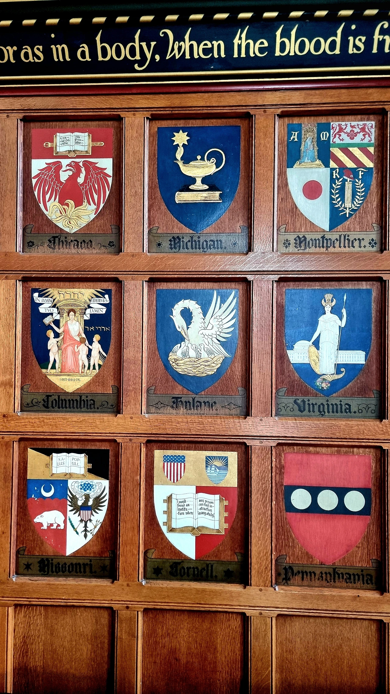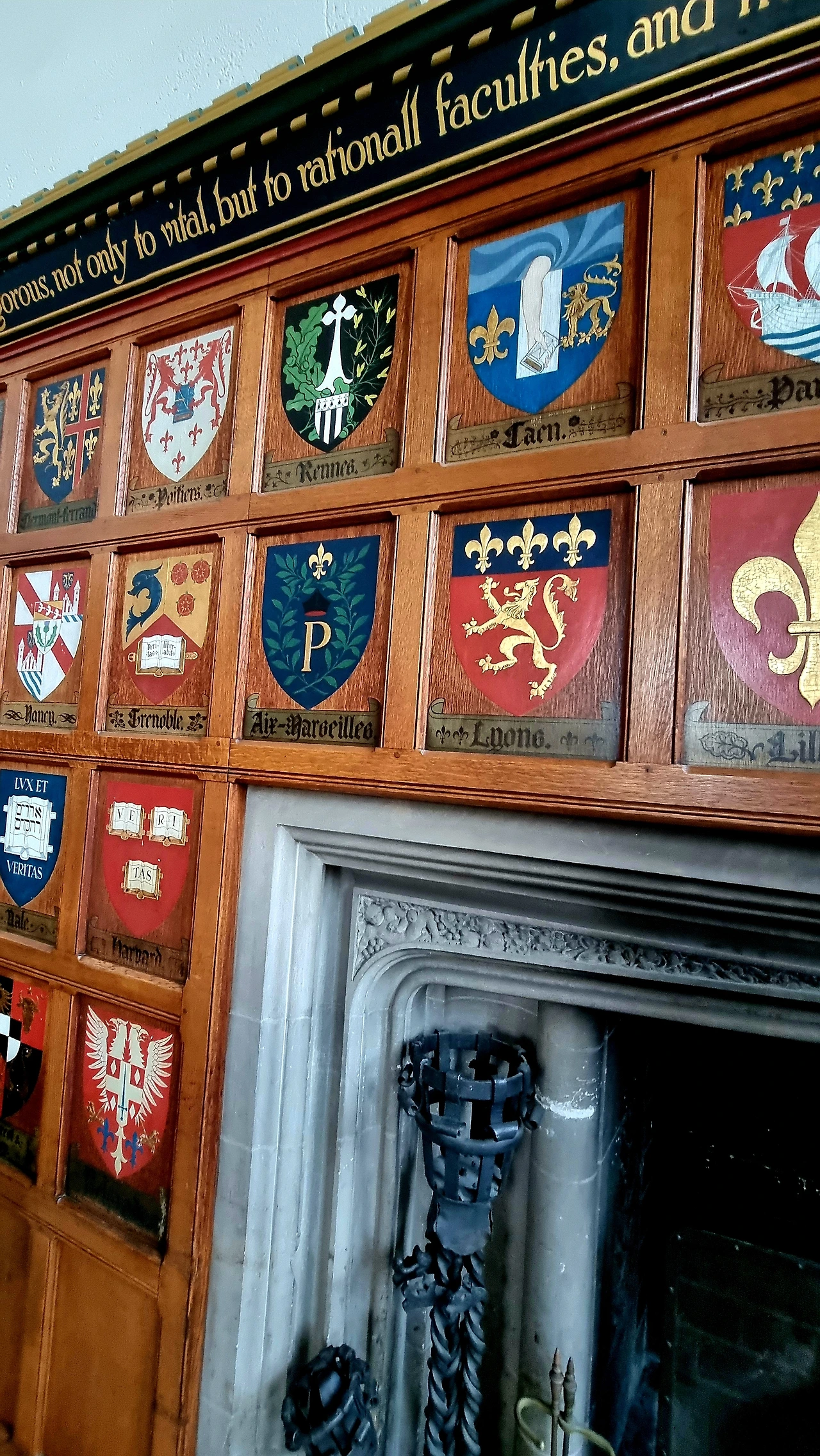 토론토대의 학생회관 격인 Hart House가 보유한 가장 큰 홀인 이곳은 대형 강연회, 컨서트, 웨딩, 연회 등등으로 쓰이는데 난 오늘 일요일 아침 산책중 처음으로 들어와 봤다. 들어서자 마자 난 그 건축적 규모와 아름다운 장엄함에 한동안 멍하니 서있었다. 스테인드 그라스 사이로 아침 햇살이 쏟아지는 한쪽 벽면엔 토론토 대학을 비롯한 캐나다의 모든 대학들의 문장이 그려져 있었고, fire place 가 놓여진 맞은편 벽면엔 유럽과 미국의 모든 대학들의 문장이 그려져 있었다. 이름만 들어도 설레는 그 모든 대학들의 이름이..