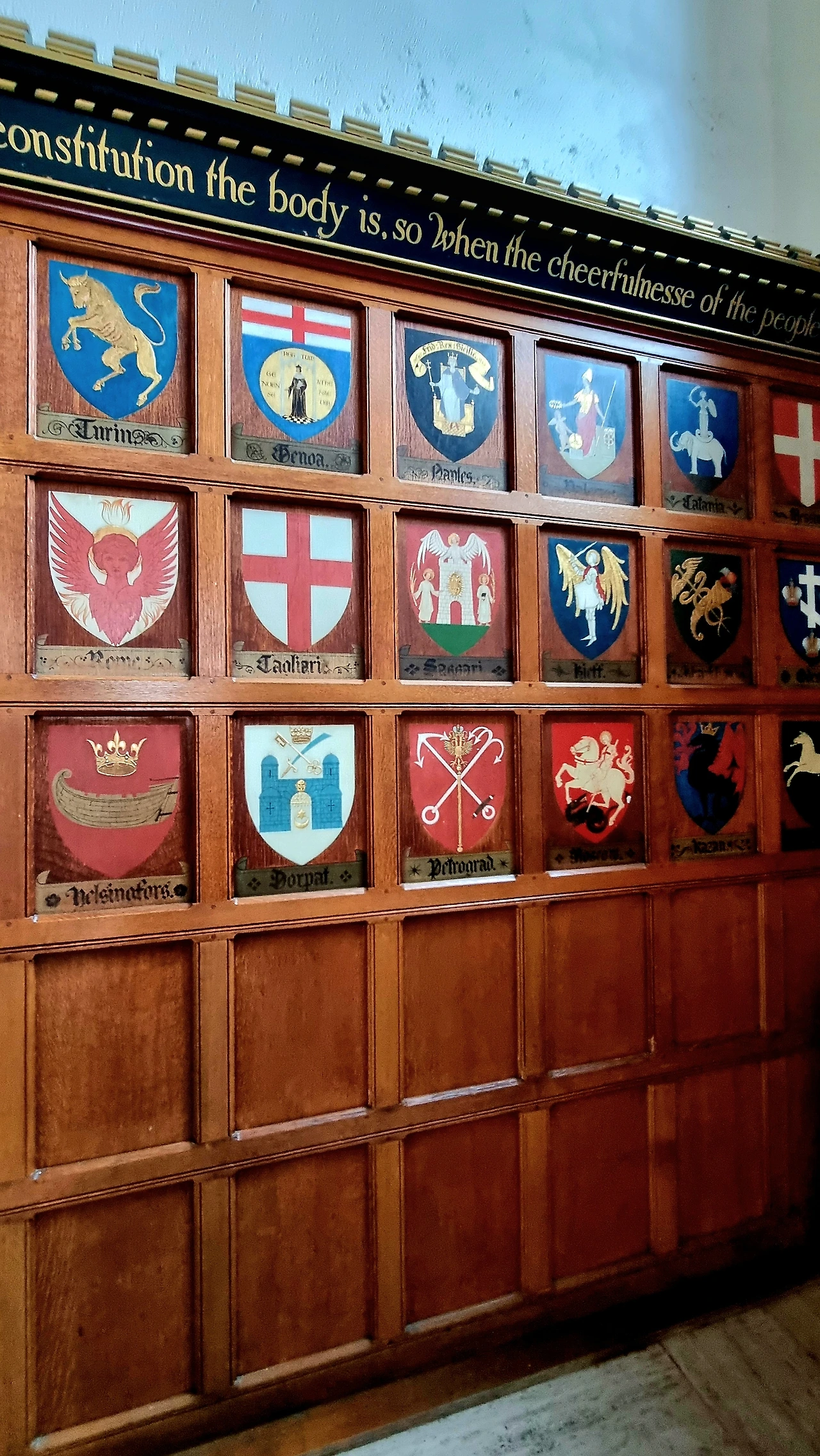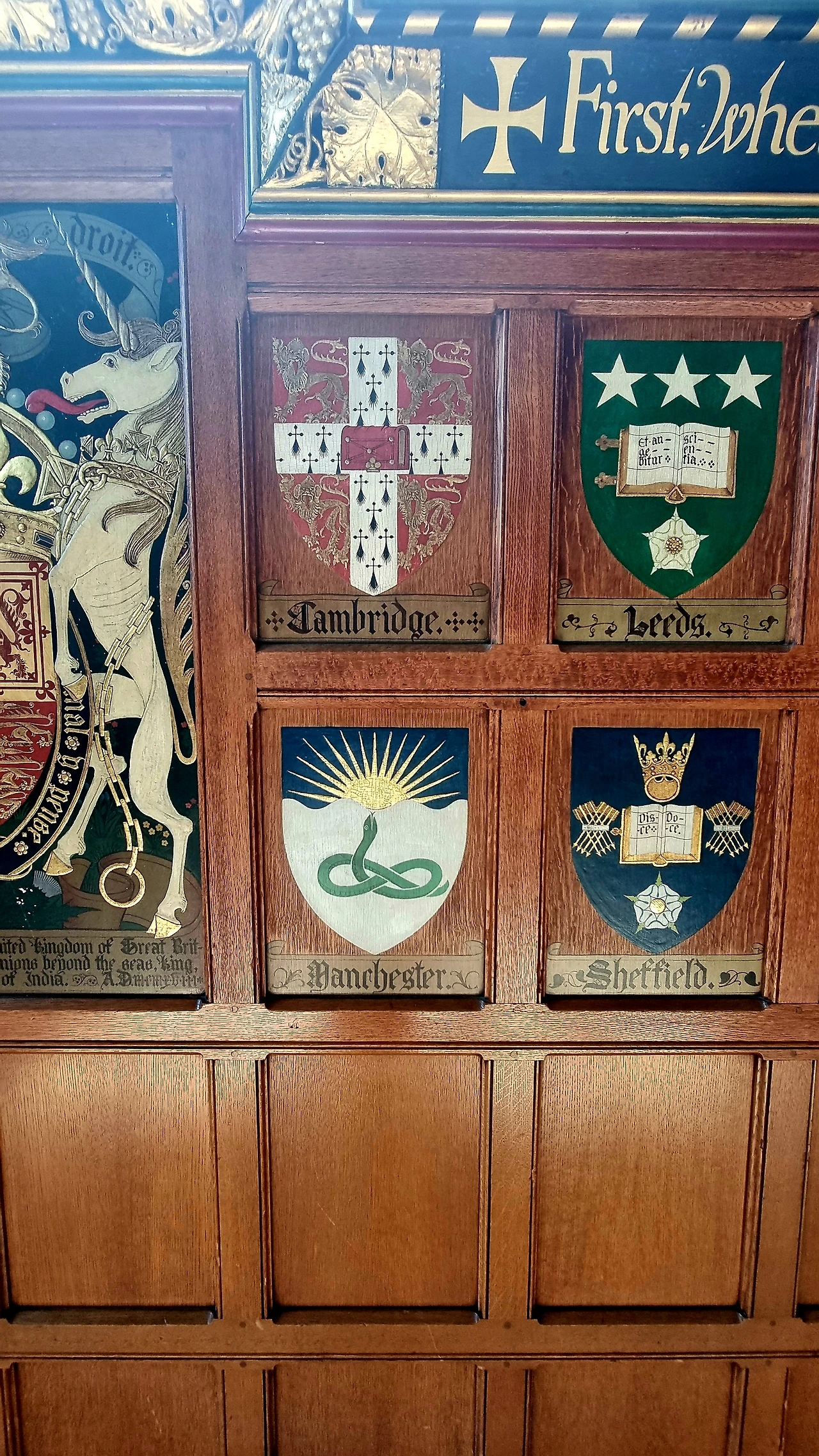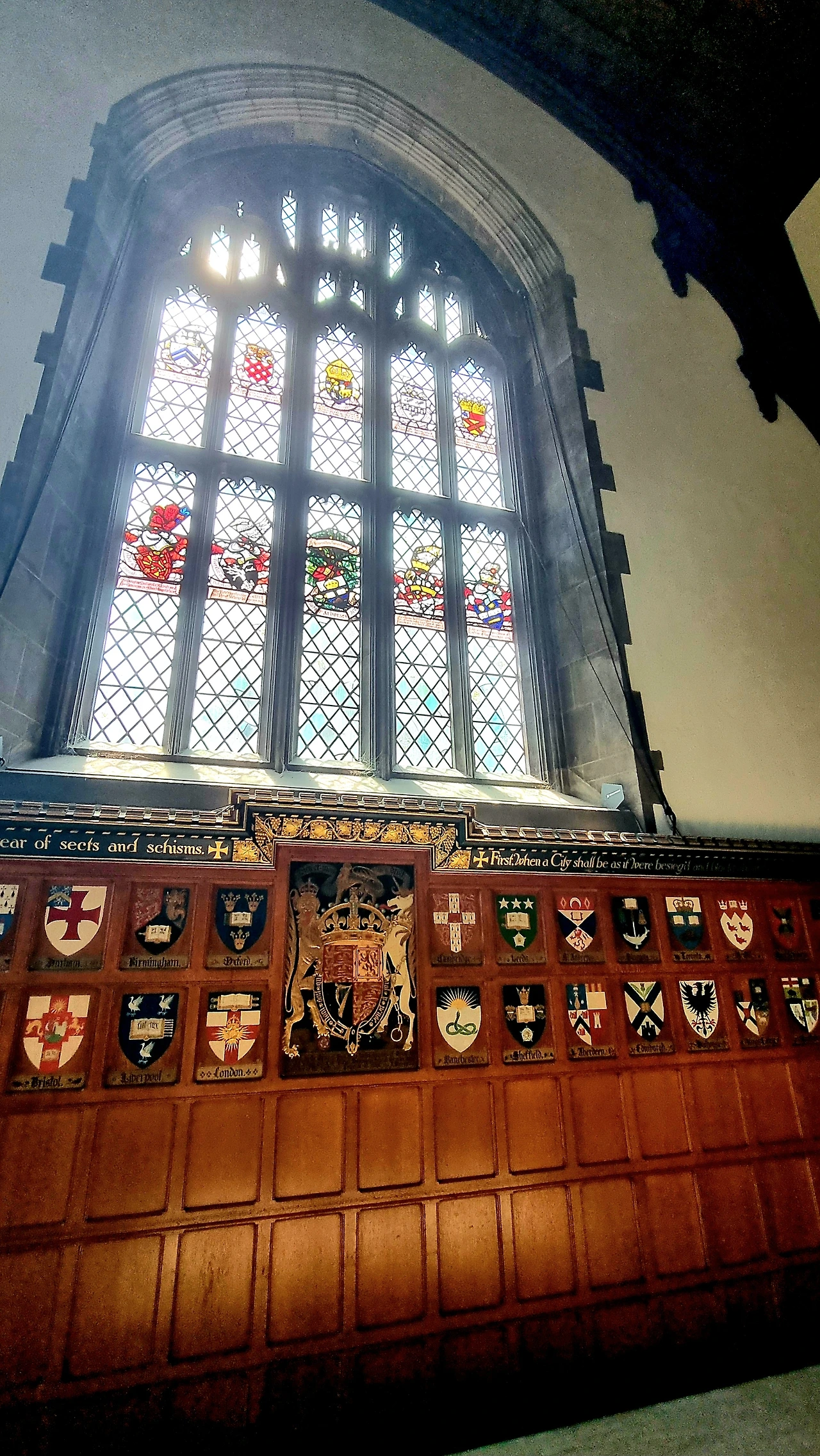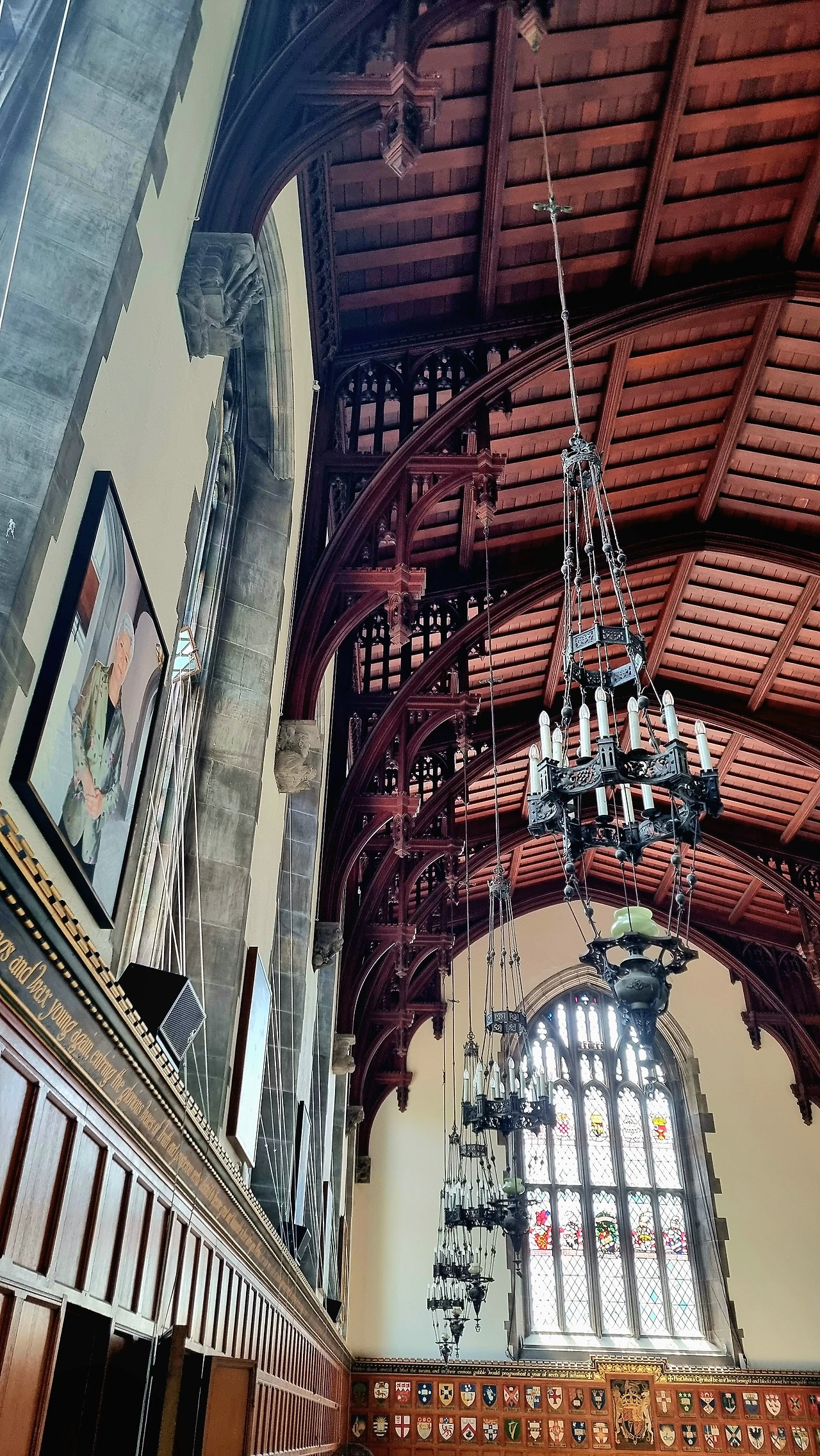 토론토대의 학생회관 격인 Hart House가 보유한 가장 큰 홀인 이곳은 대형 강연회, 컨서트, 웨딩, 연회 등등으로 쓰이는데 난 오늘 일요일 아침 산책중 처음으로 들어와 봤다. 들어서자 마자 난 그 건축적 규모와 아름다운 장엄함에 한동안 멍하니 서있었다. 스테인드 그라스 사이로 아침 햇살이 쏟아지는 한쪽 벽면엔 토론토 대학을 비롯한 캐나다의 모든 대학들의 문장이 그려져 있었고, fire place 가 놓여진 맞은편 벽면엔 유럽과 미국의 모든 대학들의 문장이 그려져 있었다. 이름만 들어도 설레는 그 모든 대학들의 이름이..