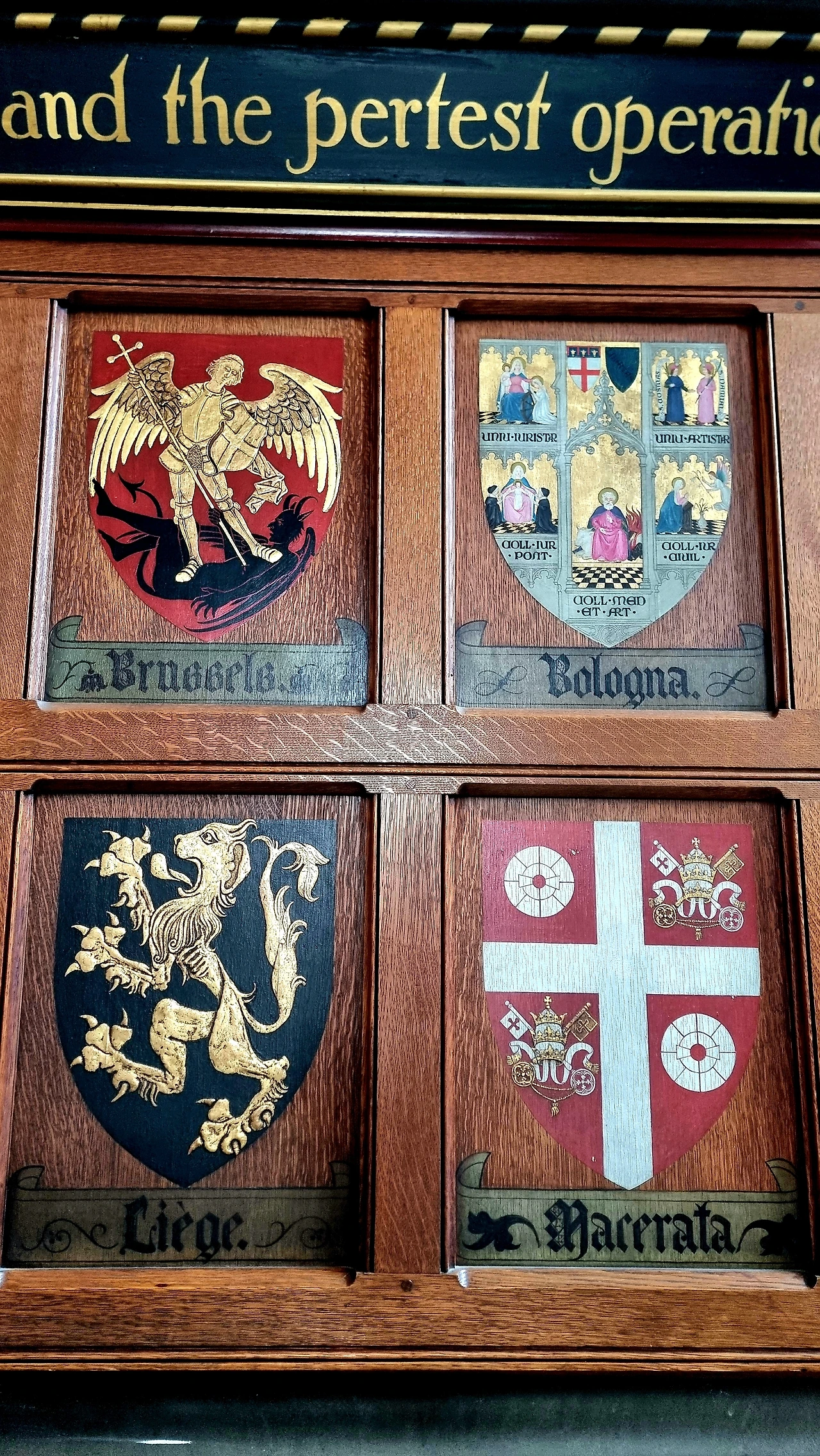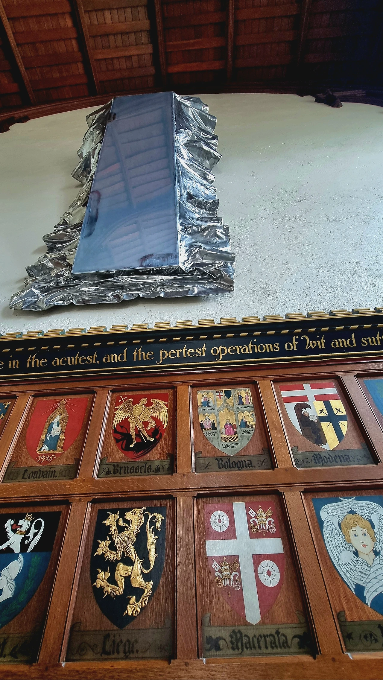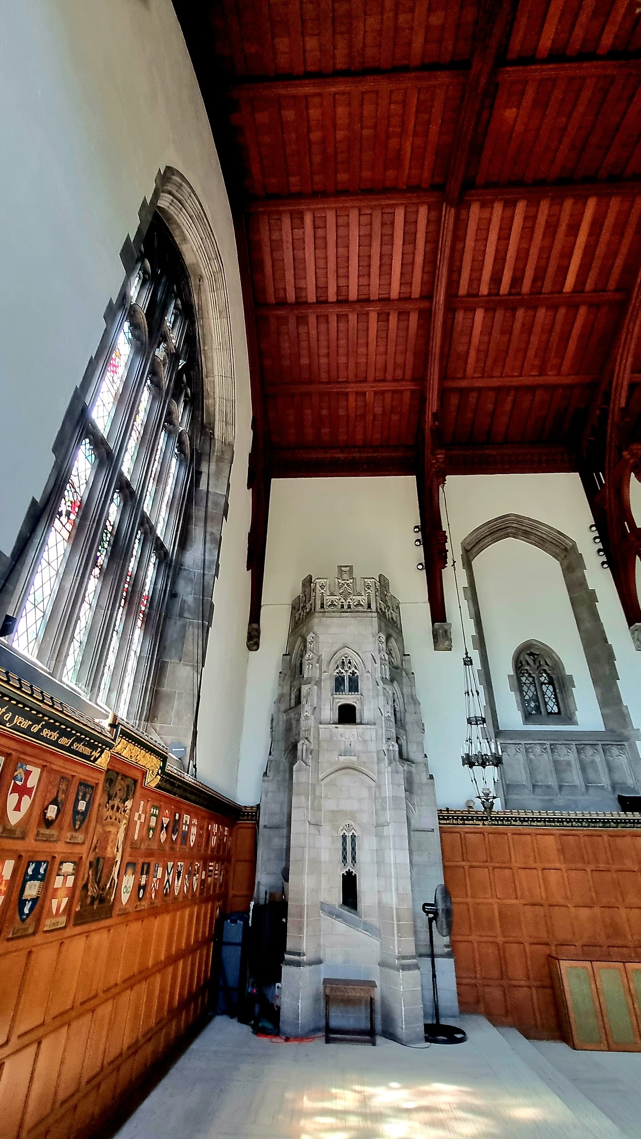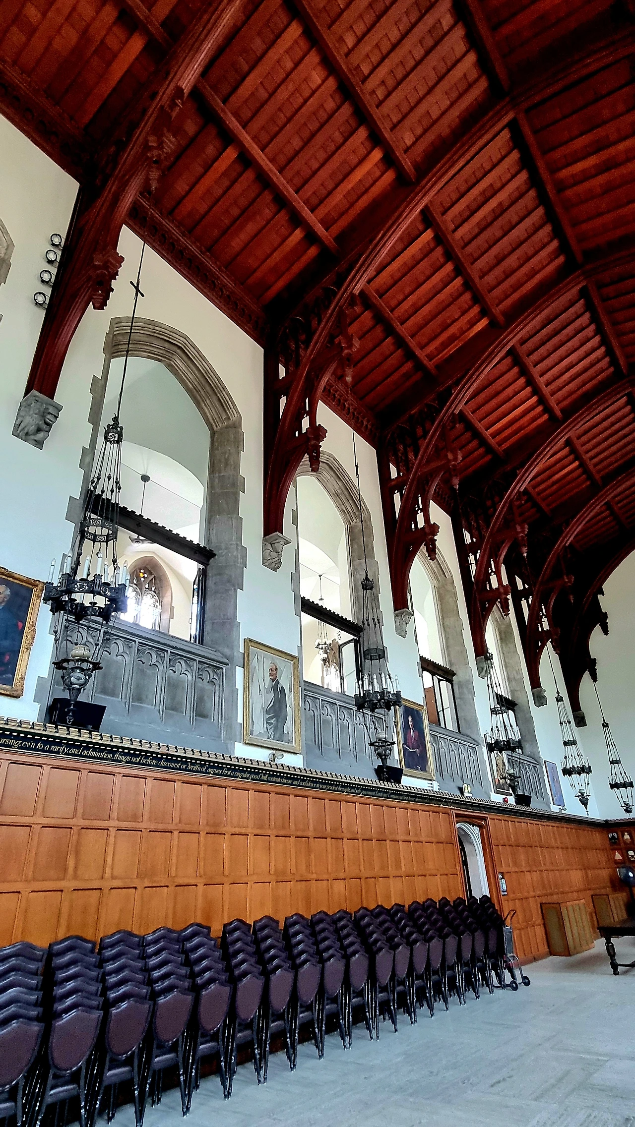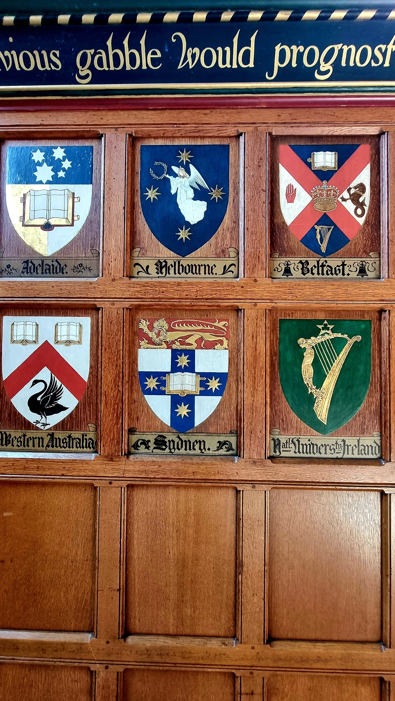 토론토대의 학생회관 격인 Hart House가 보유한 가장 큰 홀인 이곳은 대형 강연회, 컨서트, 웨딩, 연회 등등으로 쓰이는데 난 오늘 일요일 아침 산책중 처음으로 들어와 봤다. 들어서자 마자 난 그 건축적 규모와 아름다운 장엄함에 한동안 멍하니 서있었다. 스테인드 그라스 사이로 아침 햇살이 쏟아지는 한쪽 벽면엔 토론토 대학을 비롯한 캐나다의 모든 대학들의 문장이 그려져 있었고, fire place 가 놓여진 맞은편 벽면엔 유럽과 미국의 모든 대학들의 문장이 그려져 있었다. 이름만 들어도 설레는 그 모든 대학들의 이름이..