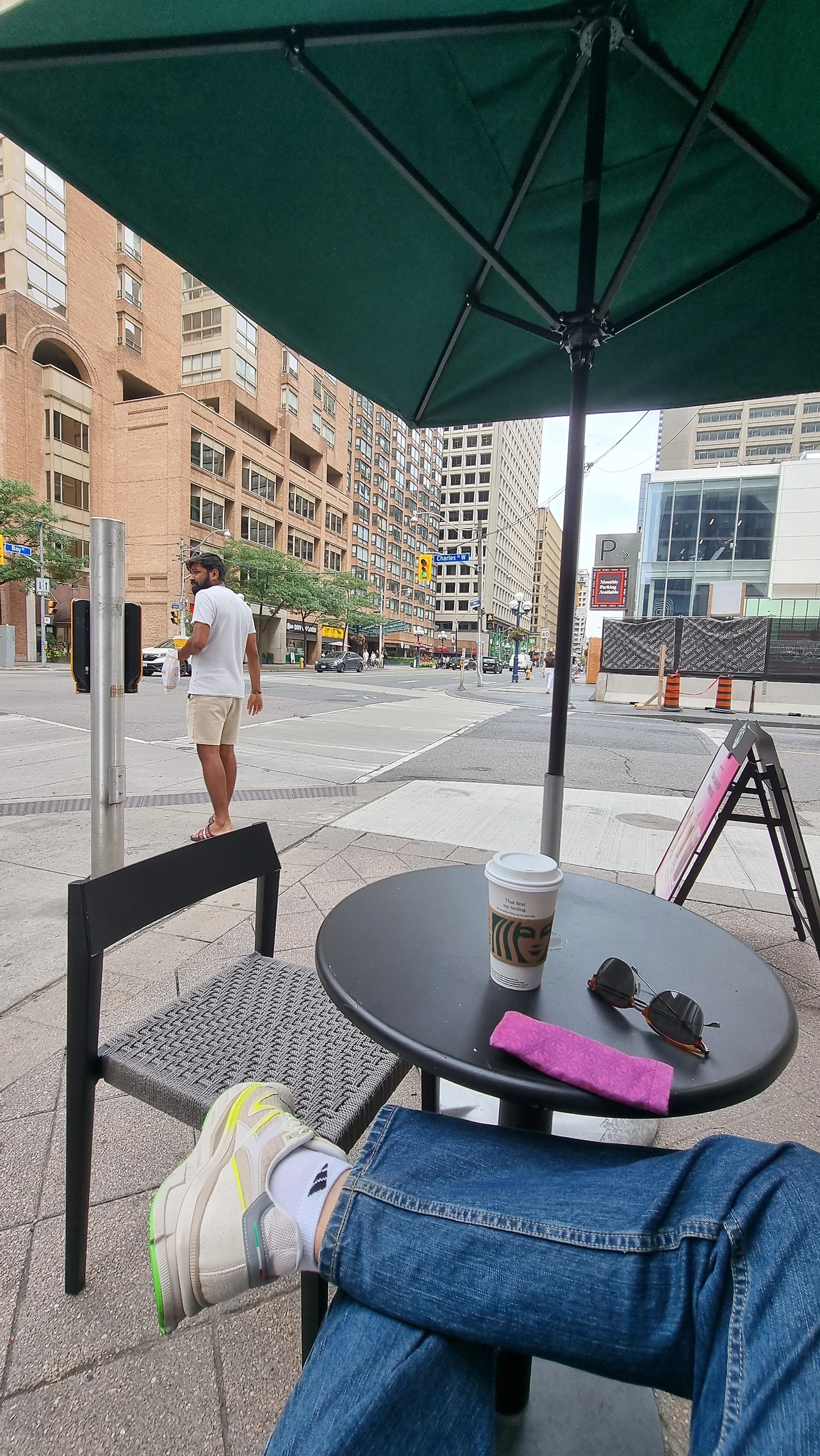 요즘은 직장에서 일을 너무 열심히 해서가 아니고, 연일 쏟아져 나오는 축제에 쫓아다니느라 체력이 고갈되는 듯하다. 제대로 노는 건 항상 힘들다. attention이 full 가동되기 때문에 익숙한 일을 할 때에 비해 에너지가 훨씬 더 많이 소모된다. 아님 밤에 잠을 잘 못 자서 그런가? 요새는 커피를 마시면서 동시에 졸고 있기도 한다. 특히 요즘처럼 나무 밑 벤치에서나, 지금처럼 빌딩 숲아래의 파라솔 아래서 시원한 산들바람이 온몸을 간지럽히는 때는 하던 일을 멈추고 잠시 졸다 깨어난다.
