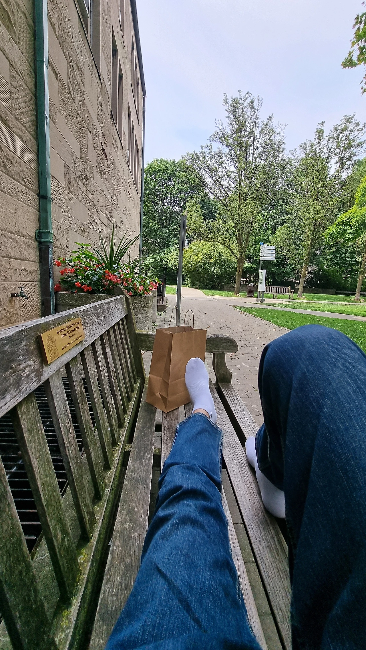 오후 세시가 넘은 지금, 켄싱턴 마켓을 다녀오는 중간 지점인 토론토 대학 캠퍼스 벤치에서 나른한 심신을 달래며 요염하게 거의 누워 있다. ㅋ
