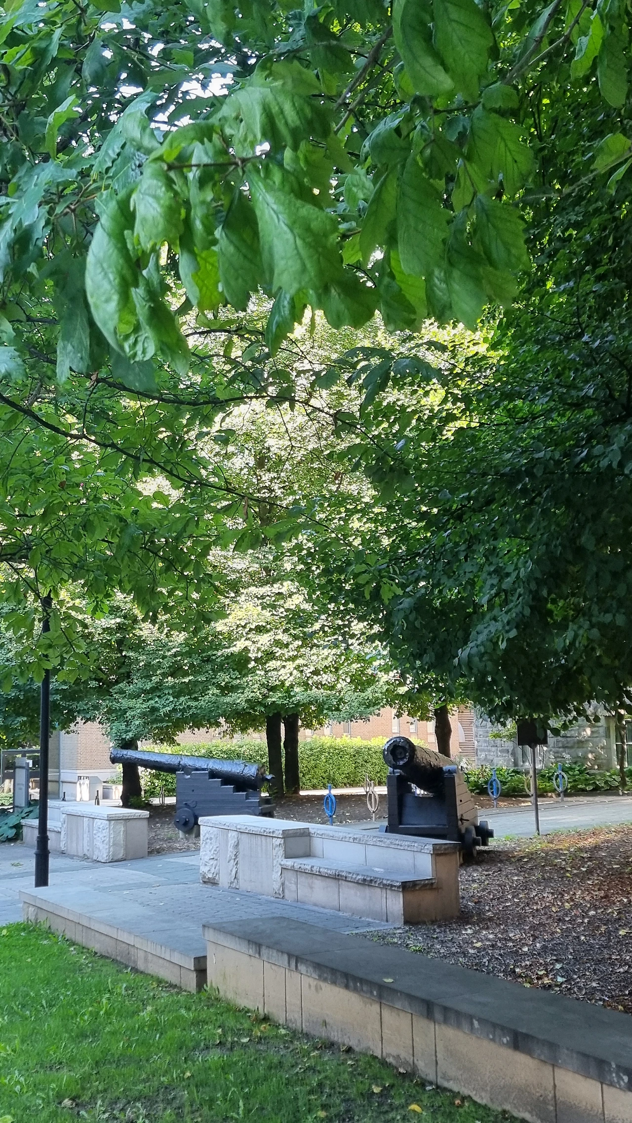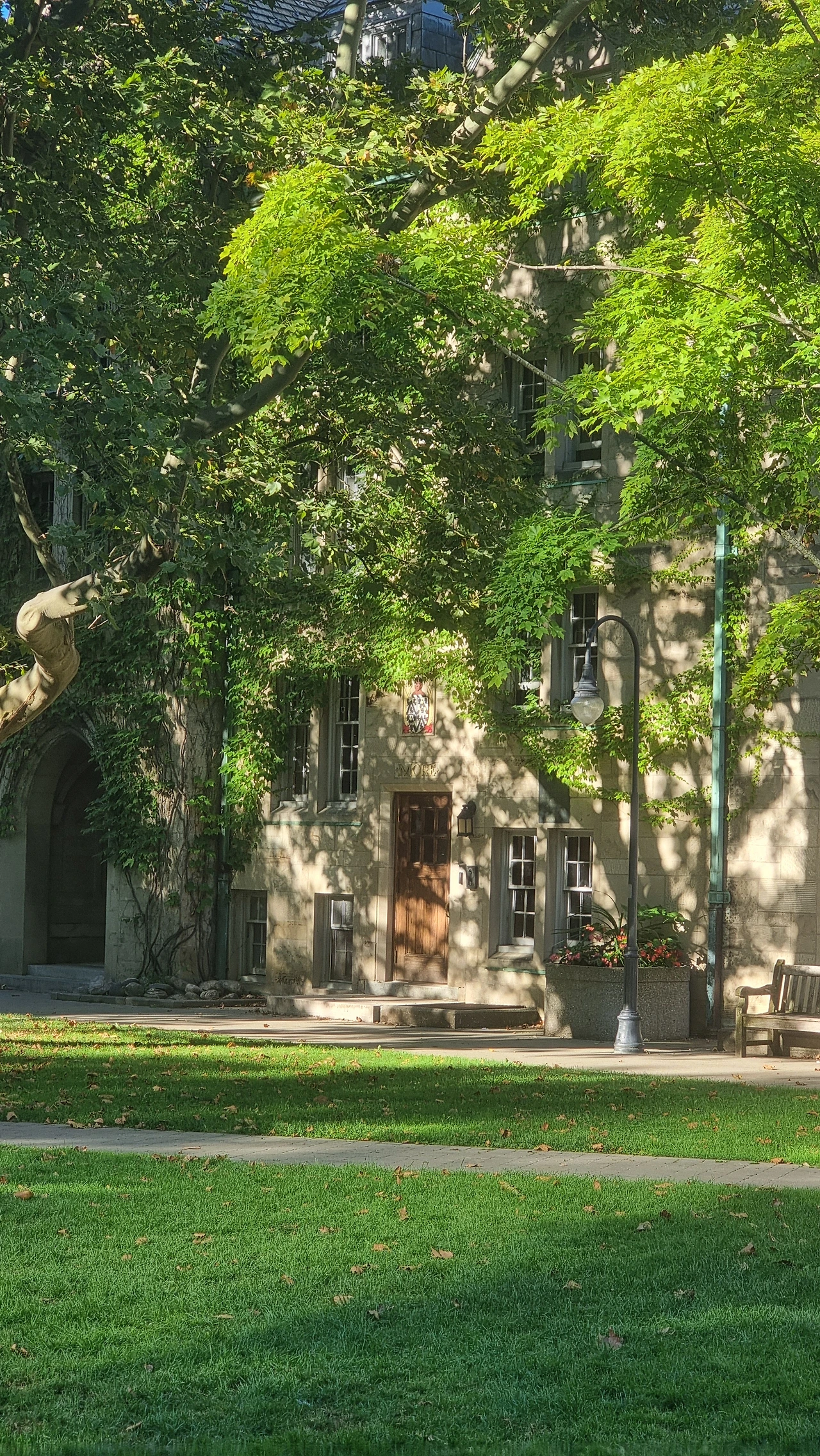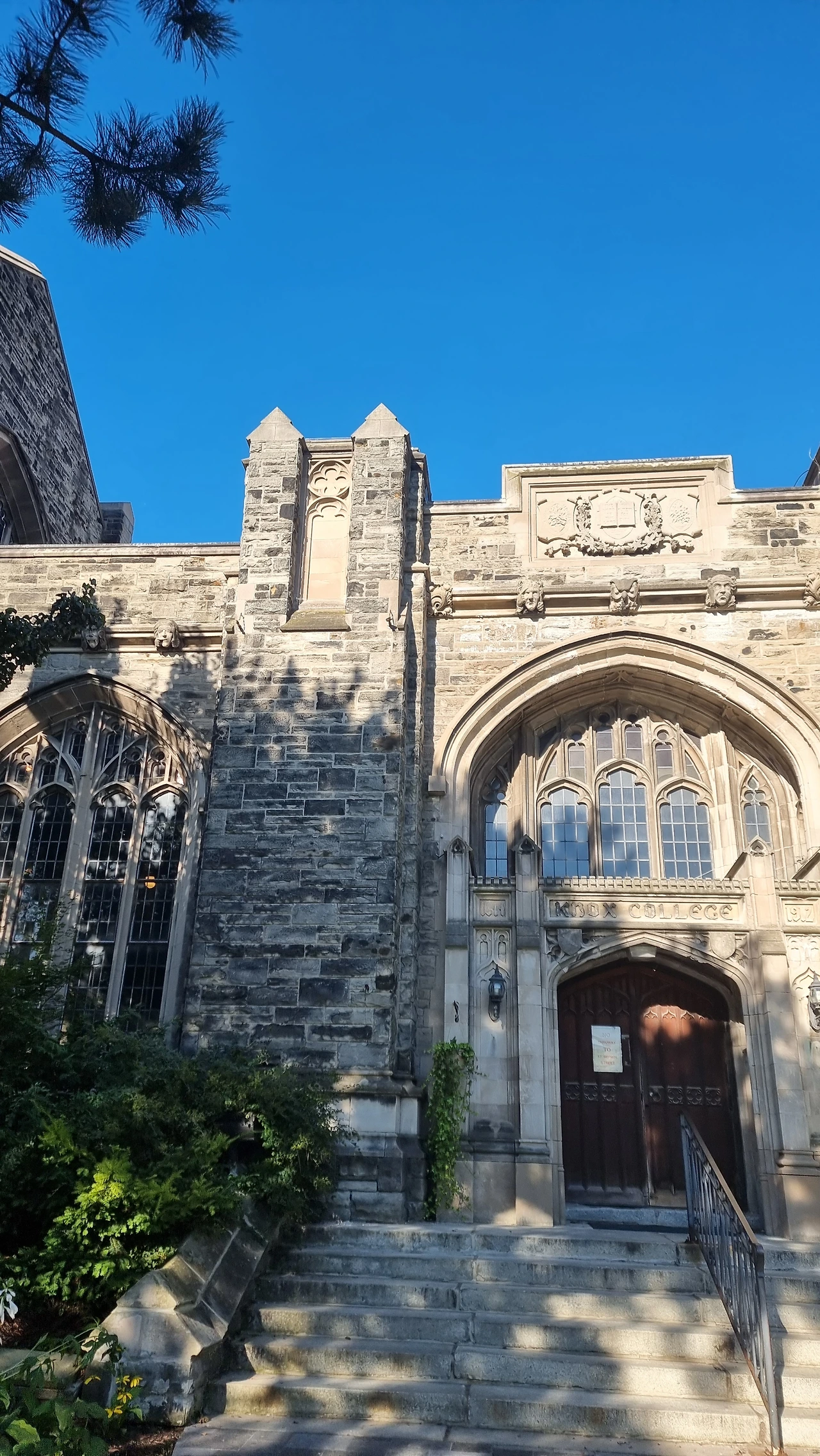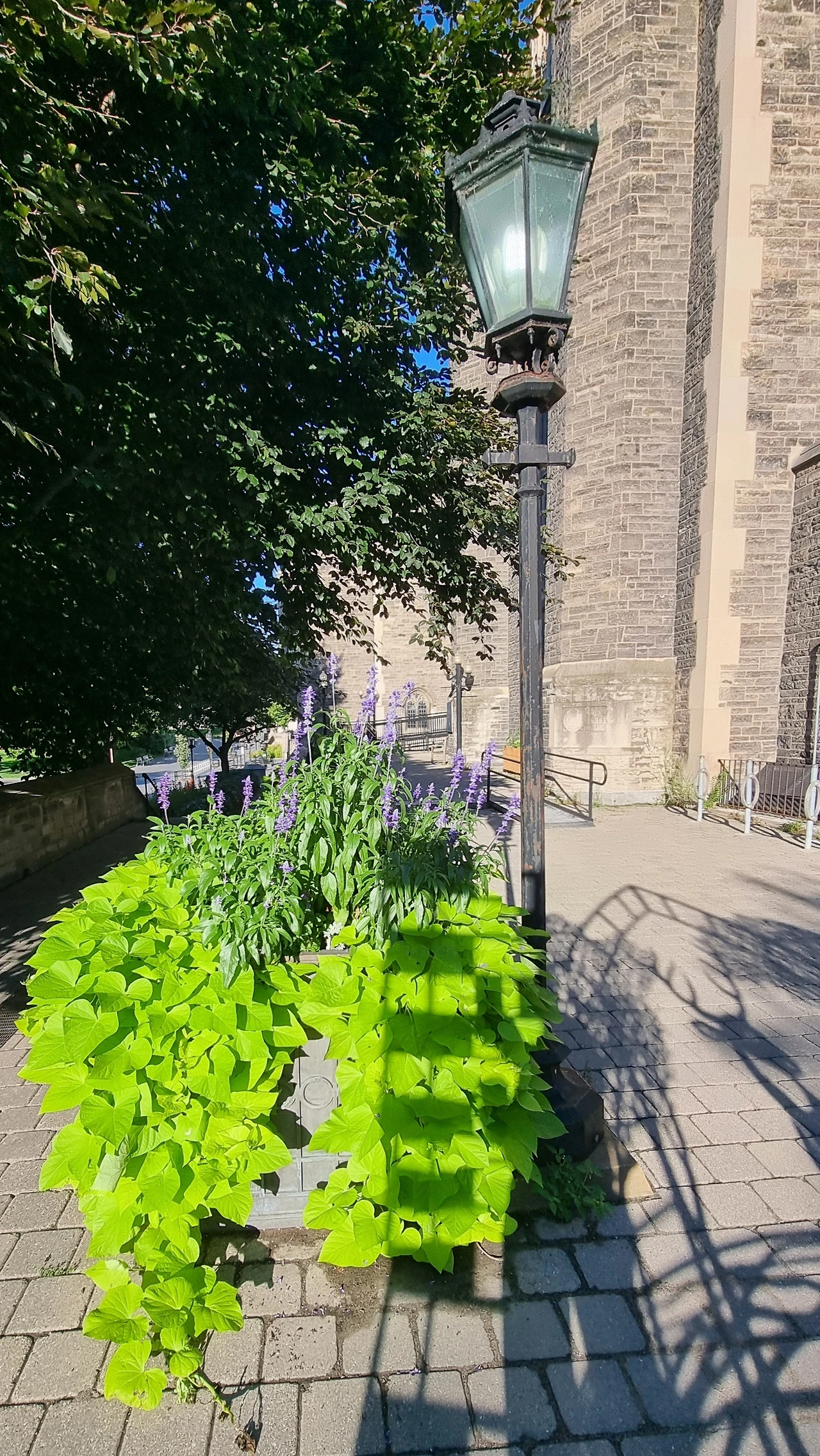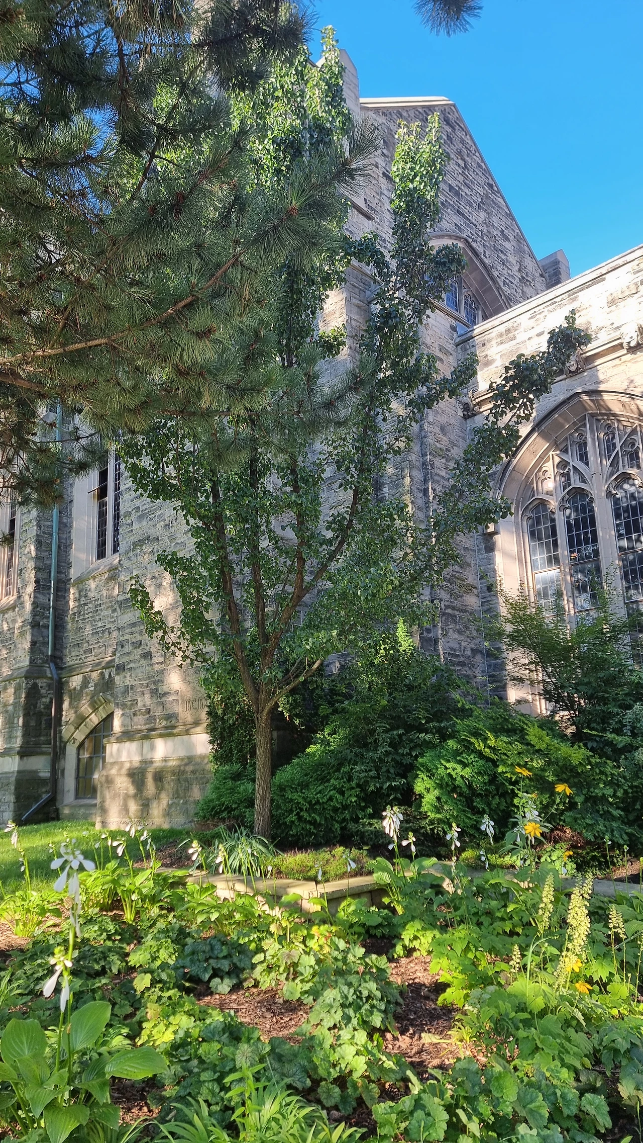 The gentle morning sun illuminates the cross atop the church roof. Thanks to Mother Nature..