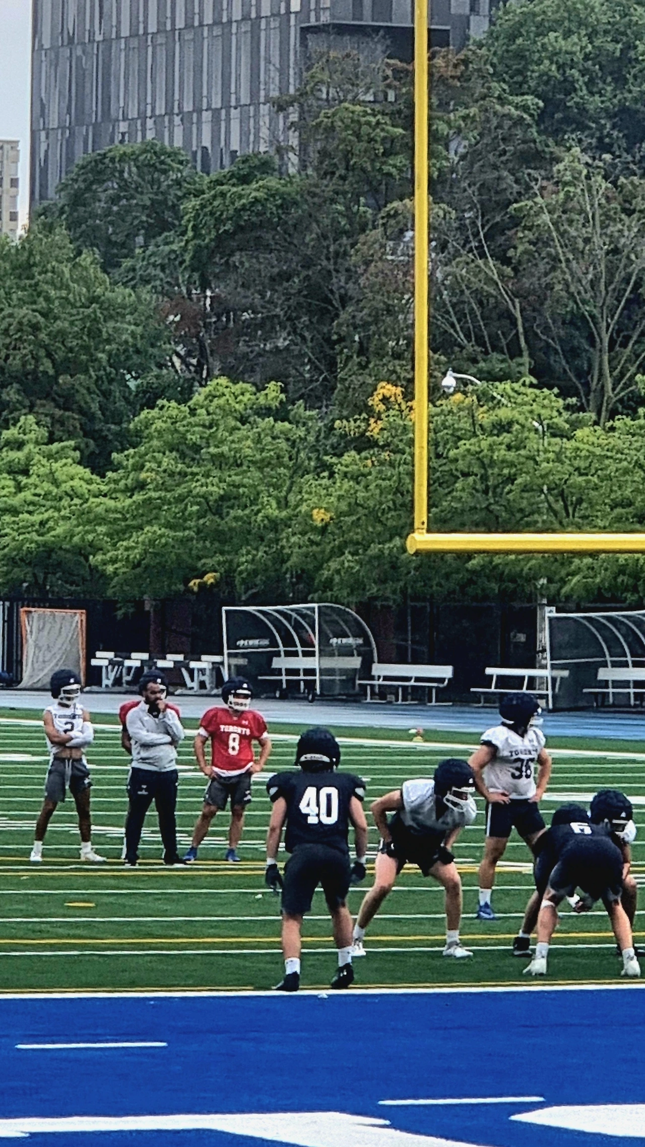 저녁 산책 중 뮤지움옆의 토론토대 육상 트랙과 필드에서는 미식 축구 경기가 거의 끝나가고 있었다. 동호회 사람들인것 같기도 했다. 난 학창시절, 왜 저런 운동등에는 큰 관심을 두지 않았을까. 내가 지나왔던 학창 시절엔 그저 공부, 공부, 공부가 전부였다. 땀흘림을 통한 친구들과의 교감, 자신 내부와의 교감은 공부하느라 흘리던 뇌에서의 땀과는 분명 많이 달랐을텐데.. 더욱 건강하고, 더욱 매력적이고, 더욱 사회성 풍부한 인간 친화적 과정이 있었을텐데.. 이제와서야 운동등에 크게 관심을 두지 않았던 과거의 학창시절이 아쉽기만 하다. 요즘은 많이 달라졌겠지만, 과거 한국에서의 운동은 공부 못하는 학생들이 가져가는 특기 정도였을 뿐이었다. 이곳 캐나다나 미국등에선 운동 제데로 안하고 공부만 하는 학생들은 거의 좀 모자라는 부류로 취급된다. 크게 나쁜 의미는 아니지만.. 이곳에서는 아직도 동양계 학생들은 두꺼운 안경을 쓰고 주로 공부만 하는 부류로 남아있다. 운동을 통해 보다 건강한, 보다 균형잡힌, 그리고 보다 사회성 높은 삶을 추구하기보다는 기능적 지식에 근거한 정형화되고 안정된 삶에 더 의미를 두는 사농공상의 지배계층적 유교 철학의 관성이 아직 남아있어 그런게 아닌가 싶다.
