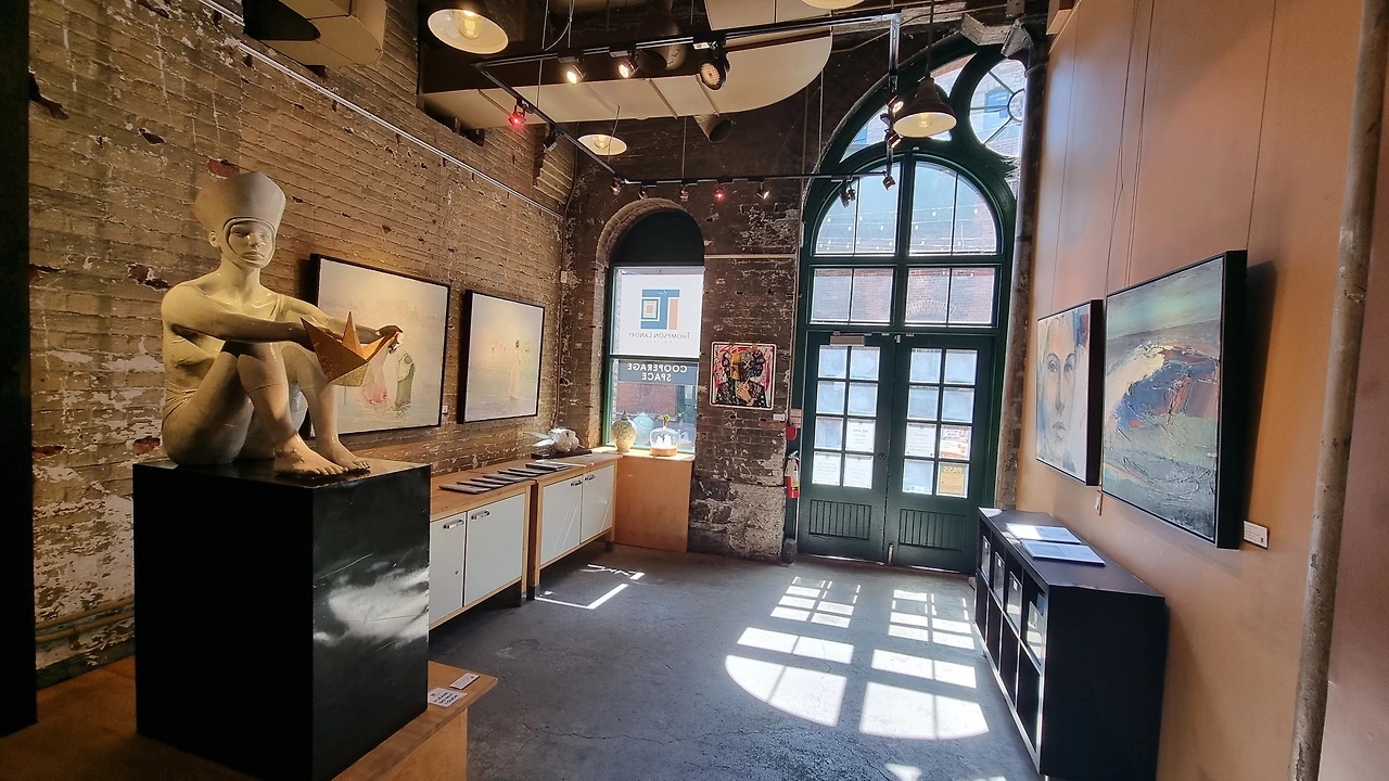난 이곳 톰슨 랜드리 갤러리의 정교하면서도 우아했던 과거 레이아웃이 너무 마음에 들었었는데 이젠 좀 미로같이 복잡해 졌다. 아마도 가능한 많은 작품을 전시하려는 의도인듯 했지만 still 오랫동안 작품을 감상할수 있는 푹신한 소파들도 곳곳의 구석에 있고, 토론토의 밝디 밝은 햇살이 쏟아져 들어오는 큰 창문들이 여전해 좋았다. 이곳은 백여년전도 넘게 위스키등을 만들어 내던 대형 양조장(Distillery District) 이었다. 지금은 historic site 로 지정되어 건물들이 보호 관리되며 여러 갤러리들과 맥주 or 사케 블루어리, 각종 디자인 샵, soap shop, 빈티지 샵, high end restaurant, pub, 그리고 내가 지금 이글을 쓰고 있은 유서깊은 발작 카페(Cafe Balzac)가 들어서 있다.