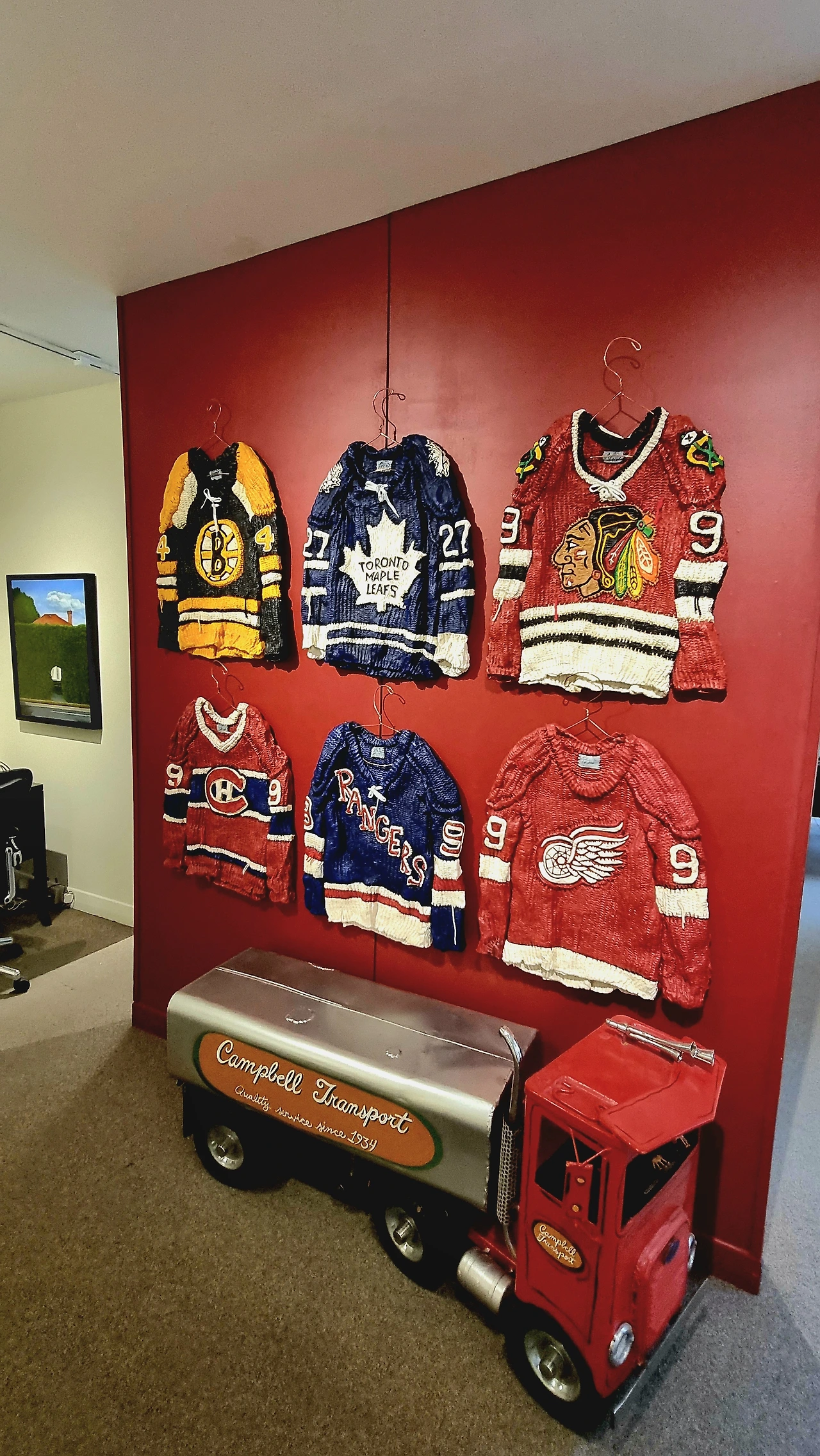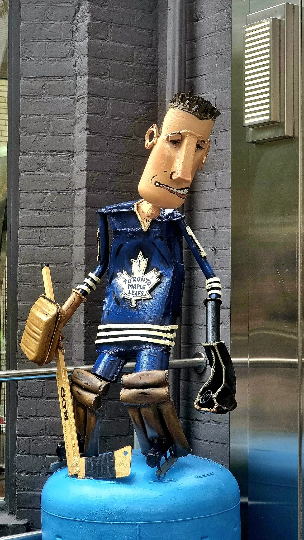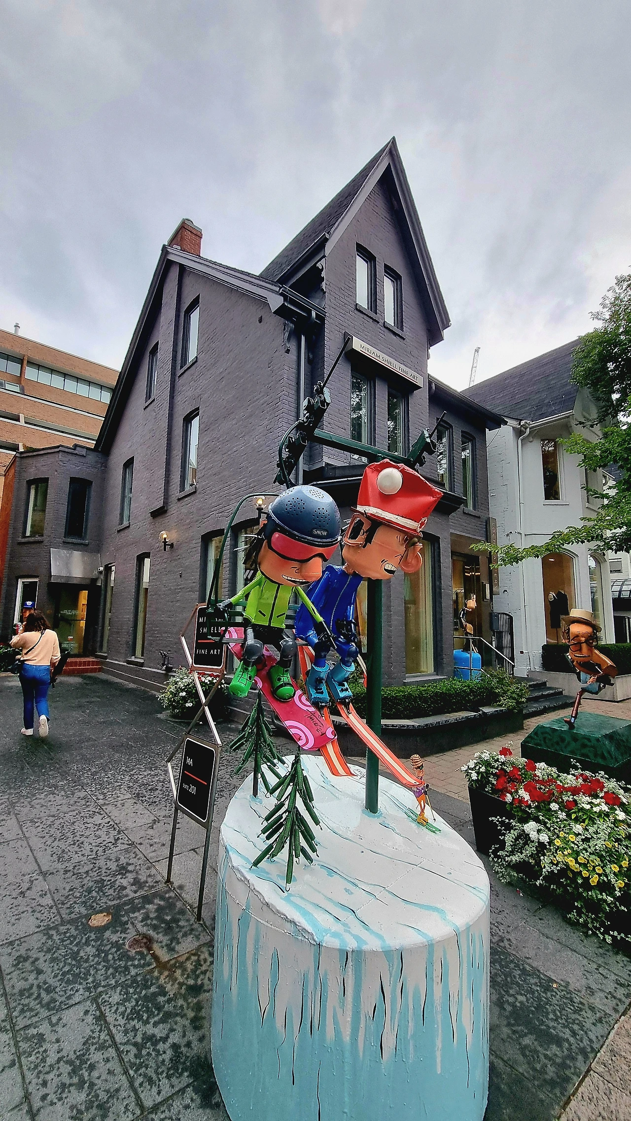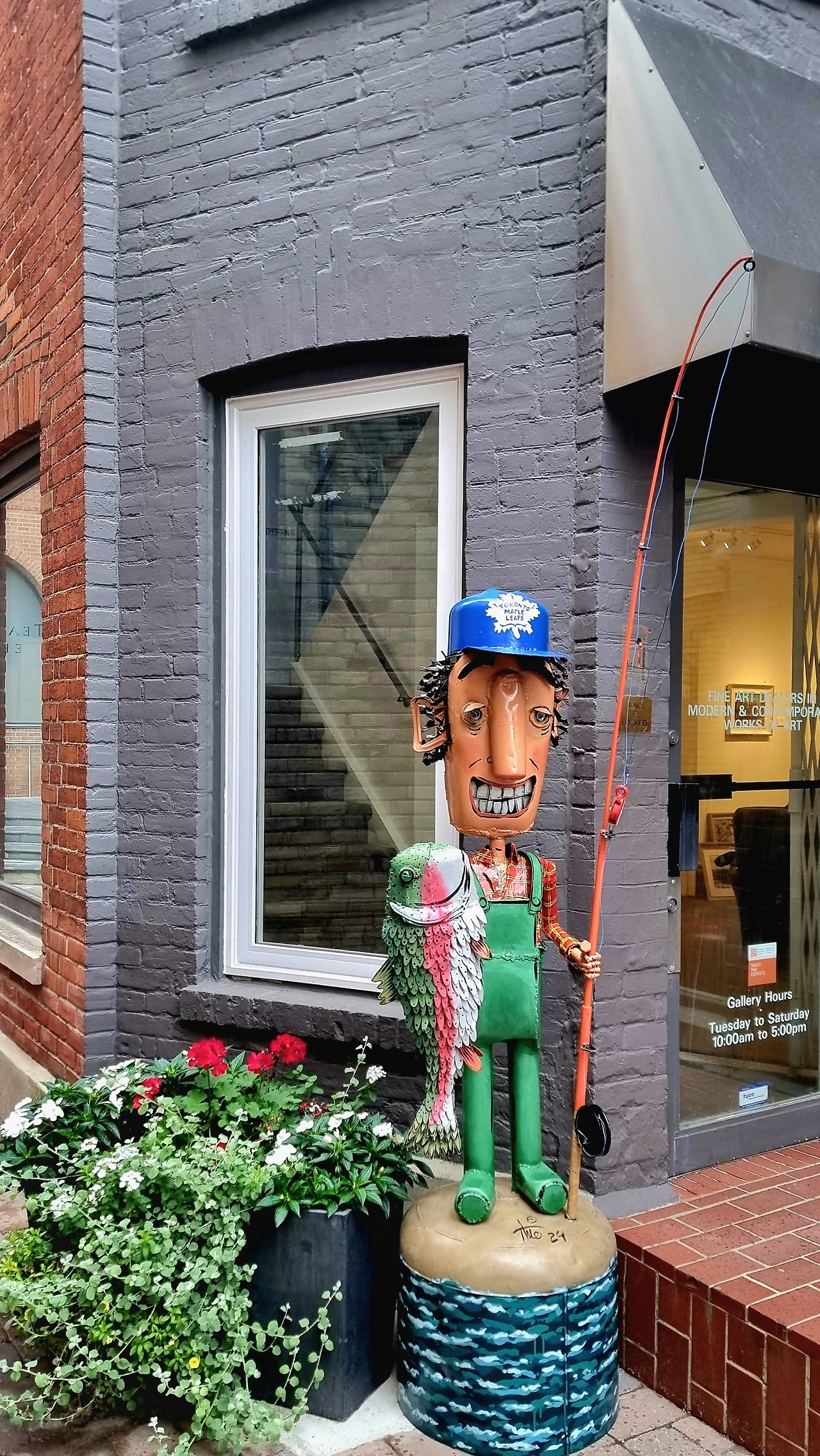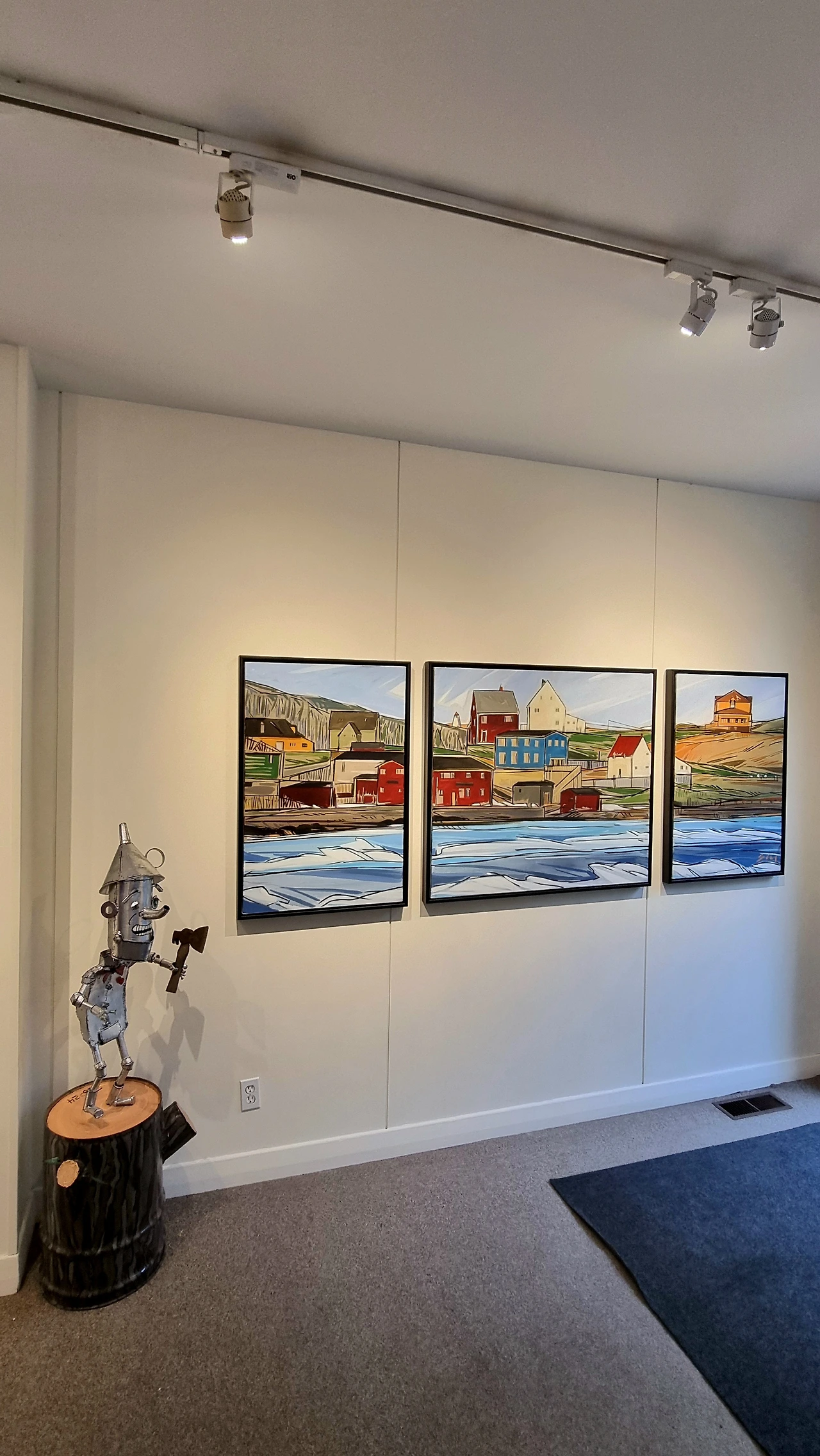 The space is dominated by the vibrant and humoresque sculptures of Patrick Amiot, a Quebec-born artist now residing in California. Amiot’s works, fashioned from steel or tin salvaged from junkyards or even landfills, stand out with their whimsical, larger-than-life characters. Each sculpture tells its own story, brought to life not only by Amiot’s masterful hands but also by the vivid colors and details added by his wife, who paints his creations.