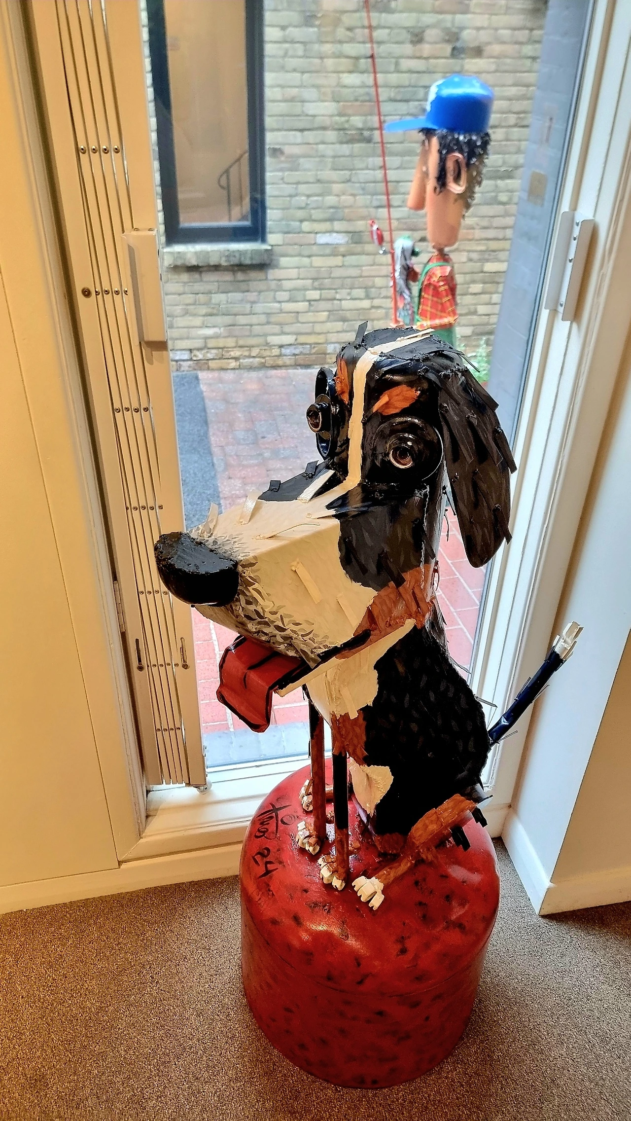 As you walk through the gallery, the atmosphere is lively and engaging, infused with a sense of humor that contrasts beautifully with the elegant simplicity of the space. The hall's layout allows for an intimate interaction with Amiot’s sculptures, drawing you into the world he has crafted from discarded materials.