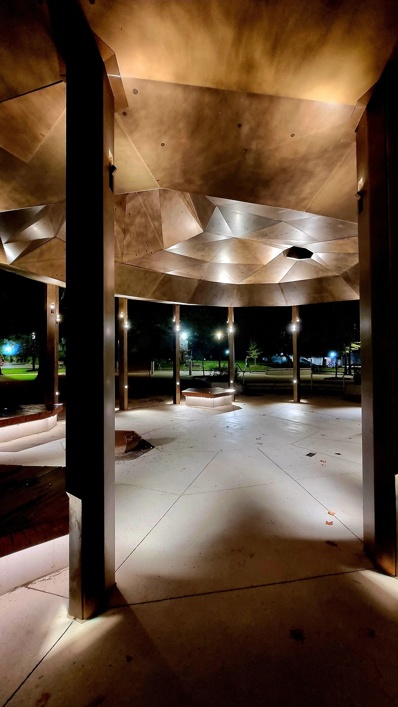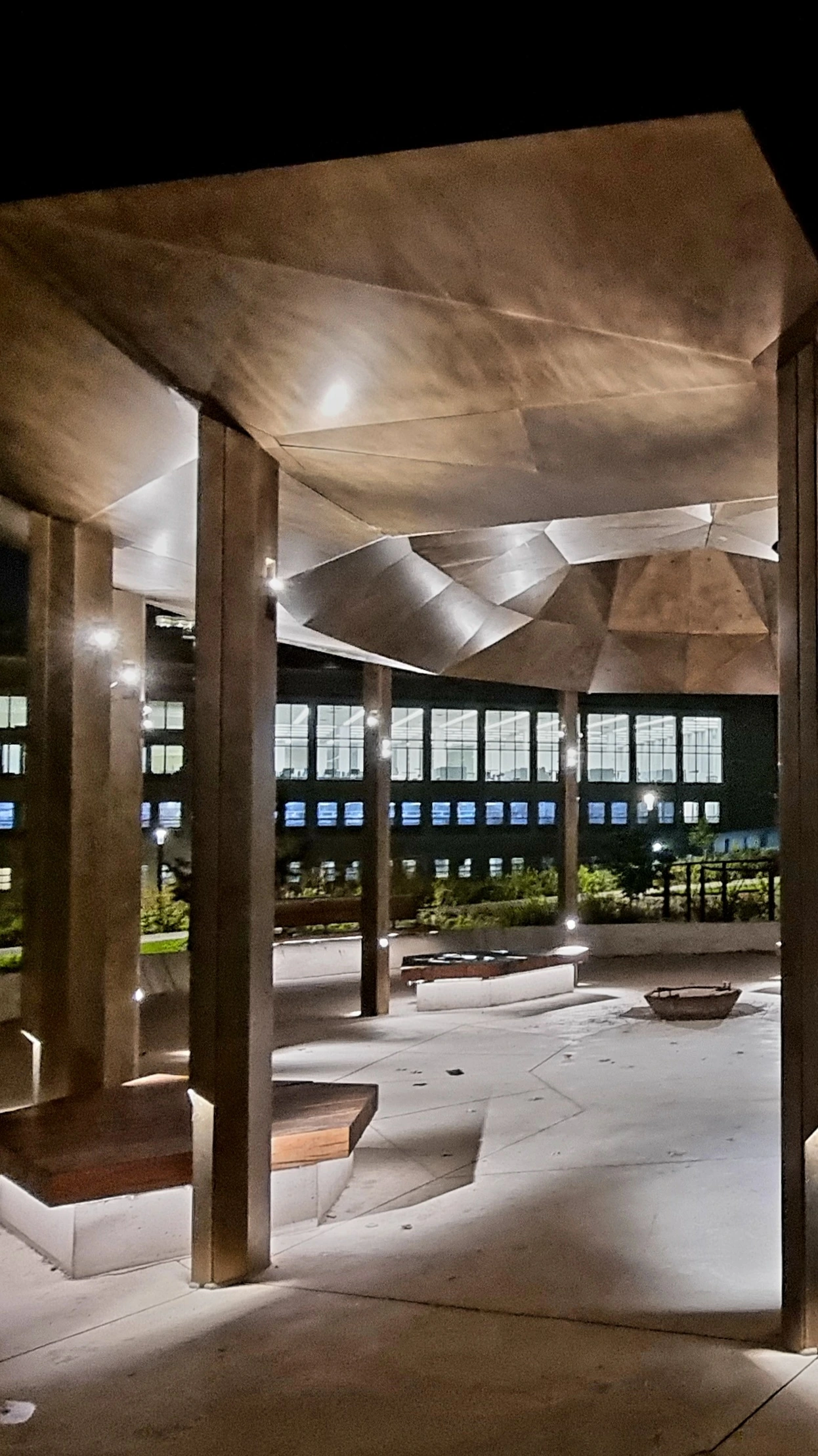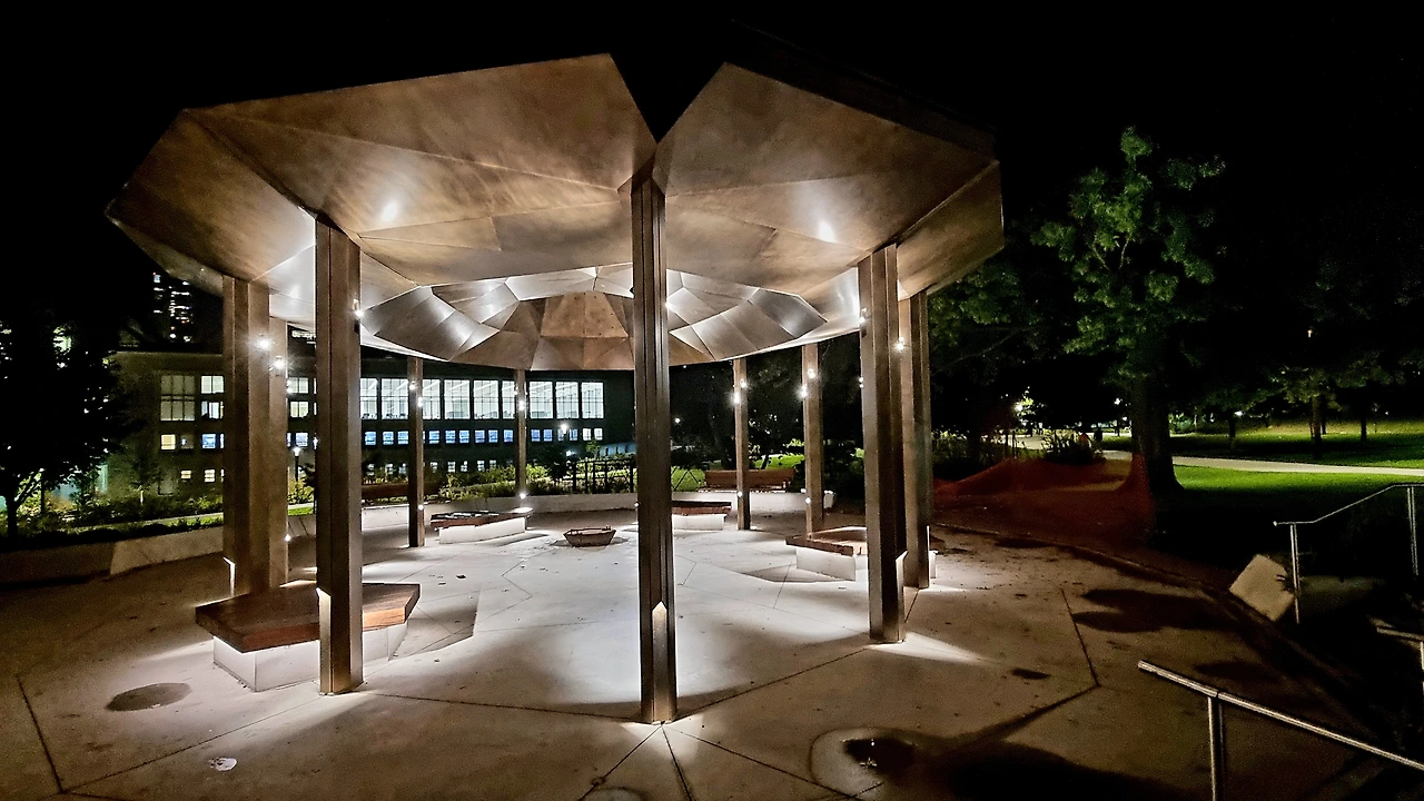난 이곳 캠퍼스가 내 산책 중 거의 매일 지나는 곳이라 건축 process 를 누구보다 잘 알고 있었다. 지난 겨울부터 지어지기 시작한 이 건축물이 그저 전형적인 안정적 기하학적 계산에 따라 육각, 팔각, 혹은 원형등의 지붕에 볼품없는 두께의 기둥들이 늘어선 천편일률적 휴식 공간 일것이라 생각했지만 내 생각은 완전히 잘못된 것이었다. 난 토론토 대학의 안목을 제대로 파악하지 못하고 있었건 거다. ㅎ