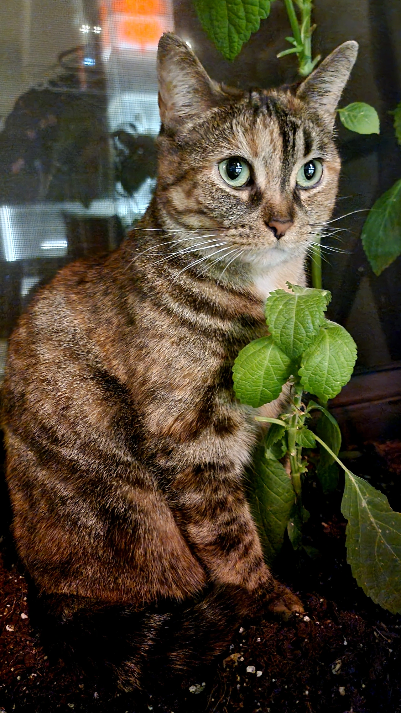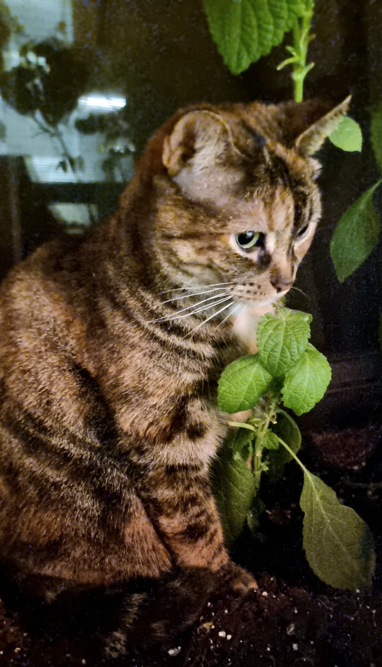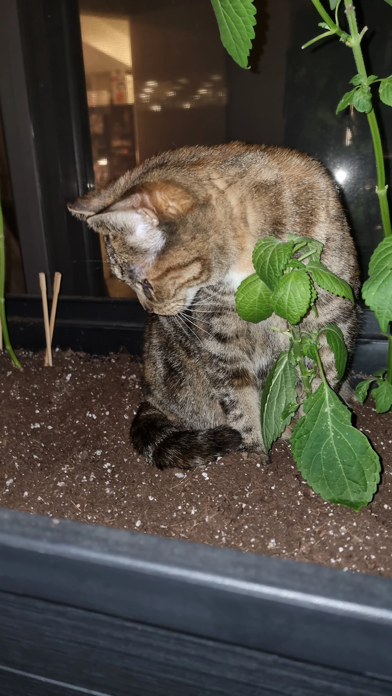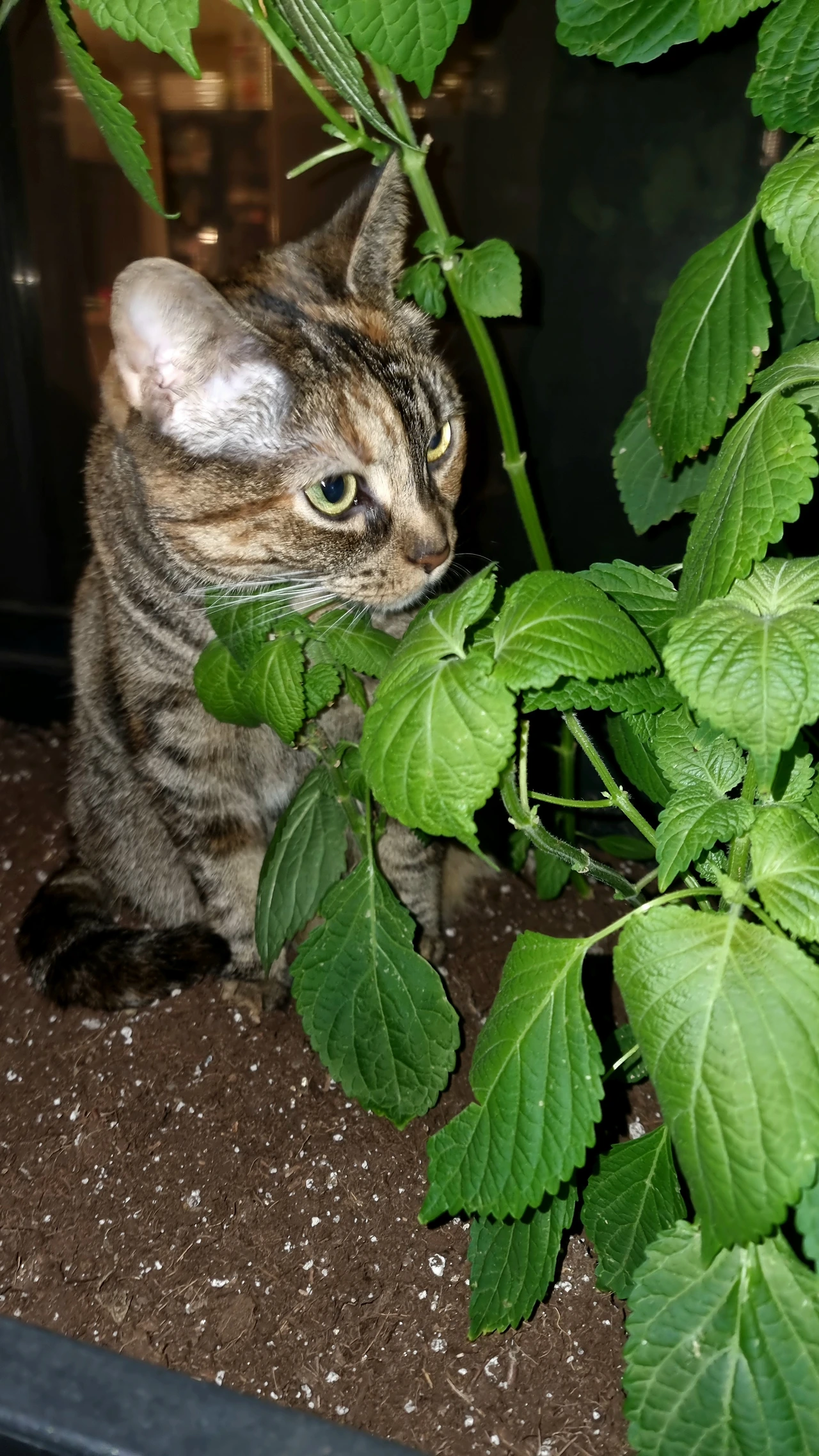 베란다에서 키우는 깻잎과 노는 싸미 펠리니. 싸미는 호박잎과 황금색 호박꽃이 좋아 여름 내내 따 먹었었는데 깻잎은 향이 강해 먹지는 않는다. 하지만 코를 대고 향기는 즐긴다. 녀석을 통해 난 무조건적인 사랑을 배운다. 감사해 싸미야..