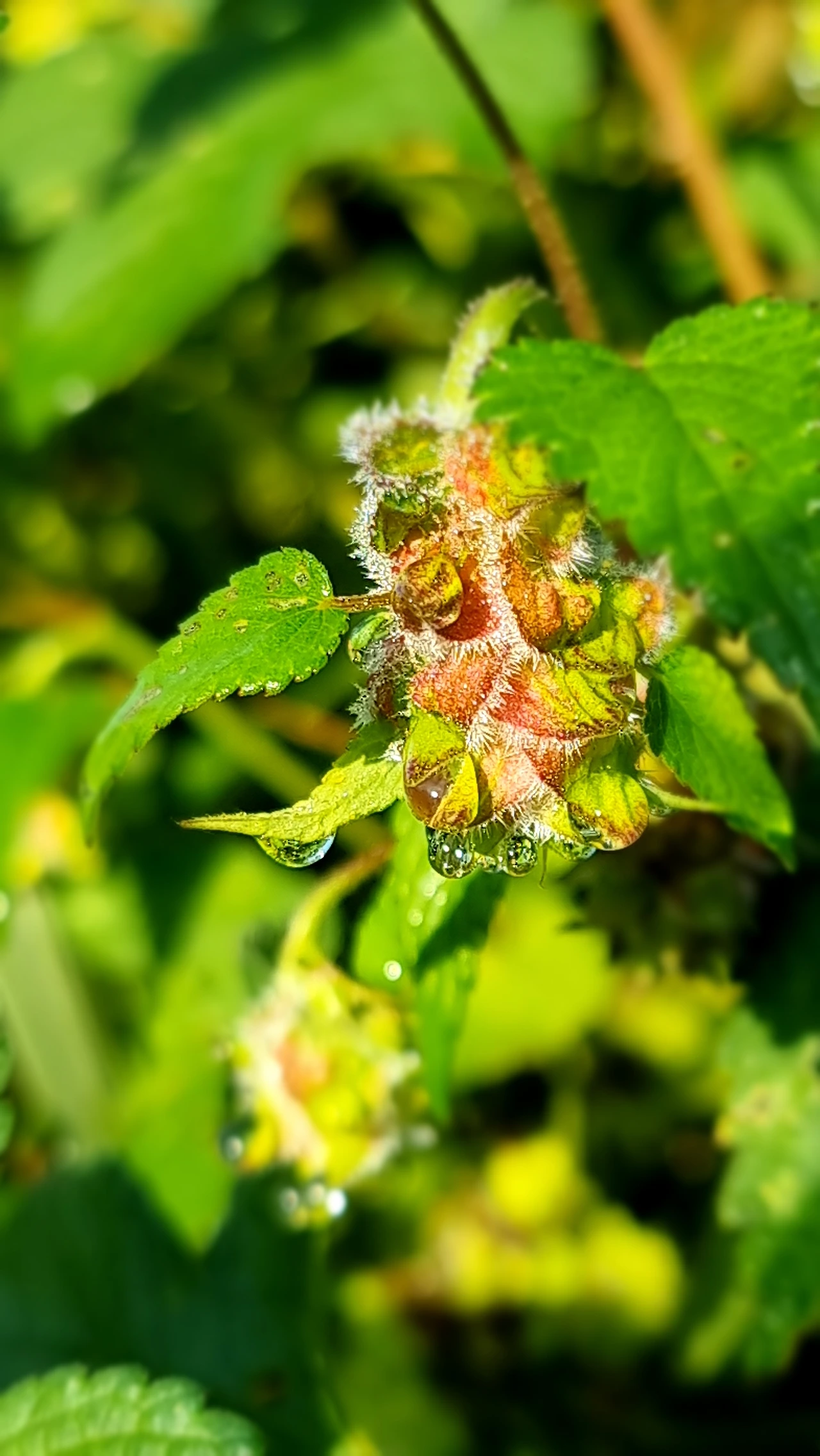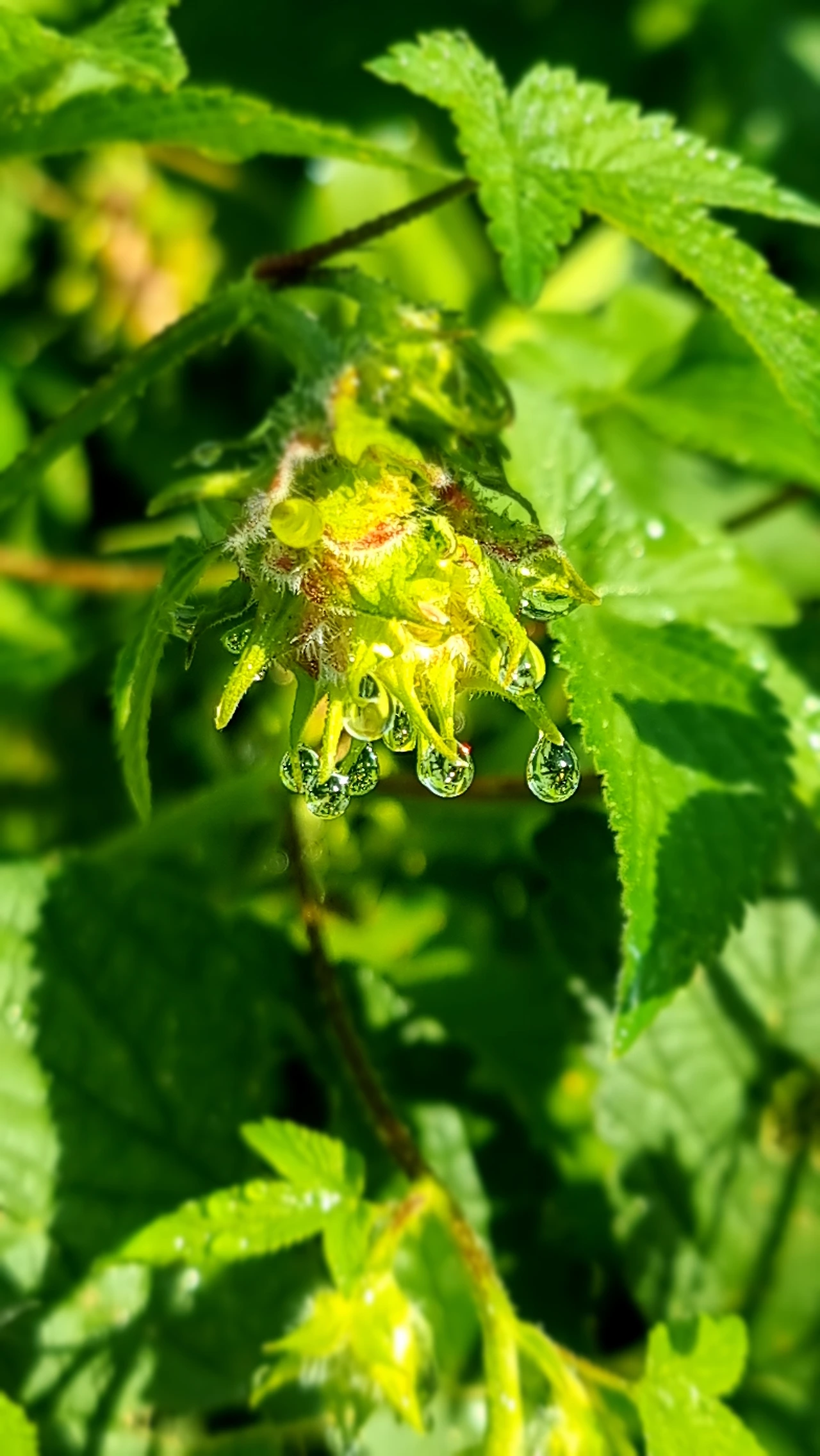 The dew drops were so tiny that I only noticed them after capturing the photo and zooming in. To my surprise, they had formed a perfect crown around the flower bud, appearing as if out of nowhere, a delicate masterpiece revealed in the morning light.