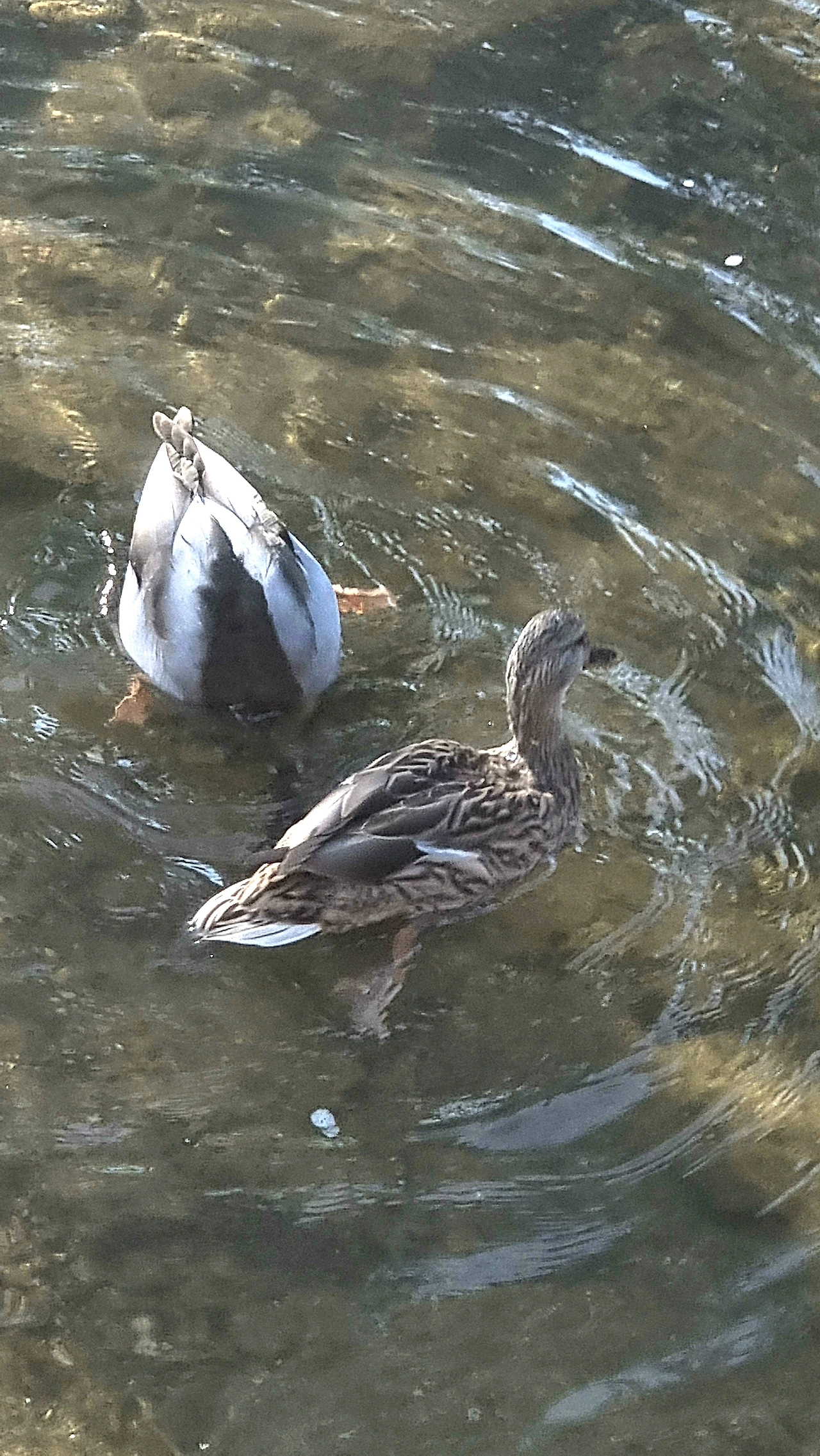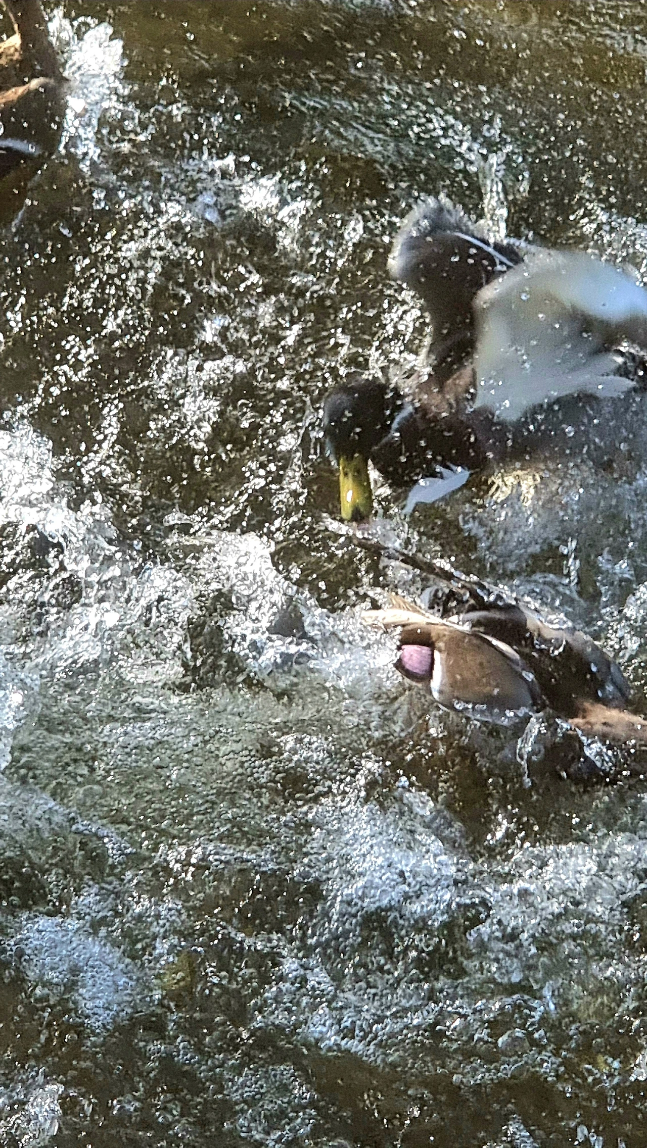 A fierce turf war broke out between two ducks, and after the chaotic skirmish, I found a lone feather gently floating on the water—silent evidence of the violent clash.