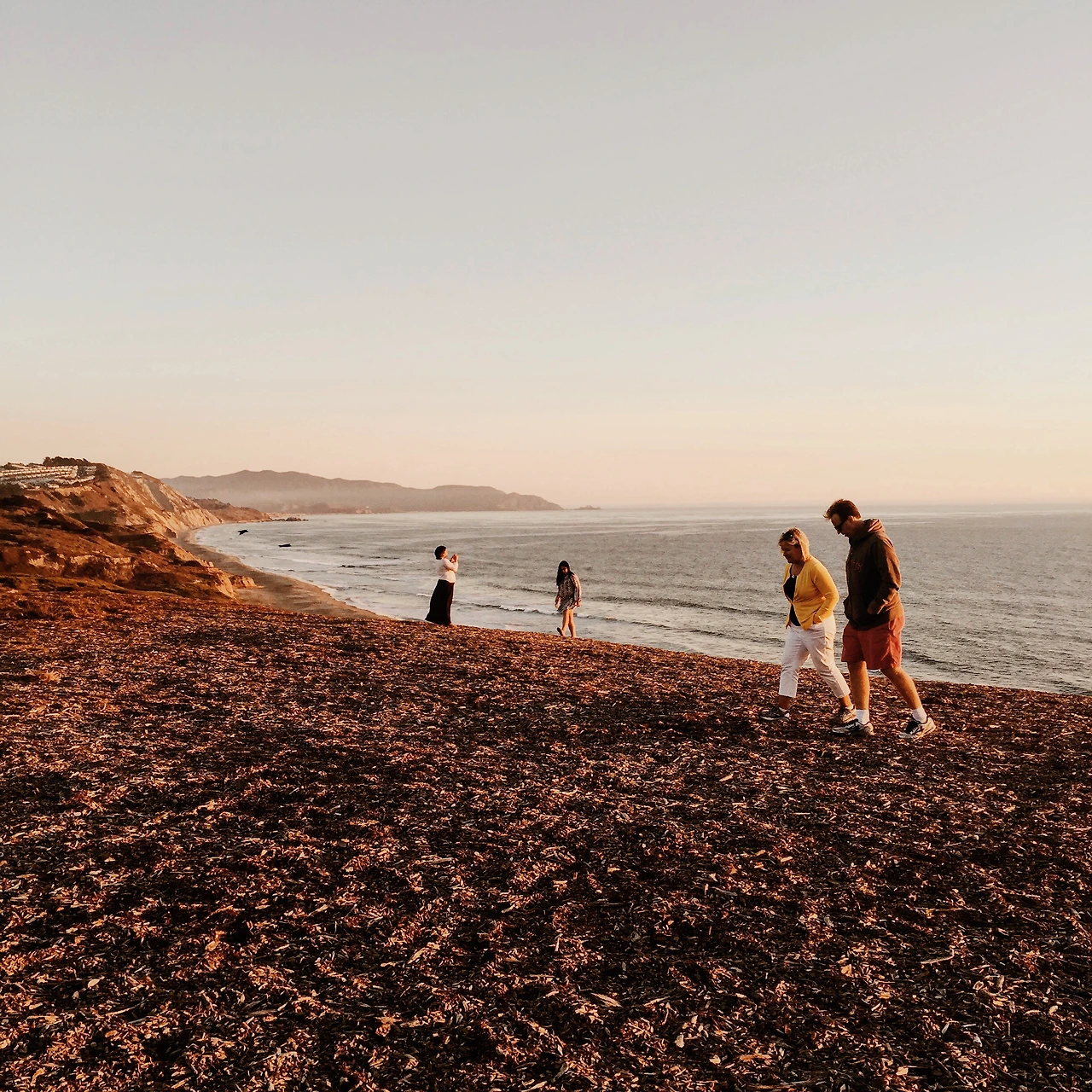 벌써 아름답다. 해가 지기까지 이제 한뼘 정도의 시간이 있다. 내린다. 어디부터 가야할지 모르겠다. 일단 지는 해와 가장 가까운 곳으로 가기로 한다. 반쯤 뛰는 어정쩡한 자세로 다가간다. 나무 향이 난다. 어디서 오는 것인지 분명하지 않지만 온천 히노끼 탕에 앉을 때 나는 냄새가 난다. 너무 좋다. 몇몇 이들이 해가 바다와 맞닿는 순간을 바라보고 있다. 말이 없다. 나도 그렇다. 무슨 대단한 묵상이라도 해야 할 것 같지만 사실은 아무 생각이 떠오르지 않는다. 그저 멍한 상태이다. 거대한 풍경과 마주선 상황에선 언제나 그랬다. 무언가를 떠올리려 해도 잘 되지가 않아 그냥 그대로 있기로 했다. 아까 듣던 빨간책방 오프닝이 생각난다. 이 생각이 없는 적막한 순간이 실은 자신의 내면을 바라보고 있는 시간이라고. 해석이 아름다우면 현실도 아름워다워지나 보다. 그저 믿기로 한다.