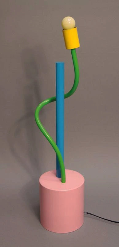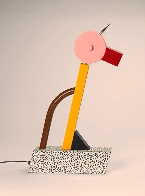 앞서 멤피스 그룹을 반동분자로 소개했지만, 사실 반동분자들의 업적이라 하기에는 그들의 작품이 지나치게 유쾌하고 상큼했다. 이들 작품 중에 포스터의 주인공이 될 만한 사물을 찾아 보았다. 어렵지 않게 한 마리의 새를 닮은 램프가 눈에 들어왔다. 이름도 섬 이름을 딴 '타히티 램프'. 멤피스 그룹을 이끌던 Sottsass 할아버지의 작품이었다. 색색이 물든 단순한 형태의 몸통은 장난기 어린 새의 자태를 드러내기에 충분했다. 몸통을 떠받치고 있는 지지대는 벌레가 제 멋대로 꿈틀대는 듯한 패턴을 입어 홀가분한 해방감을 더했다. 멤피스 그룹은 과연 유쾌한 반란가들이 맞는가 보다. 똑같은 모습을 하고 기능에 충실한 사물들이 대량으로 생산되던 때에, 이렇게 쓰잘데기 없어 보이는 아름다운 물건을 만들다니. 기필고 이 순진무구한 녀석을 포스터 주인공으로 캐스팅 하고 말리라.