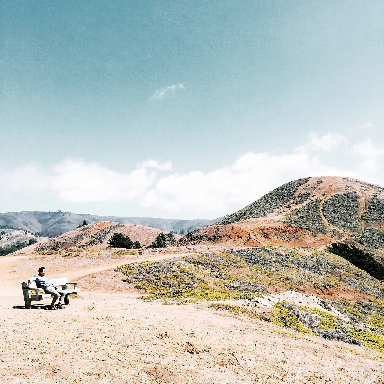 이런 비슷한 감정의 주기가 반복된다. 한 가지 일에 몰두하다 그것에서 빠져나왔을 때 조용한 외로움이 찾아온다. 연구실 밖으로 나온다. 햇살이 좋다. 차를 탄다. 남쪽으로 향한다. 고속도로를 달린다. 얼마 지나지 않아 도시의 분주함은 사라진다. 급격한 커브길을 돌아 익숙한 풍경이 보인다. 익숙하지만 새롭다. 또 반갑다. 태평양이 거기 있다. 수평선이 아득하다. 바다가 산처럼 높게 느껴진다. 바다 밑으로 들어가듯 도로가 이어진다. 바다 옆 사람 사는 동네가 보인다. 동네가 가까워진다. 바다를 바라보고 있는 동산과 그 동네 사이에 차를 멈추고 내린다.