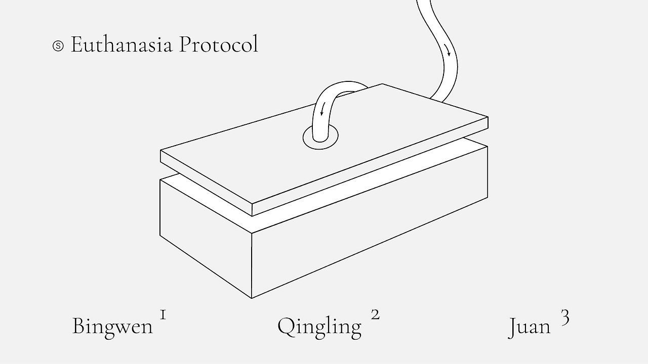 빙웬은 카트에 쌓인 케이지 하나를 집어 이제 더 이상 필요 없게 된 생쥐 식별 번호가 적힌 태그를 떼어 냈다. 사료가 올려져 있던 케이지 덮개를 들어 올리자 덮개의 철망 사이로 사료를 갉아먹고 있던 검은 생쥐 한 마리가 바둥거리다가 케이지 안으로 톡 떨어졌다. 하나, 둘, 셋, 넷, 다섯. 빙웬은 케이지 안에 있는 동물의 수를 세었다. 다섯 마리의 쥐들은 일제히 하던 동작을 멈췄다. 오줌을 지리는 쥐는 한 마리도 없었다. 빙웬은 아크릴 상자 안에 생쥐 다섯 마리가 든 케이지를 넣고 상자 뚜껑을 닫았다. 그가 이산화탄소 탱크의 밸브를 돌리자 다시 쉭 하는 소리가 났다. 생쥐들이 바빠졌다. 케이지 속 이곳저곳으로 뛰어다니고 코에 달린 수염을 움찔거리고 일어섰다 앉았다 하기를 반복했다. 안락사 프로토콜. 숨을 멈출 때까지 기다리라. 빙웬은 생쥐들의 마지막 움직임 하나하나를 눈에 담았다.