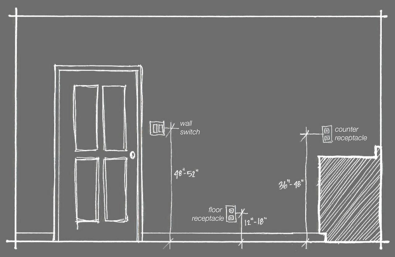 Drywall(석고보드)로 벽을 막기 전 벽체 내부에 전기선을 매설하고전기를 연결해서 사용할 수 있도록 콘센트를 설치하는 아웃렛 박스와 전등을 켜고 끄는 스위치 박스를 설치해야 한다. 아웃렛 박스는 바닥에서 12"~18"의 위치(보통 30cm 정도)에 설치하고 전등 스위치는 48"~52"에 위치(문 손잡이로부터 30cm 위)를 정해서 설치한다.