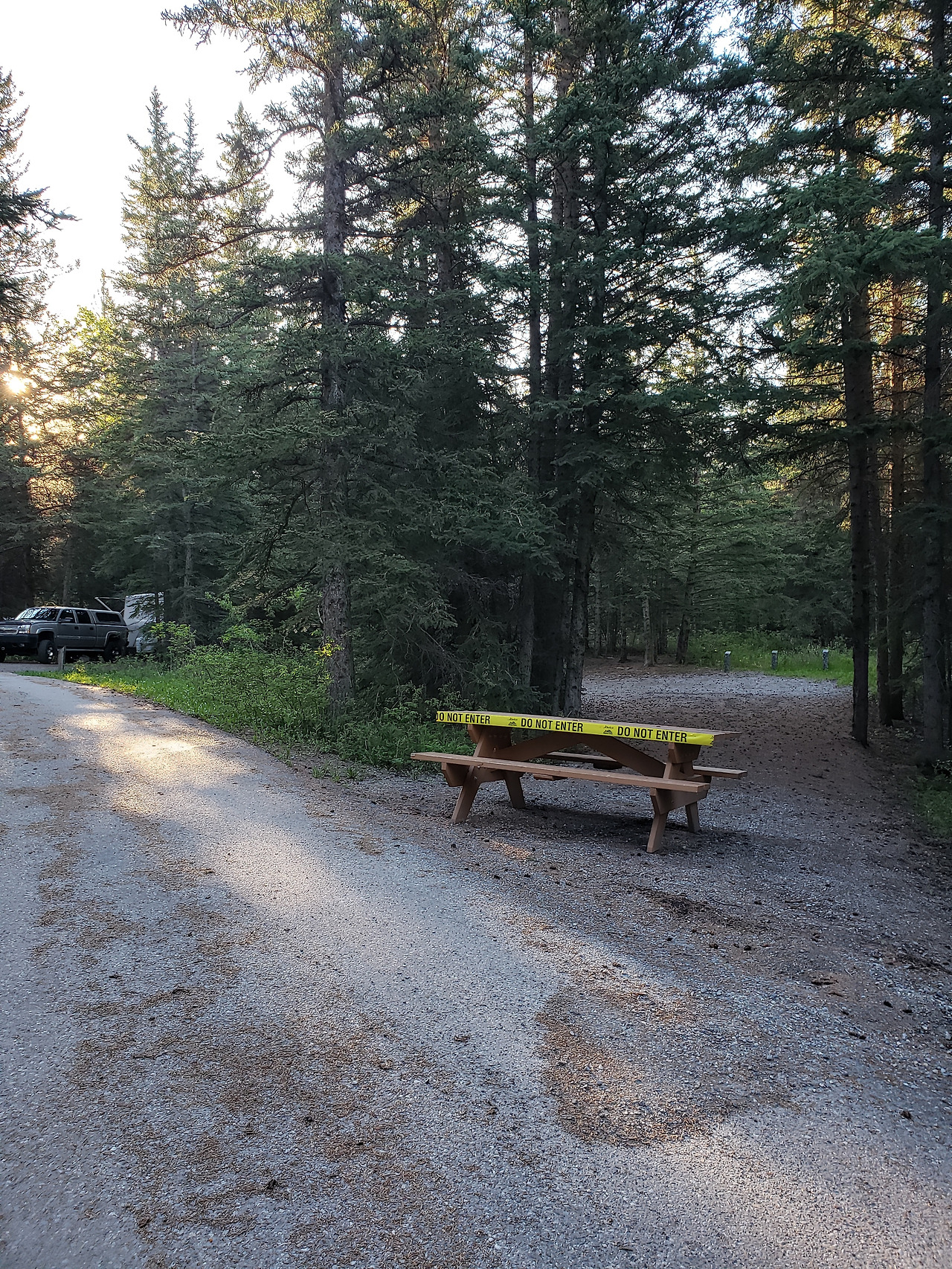 COVID-19 상황이라서 늘 이용하던 National Park 캠핑장은 6월 말까지 폐쇄된 상태로 열지 않았기 때문에 처음으로 Provincial Park 캠핑장을 예약했다. 앨버타주에서 운영하는 캠프 사이트는 처음 가는 곳이기도하고 일부 시설을 사용하지 못한다고 해서 다소 걱정이 되기는 했지만 다행히 큰 문제는 없었다. 입구에 세워놓은 사이트 위치를 알려주는 표지판이 화살표를 이상하게 표시한 것 때문에 잠깐 헤맨 것 말고는 괜찮았다.