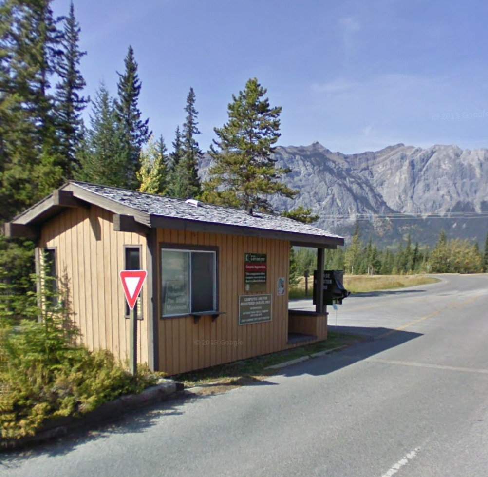 Bow valley campsite 입구 Registry office (COVID-19로 인터넷 예약후 프린트해서 Self로 등록 )/ 보우강이 바로 옆으로 흐르는 캠프사이트