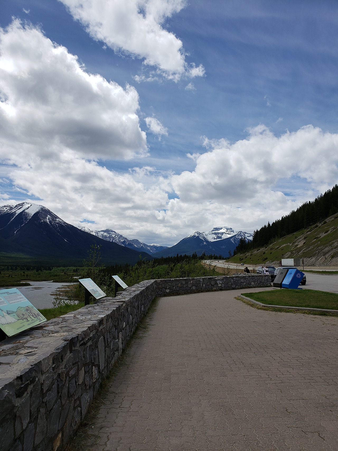 다시 Trans Canada Highway로 나와서 Banff로 돌아가는 길에 처음부터 들러보려고 했던 Johnston Canyon 방향으로 틀어서 Lake Louise 입구에서부터 길게 이어진 Bow Valley Parkway로 들어갔다. 하지만 이곳도 도로공사를 하는 중이라고 길을 막아 놓은 상태다. Johnston Canyon을 가운데 놓고 양쪽으로 도로공사가 진행 중이라서 남쪽 길에서 진입하는 것도 불가능하다고 한다. COVID-19라고 해도 가는 곳마다 길을 막아 놓은걸 보니 한숨만 나온다. 관광객을 통제할 수 있는 시기라서인지 공사하는 곳이 의외로 많다. 다시 오던 길을 돌아 Trans Canada Highway로 나가서 남쪽으로 내려가다가 Banff 입구에 직전에 위치한 Vermilion Lakes 전망대에 잠시 차를 세웠다.