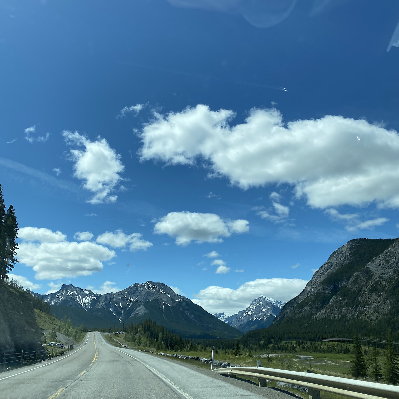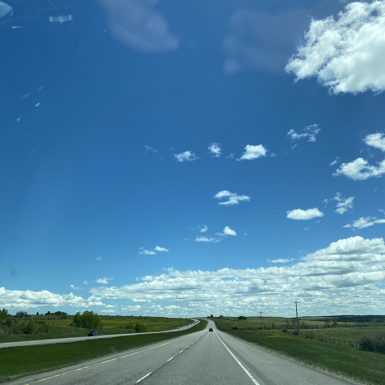 캘거리를 향해 다시 출발해서 나오는데 오늘이 삼 일간의 여행 중에 날씨가 제일 좋다. 파란 하늘이 군데군데 구름을 머금고 있는 모습이 한 폭의 그림 같다.