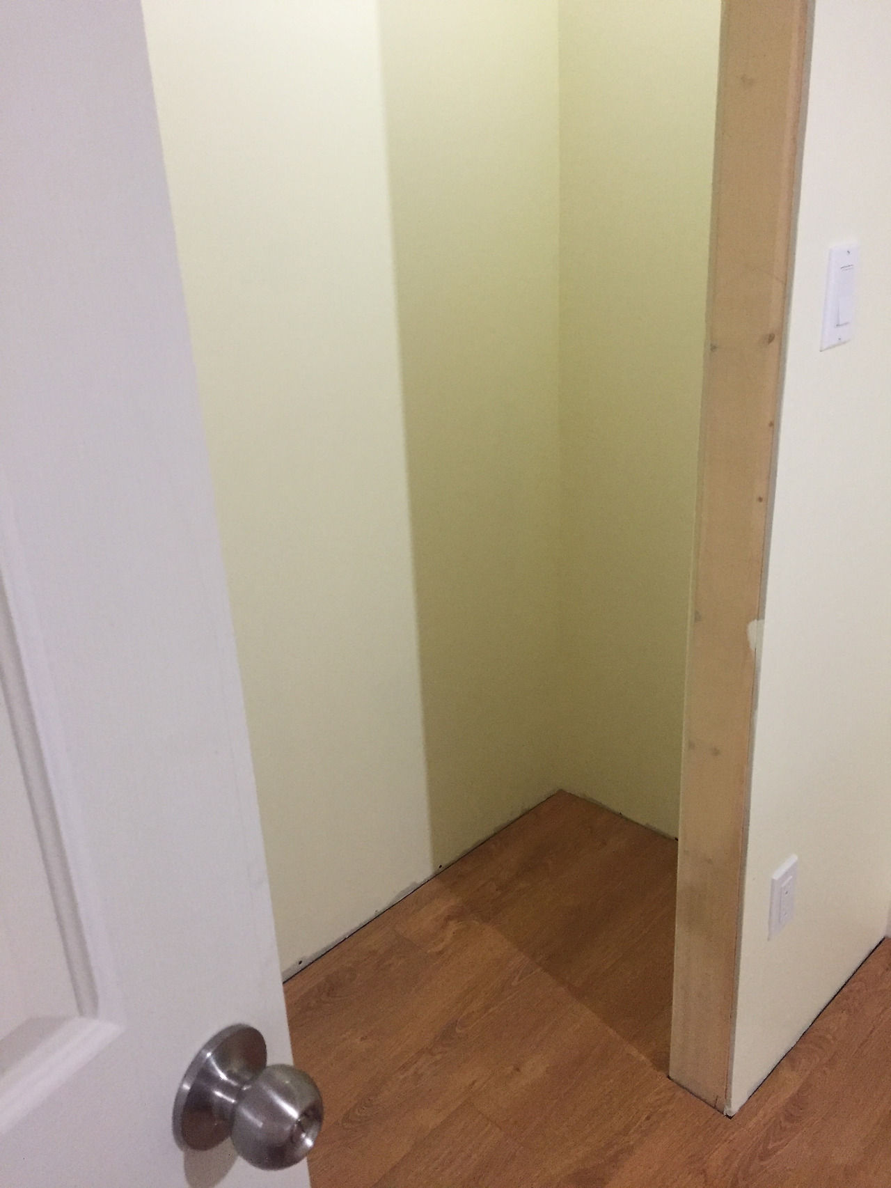 다음은 방문과 벽장문을 설치하고 사이드 몰딩을 붙여준다. 방문은 규격이 여러 가지가 있는데 높이와 폭이 보통의 방에 사용하는 것을 구입해서 32"x 80"로 작업을 했고, 화장실용으로는 폭이 약간 좁은 30"x80", 옷장용은 접이식 문으로 35" x80"를 사용했다.