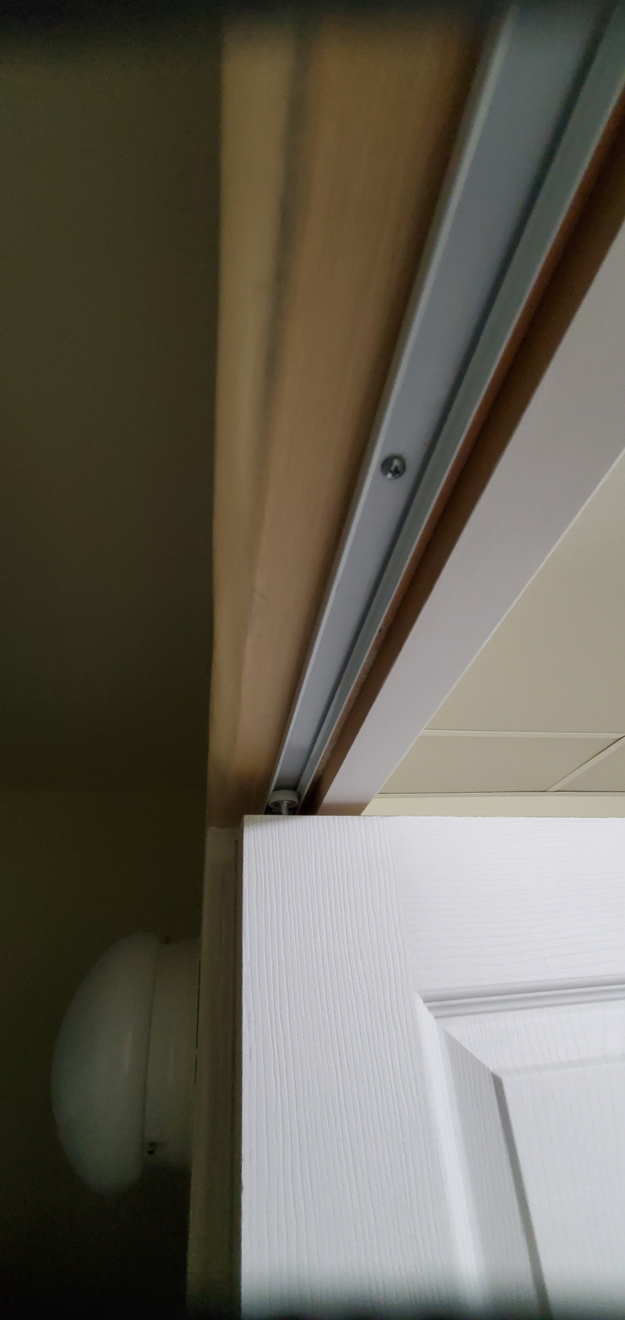 내벽 윗부분에 레일 부착후 문을 걸어서 사용하는 벽장문