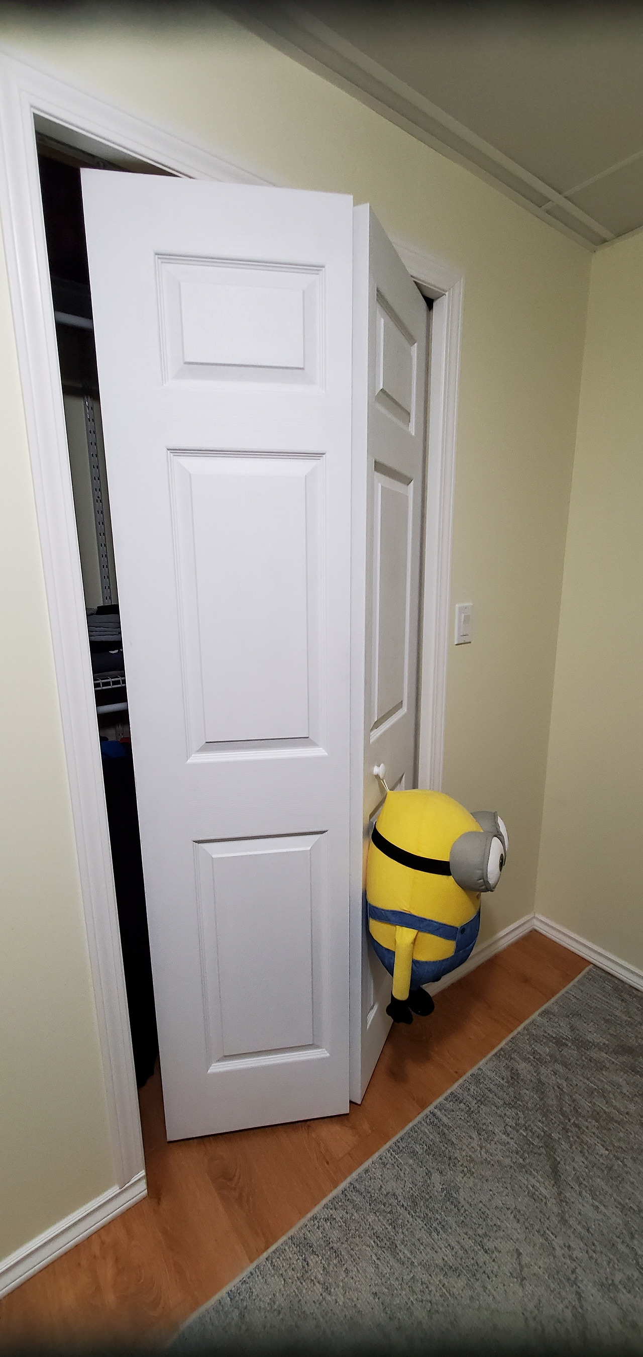 벽장(Closets) 문은 보통 접이식 문을 부착하는데 문 바깥쪽으로 손잡이를 당기면 반이 접히면서 열리는 형태인 것을 부착하는 것이 대다수이다. 벽장문은 문 양옆과 윗부분에 기둥 틀이 붙어 있는 방문과는 다르게 단순히 접이식 문 두 짝만 판매를 한다. 기둥틀이 없이 벽 내부의 윗부분 가로 기둥에 레일을 부착하고 고리를 걸어서 열고 닫는 문으로 사용하도록 제작되어 있기 때문에접이식 문을 설치한 다음에는 옆 기둥과 위쪽의 레일을 가려주기 위한 기둥 몰딩을 붙여주고 방문과 같은 형태의 가장자리 몰딩을 붙여서 마무리한다.