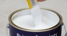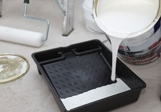 페인트를 잘 섞고 플레이트에 담아서 롤러나 붓을 사용한다.