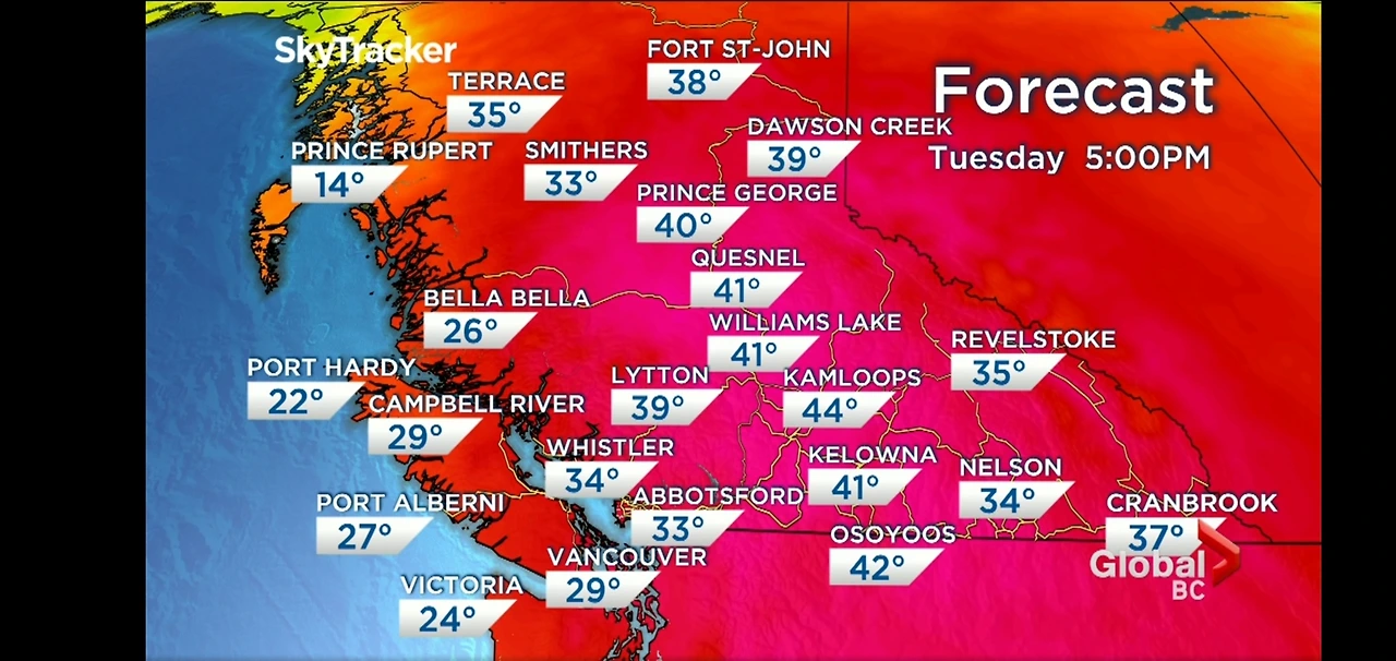 하지만 지난주에 일기예보는 6월 30일에 이곳 에드먼튼의 온도가 40도로 나와 있었고 실제 그 온도에 기록이 세워졌다. BC주의 Lytton이라는 도시는 캐나다 역사상 가장 높은 여름 날씨 기록을3일 동안 연속으로 갈아치웠다. 무려 28일에 46.6도에서29일에 48도 30일에 49.6도! 믿기지 않는 숫자가 보였다. 밴쿠버 경찰은 관할 지역에서 이번 폭염으로 100여 명의 사망자가 추가 발생했다고 전했다.
